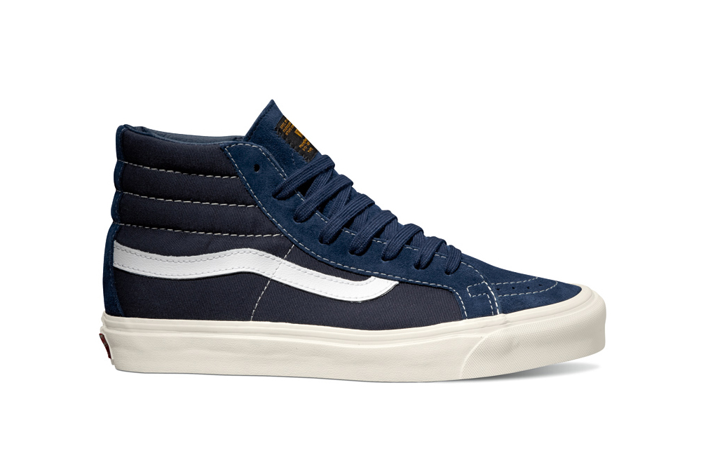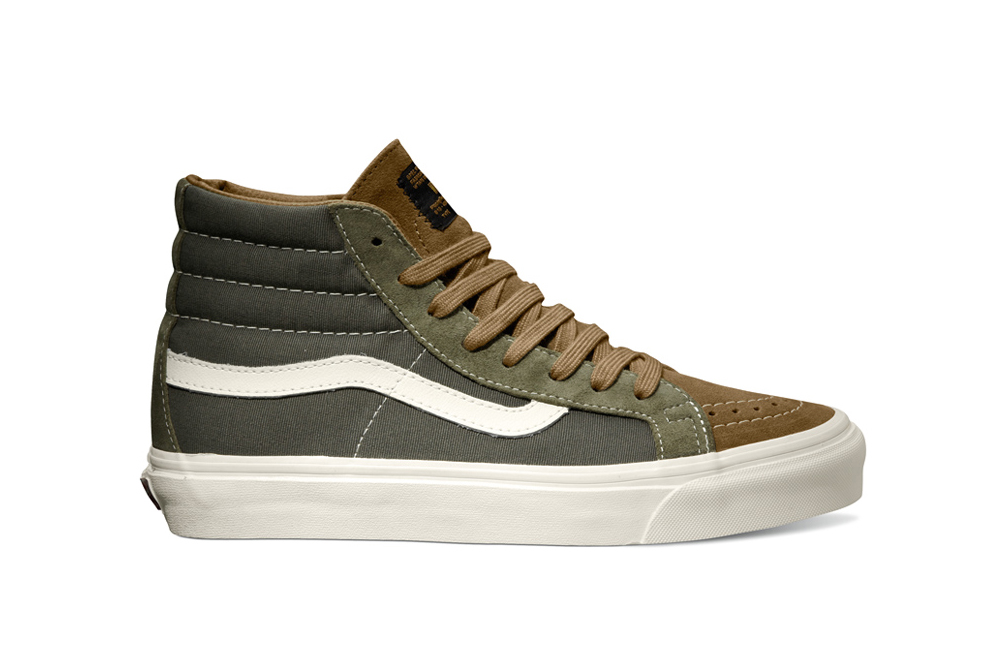Vans Vault has teamed up with Japanese label W)Taps (pronounced DOUBLE-TAPS!) to create this awesome American Military-inspired collection. Each model has been covered in a nice suede and/or canvas material, in colors that invoke American patriotism. Lots of reds, whites, blues, as well as blacks, tans, and olive greens. They chose to go with the OG Sk8-Hi, Slip-On, and Chukka, in their original shapes from the early days of Vans, and that’s why you see the “Vans ORIGINALS” heel tab. These should be hitting your local Vault dealer soon, after the 10 Year Anniversary festivities come to an end this week. Be on the look out, and join our forum to keep up to speed. Good luck on getting yours!