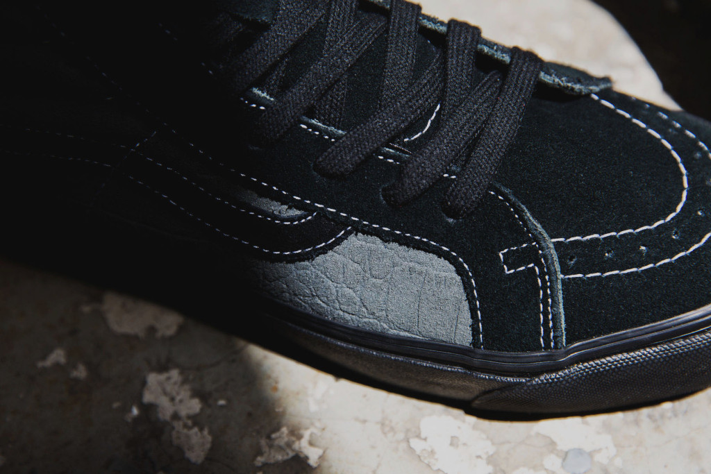 The 3rd and final shoe to join this year’s Vans Vault x WTAPS pack is the OG Sk8-Hi LX. This time, they will feature a suede upper with a nubuck croc-skin material on the side panels. Available in a black/grey colorway, as well as an all black version. Will these be more successful than last year’s model? Will it depend on which celebrity helps boost it’s popularity? We’ll just have to wait and see.