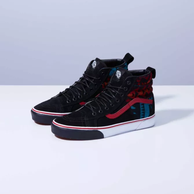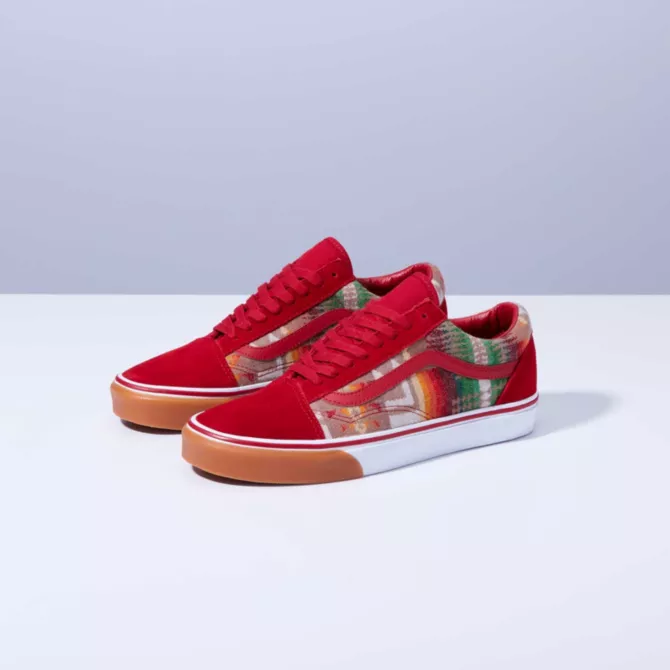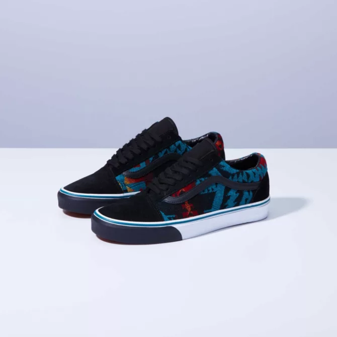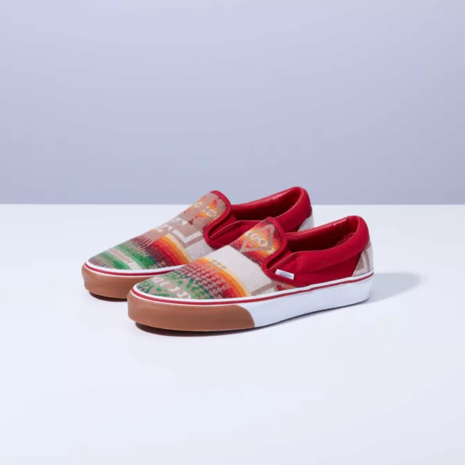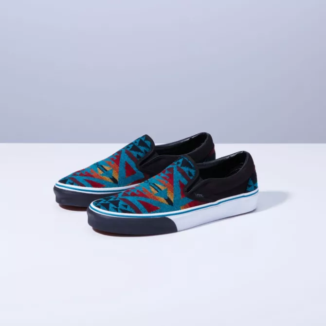This collection includes 5 Vans Classics, customized with Pendleton Fabrics patterns: Two Old Skools, two Slip-Ons, and one Sk8-Hi.