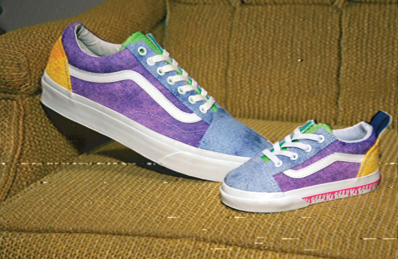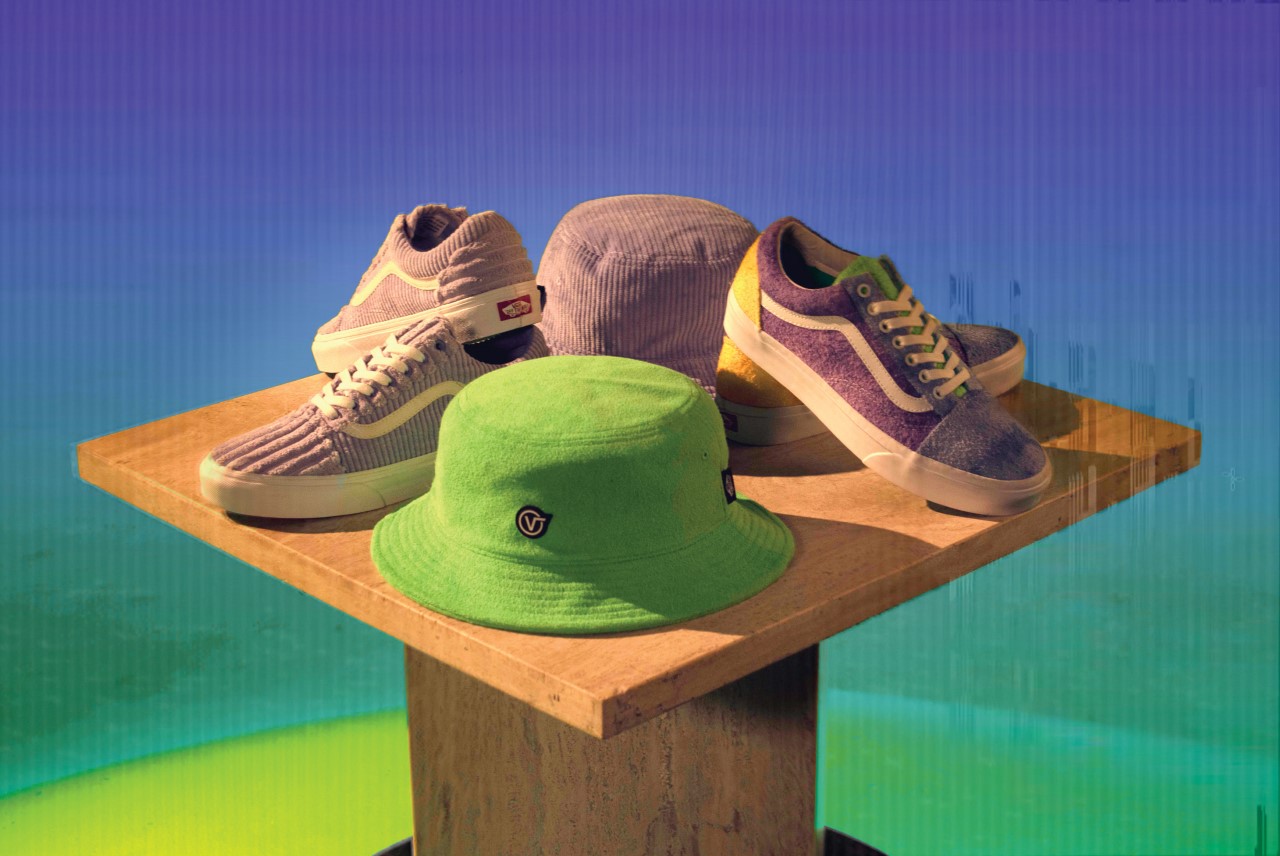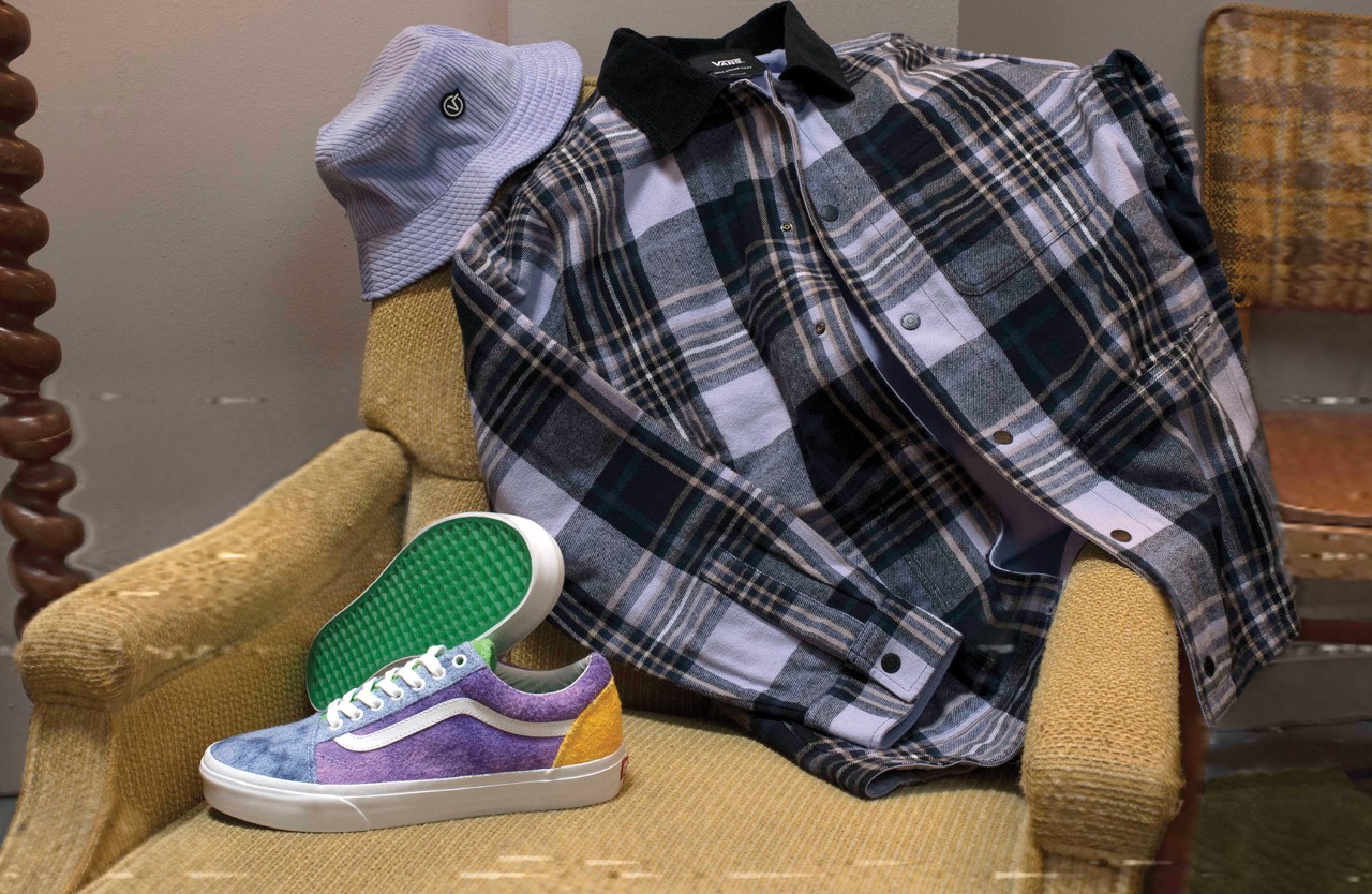 Using Vans’ original skate school as his canvas, AP has reimagined the Old Skool in two fun and funky colorways inspired by his sons, Soul and Shine. Using corduroy uppers, the Old Skool Soulito is decorated with cozy purple uppers. A second Old Skool Ziti uses the multi-panel construction to showcase color block treated uppers outfitted in a tactile fuzzy suede in blue, purple and green. An homage to family, the footwear assortment includes kids and toddler sizing. Each footwear model is finished with a green waffle sole, as it is the color of creativity. As a complement to the footwear, AP designed a men’s reversible Chore Jacket that provides two looks in one, a purple plaid or a solid purple canvas option, outfitted with black corduroy collar and a purple corduroy backpack. For finishing touches, the Vans x AP Bucket Hat is available in two complimenting colorways, including purple plaid and a kelly green terrycloth colorway.