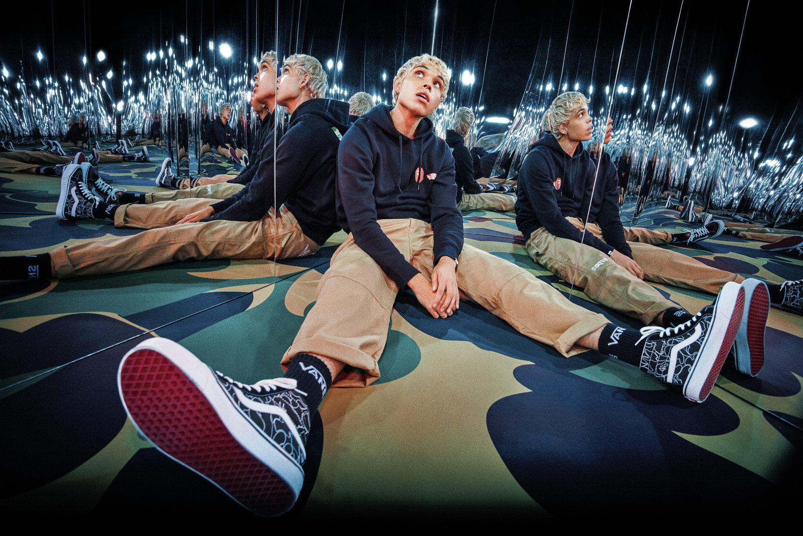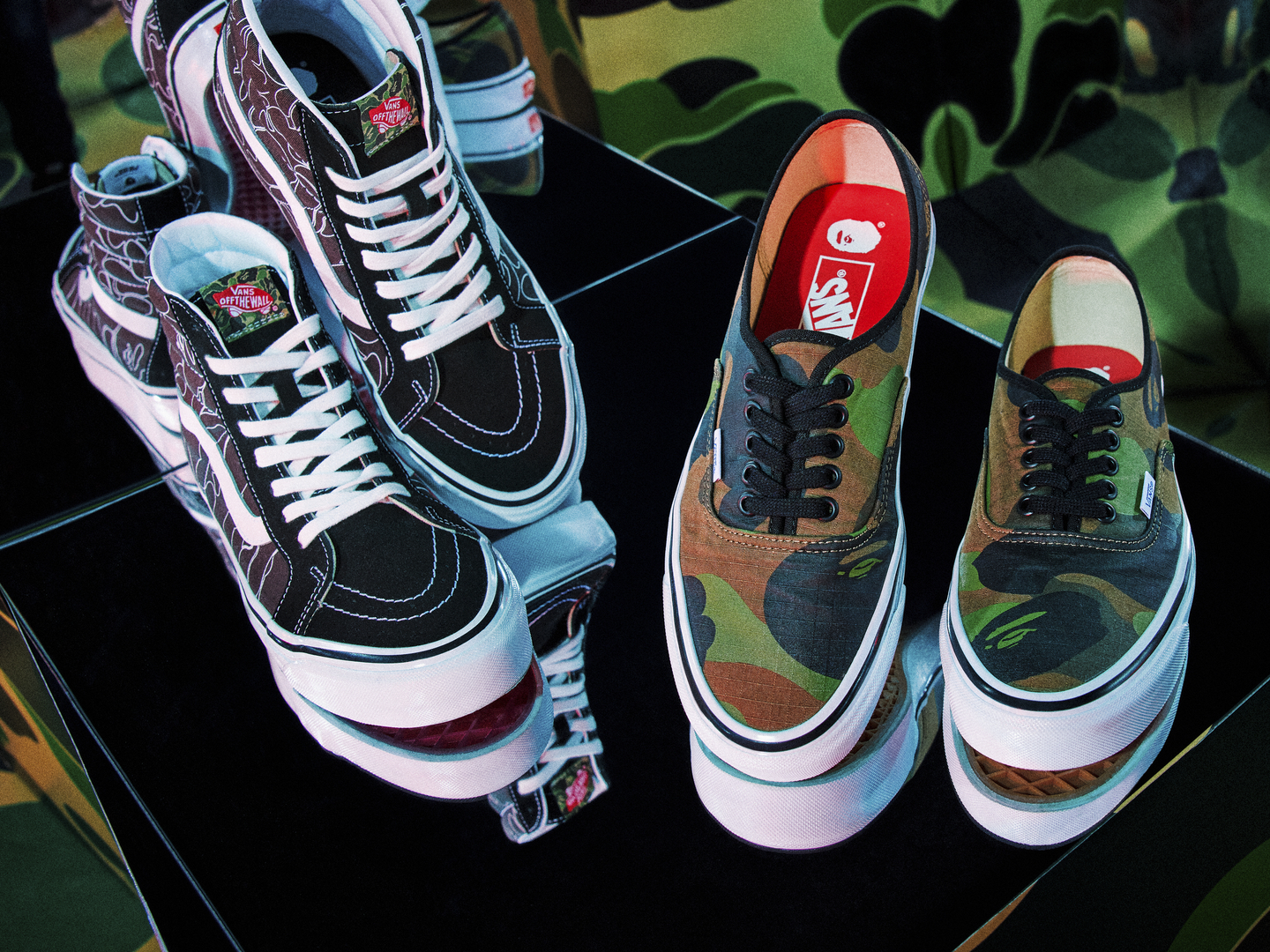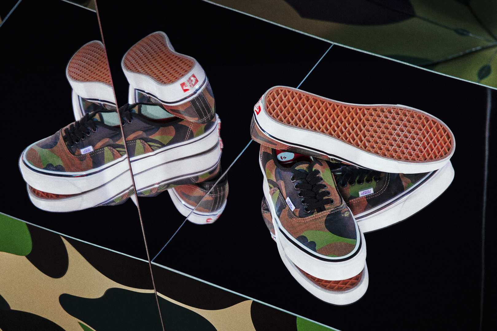 Vans, the original action sports footwear and apparel brand is proud to partner with BAPE®, the iconic Japanese streetwear pioneers for their first ever head-to-toe collection.