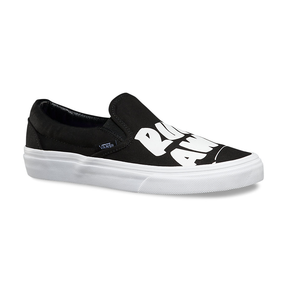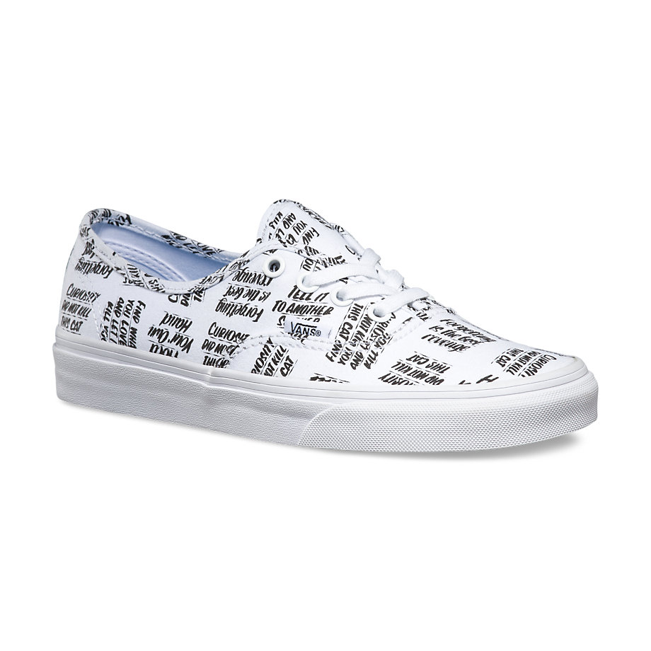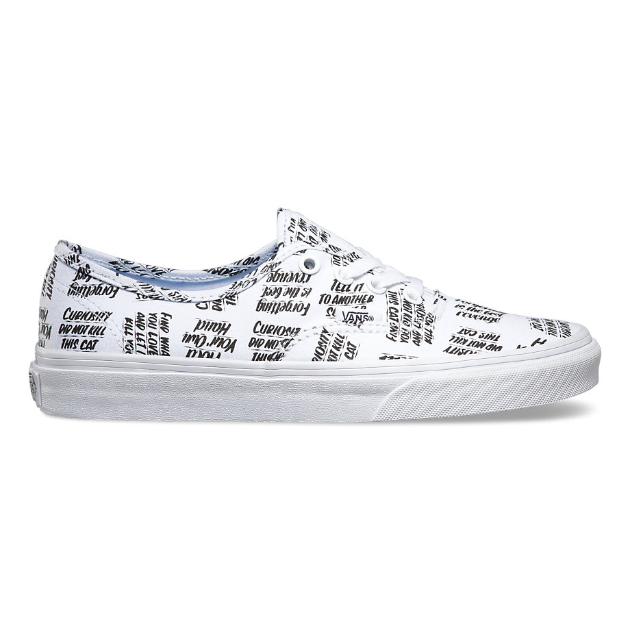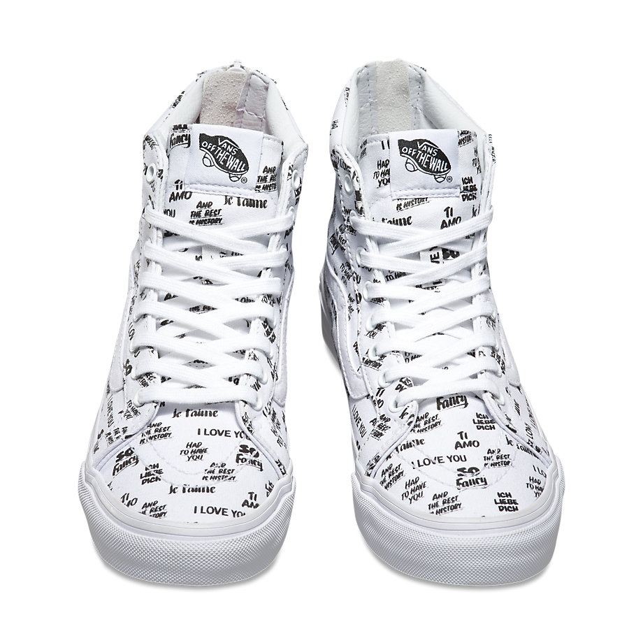 Vans NYC multi-media artist Baron Von Fancy is known for diverse artistic work that extends from large comic strip-genre paintings to playful and poetic simple statements. Bringing to mind the nostalgia of mid-century ad signage, the Baron Von Fancy collection features bold, hand-lettered phrases in a black and white capsule collection. The offering includes 3 classics, a Sk8-Hi Slim Zip, Authentic, and a Slip-On, each available in unisex sizing (up to a Men’s 10). Look for them at your local Vans store.