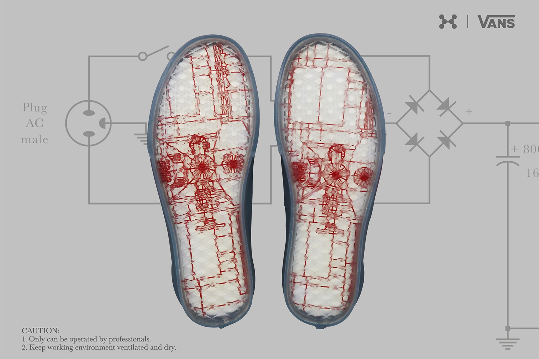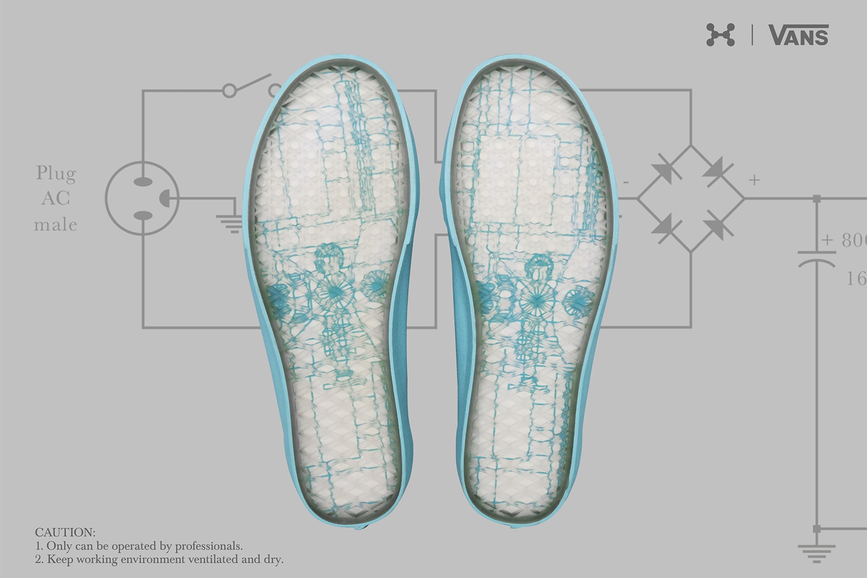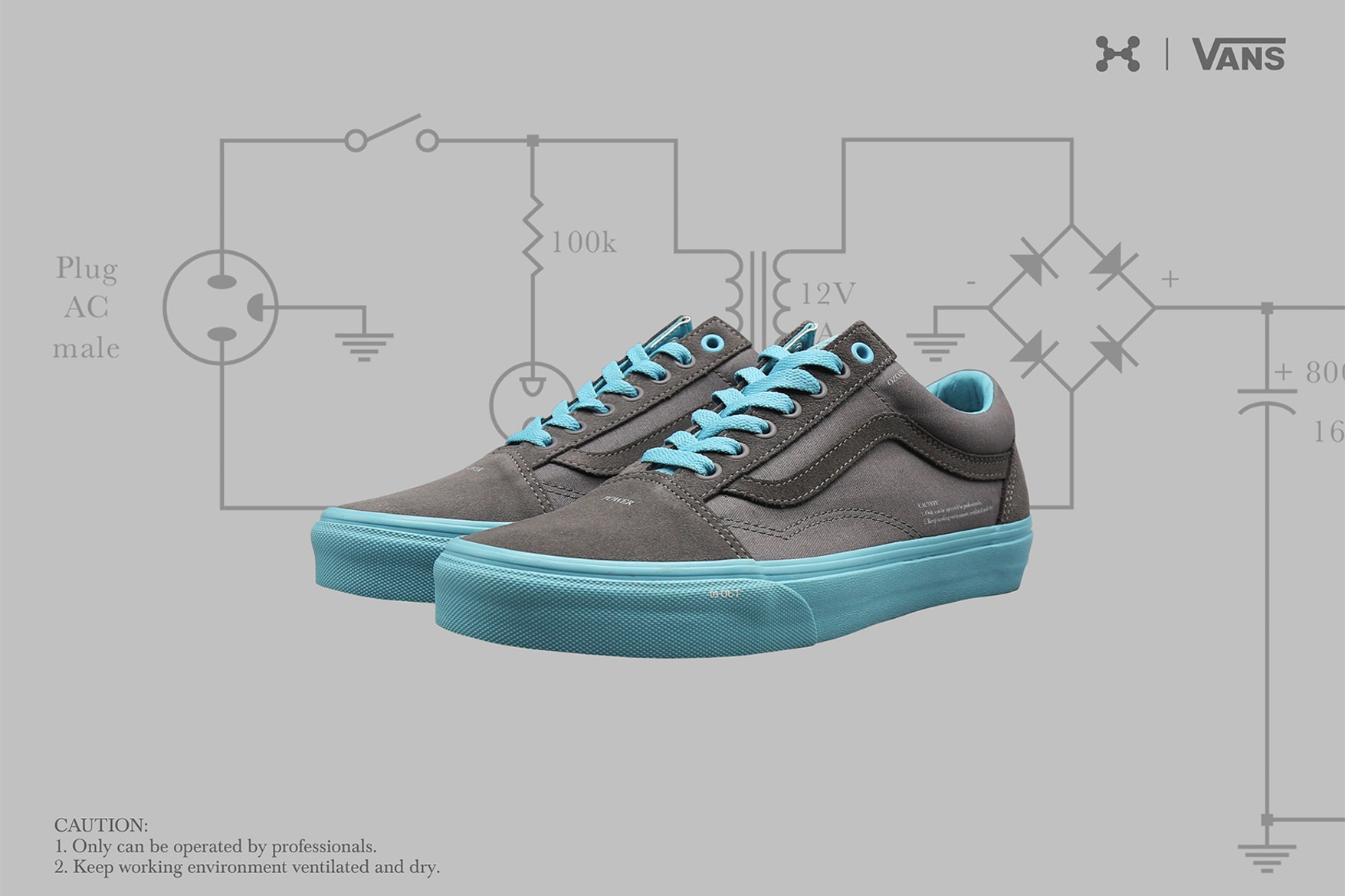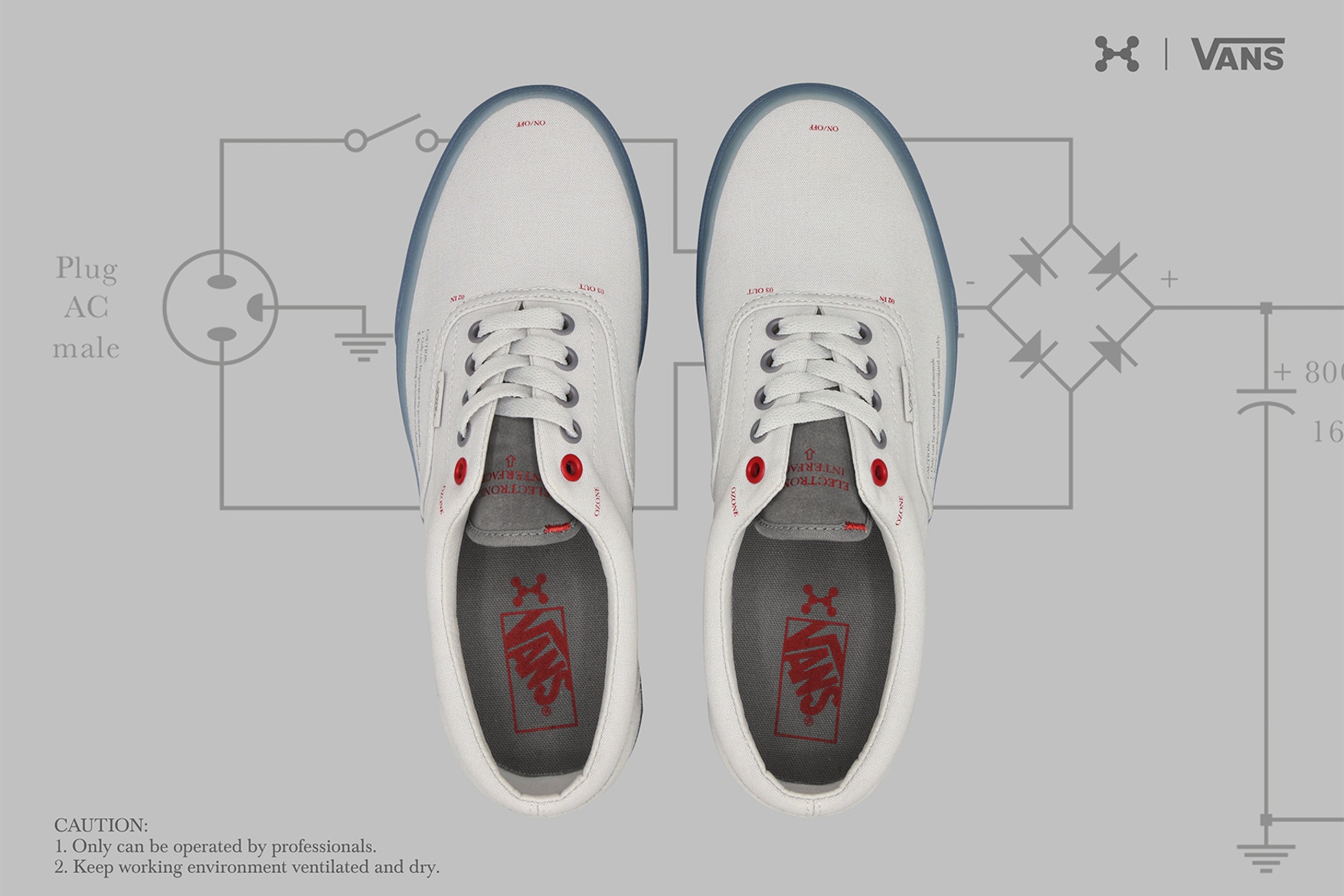 “Supplementing its Spring/Summer 2018 “Zero Gravity” release, C2H4 has put its own unique spin on a couple of Vans silhouettes. Featuring both the Old Skool and Era, the drop takes cues from ozone generator machines and even sees each pair packed in a box that resembles the aforementioned generator’s housing. While the Old Skool comes in tonal blue, the Era dons a white upper and transparent sole unit; both sport red and blue holes as a nod to the input-output principle of the machines.”