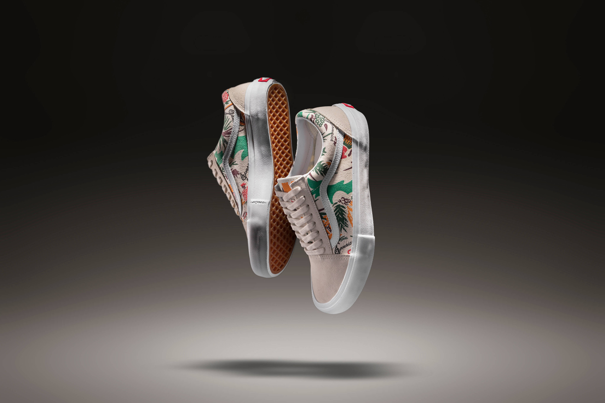 “Concepts joins Vans for an exclusive trio of collaborative Old Skool colorways. Concepts’ take on the classic skate shoe is inspired by a Vintage Jamaican print, featured prominently in the canvas paneling. The pack, which consists of a Green, Off-White, and a special friends and family Orange offering, each have premium suede and a padded tongue, along with the signature Vans waffle outsole. Retail $85, the Concepts x Vans “Jamaica” will be sold in-store Thursday, 4.20.17, followed by an online release at 12pm eastern on Friday, 4.21.17 on cncpts.com