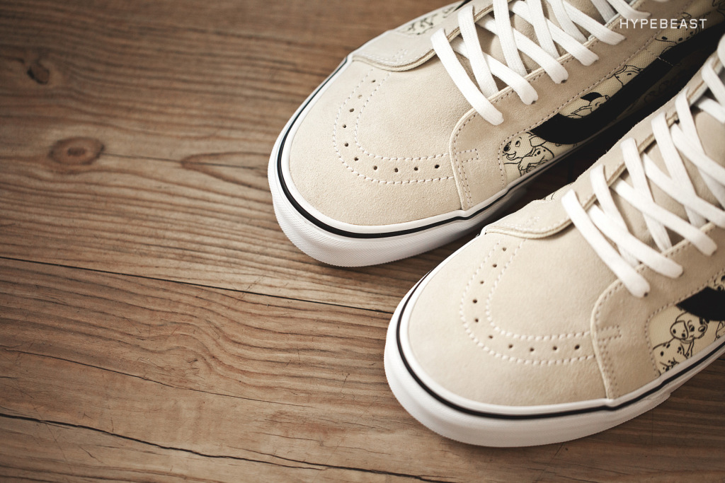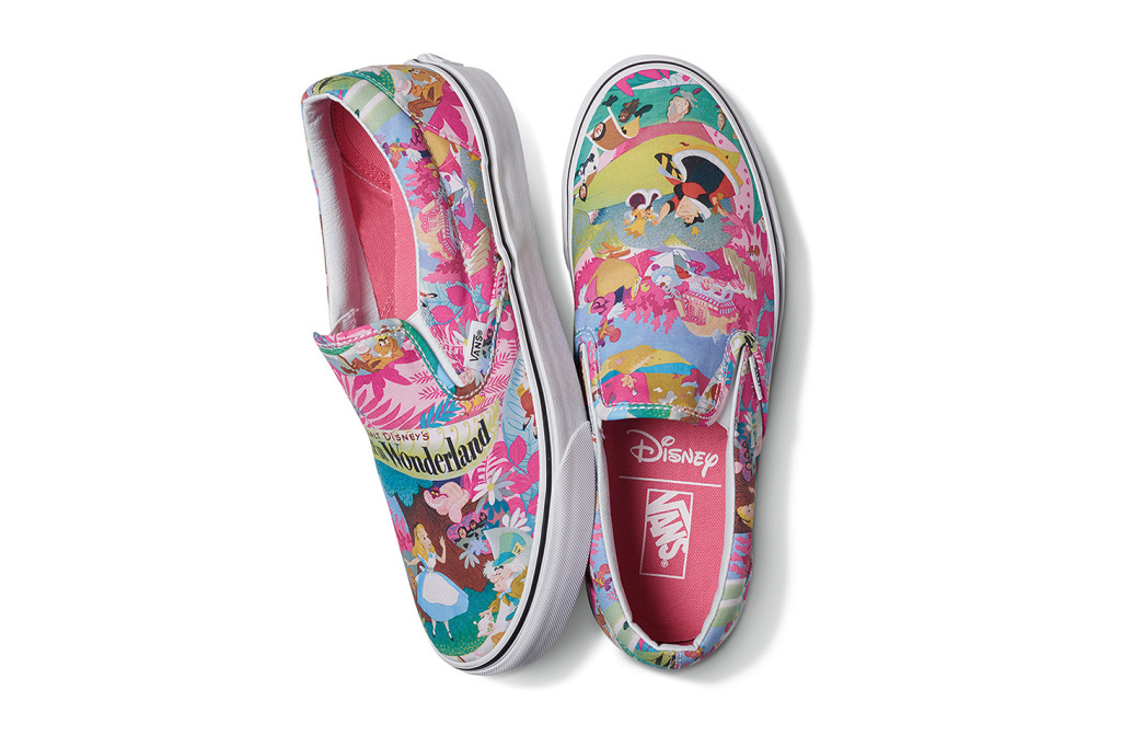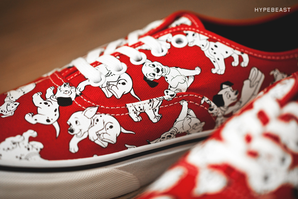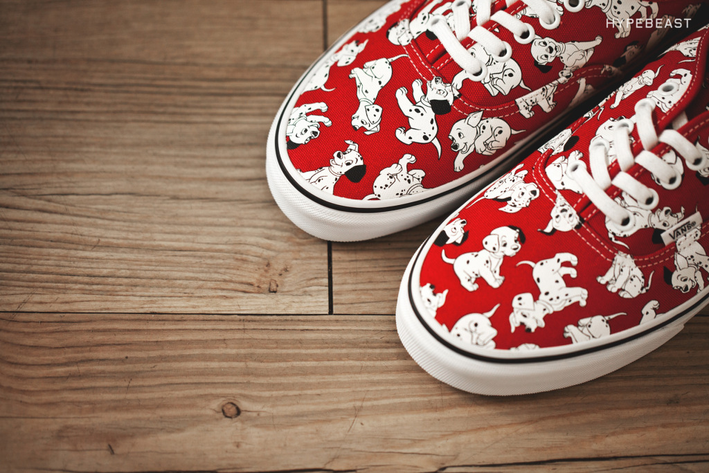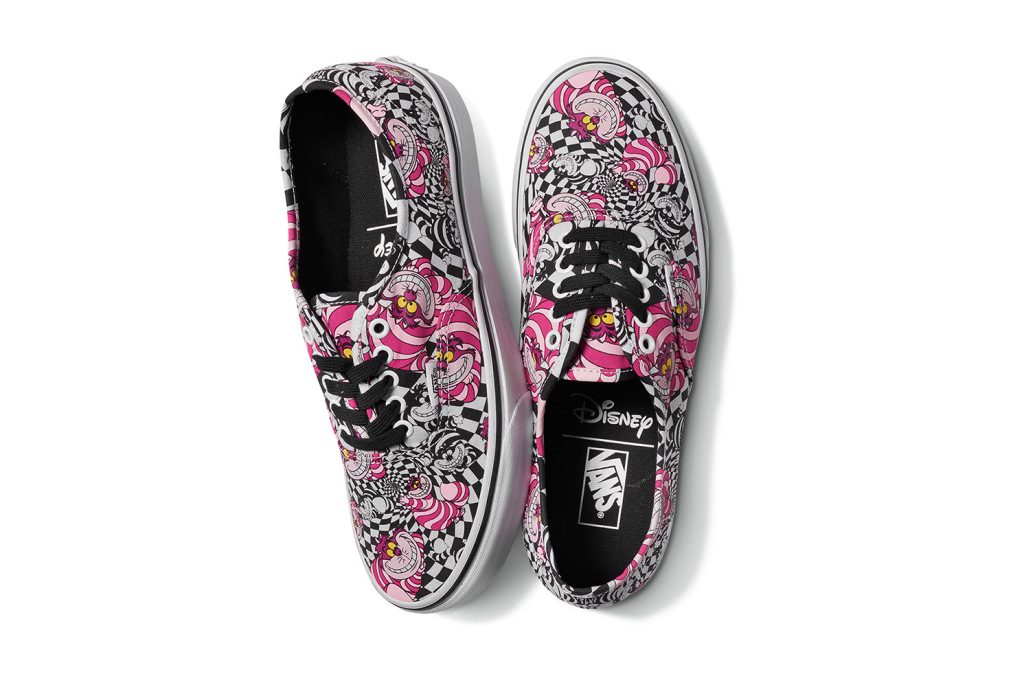 Vans continues it’s wildly successful collaboration with Disney, “Young At Heart”. There’s some new characters and movies being introduced this time around, one of the designs being a retro of an original Made In USA version of the 101 Dalmatians Red Authentic. Alice In Wonderland is another one of the moives being featured here, and there are a few different silhouettes and patterns, but the most eye-catching one is the Cheshire Cat Era. Be careful not to stare into the shoe for too long, or you may just start having a seizure! I kid. How about I just let the pics do the talking, thanks to Hypebeast?