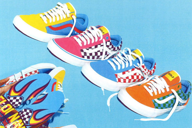 This time around, the collaboration has been branded Golf Wang x Vans, which is the clothing brand that Tyler started in 2011. It’s as colorful as ever, and three of the four styles feature Vans’ trademark checkerboard print throughout the side panels. From the looks of things, each colorway in the set was designed to coordinate with specific Golf Wang pieces.