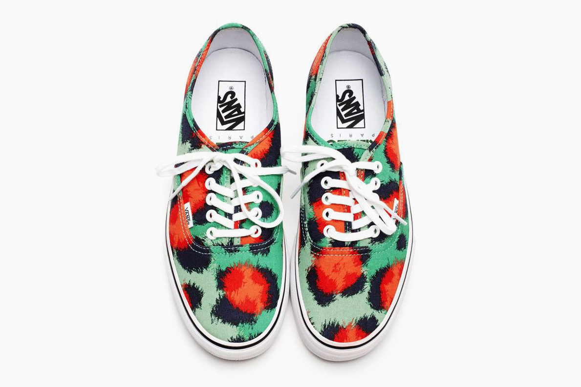 “This month we welcome the latest chapter in the fruitful collaboration between Vans and KENZO. Marking season number four for the project, the new series features the Authentic and Slip-On sneakers in a vibrant yet clouded leopard print. The ocre, orange, blue, green and khaki hues were inspired by the colors of the Asian Jungle and most importantly the tiger.
