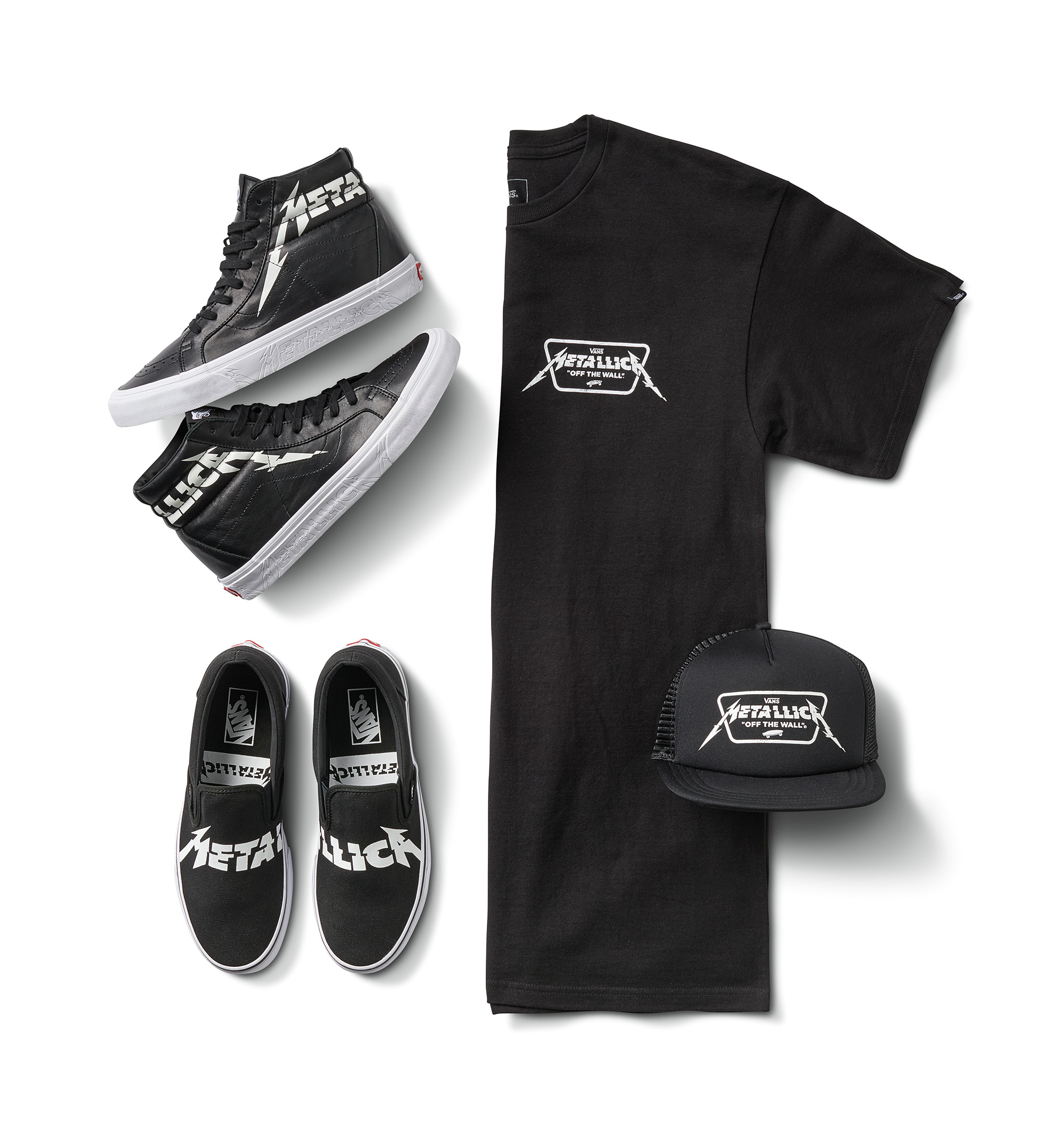 “Vans, the leading youth culture brand and icon of creative expression, joins forces with Rock and Roll Hall of Fame inductees and multiple-Grammy® Award winning band Metallica, to release an exclusive collection of footwear, apparel and accessories. The latest installment from the long-time Vans x Metallica partnership marks the third collaboration between the storied brand and band.