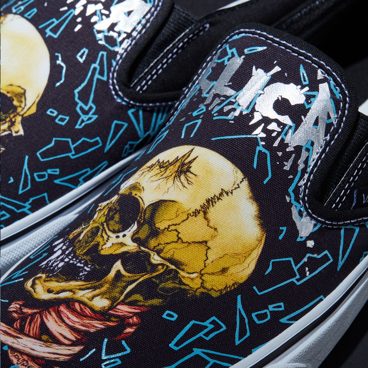 Vans x Metallica Sk8-Hi and Classic Slip-On will be Available Exclusively for Vans Family Members on July 25th at 9pm PST and Metallica.com on July 26th at 9am PST