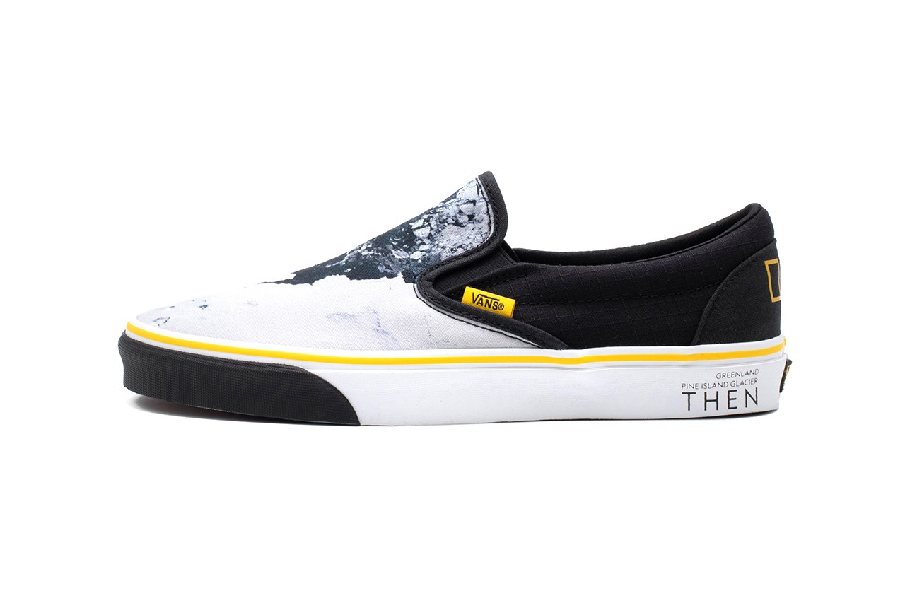National Geographic, which is known for its exploration and documentation of fields including adventure, science, photography, environment, history and space, has covered each Vans sneaker with its own unique work. For example, the Slip-On depicts Greenland’s Pine Island Glacier, while the Era is covered in an artistic representation of the ocean and sports a sole unit graced with coordinates.