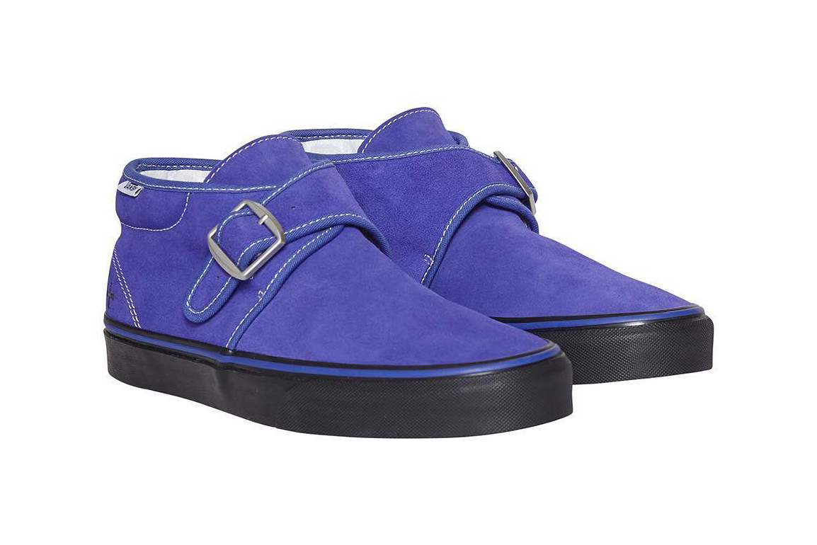 The Sk8-Hi are offered in a duo of makeups, including all-over skull print, complete with black midsole, and blue/white checkerboard. The latter style comes with white laces for subtle styling or yellow alternatives to brighten up the sneakers, while the former boasts a pair of black or red laces. Meanwhile, the laceless Style 47 chukkas are delivered in purple or black suede, with metal buckles at the vamp serving to secure the wearer’s foot. NOAH embroidery at the rear completes the remastered footwear.”