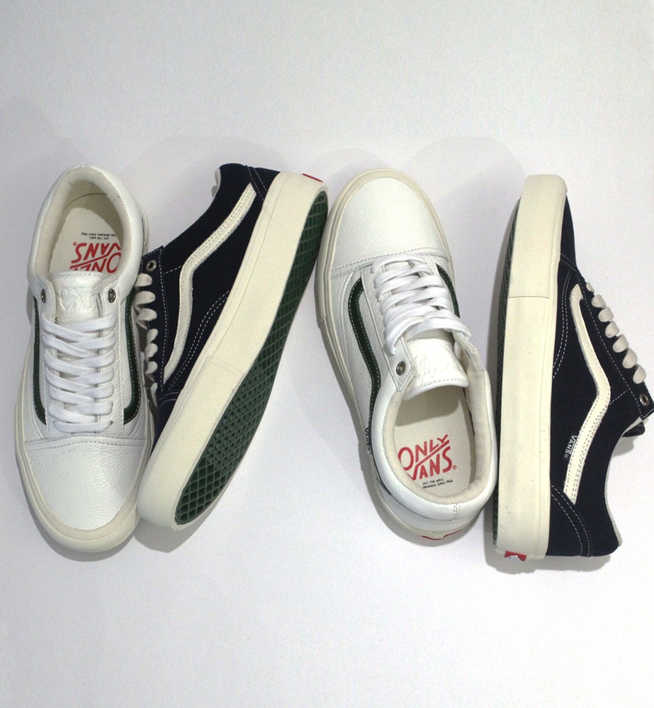 We finally get a good look at the Vans x Only NY collection thanks to our homies over at Silo, and a link to purchase as well! Independent brand from Manhattan’s West Side, Only NY, has teamed up with Vans to create this awesome collection featuring two Old Skool Pro’s, and a whole apparel line featuring socks, hats, jackets, and tees. Each Old Skool has a unique style, with the first one being constructed in white tumbled leather, with a forest green jazz stripe, while sitting on a cream vulc sole. The second Old Skool Pro is constructed in dress blue suede, with cream jazz stripe and vulc sole. Each shoe features debossed tongue logos, custom printed footbeds, forest green waffle soles, and all the standard upgrade features we love on our Pro models. Both pairs, as well as a few apparel pieces are now available on Silo’s webstore. Not many shops are getting these, so don’t sleep one bit!