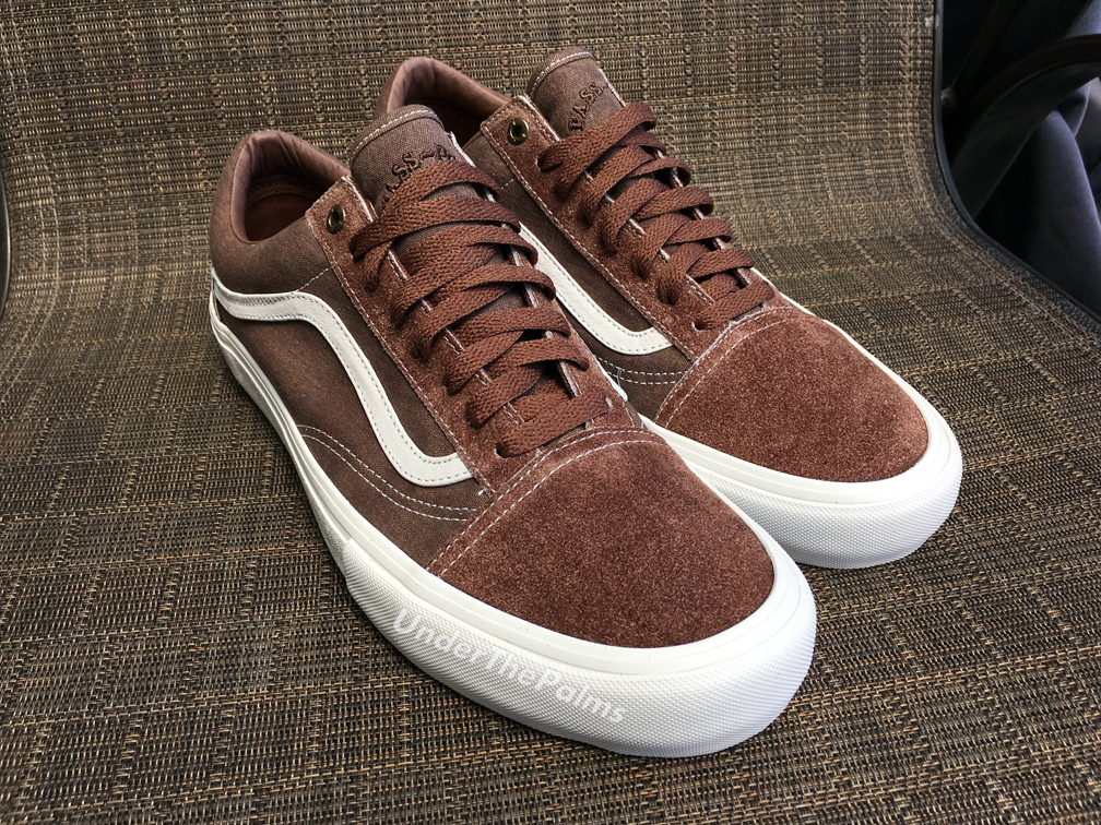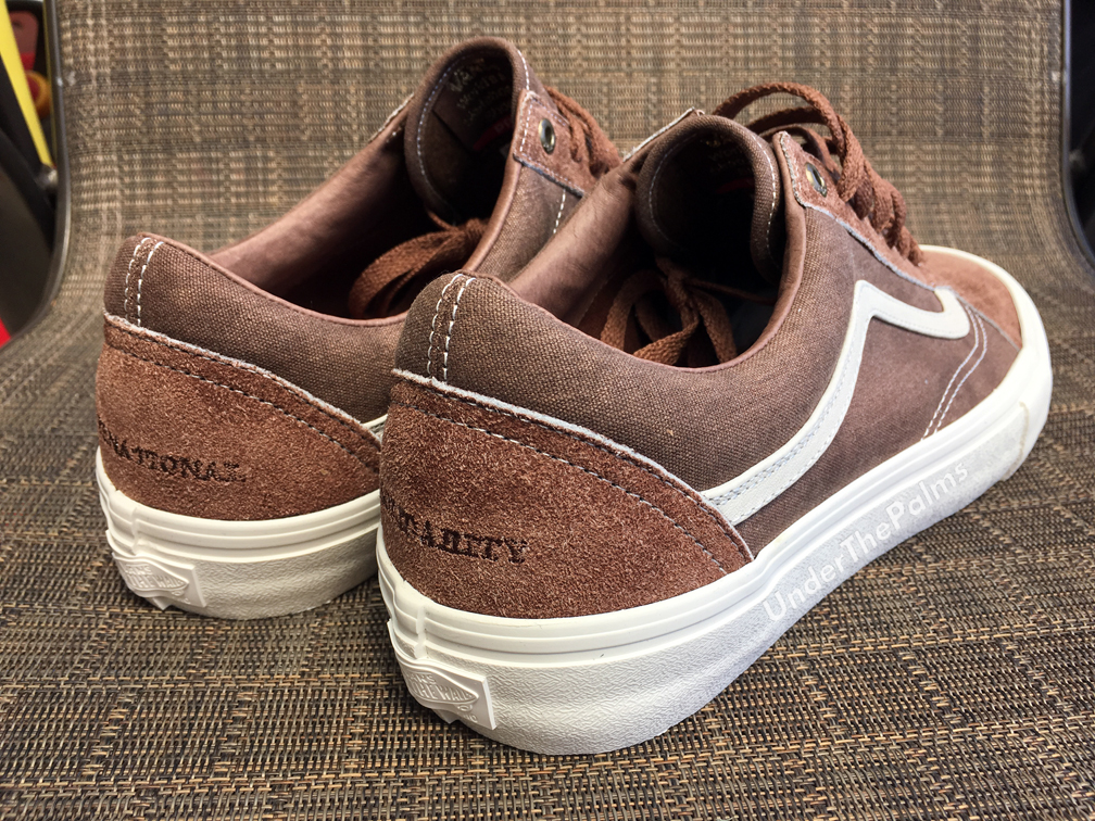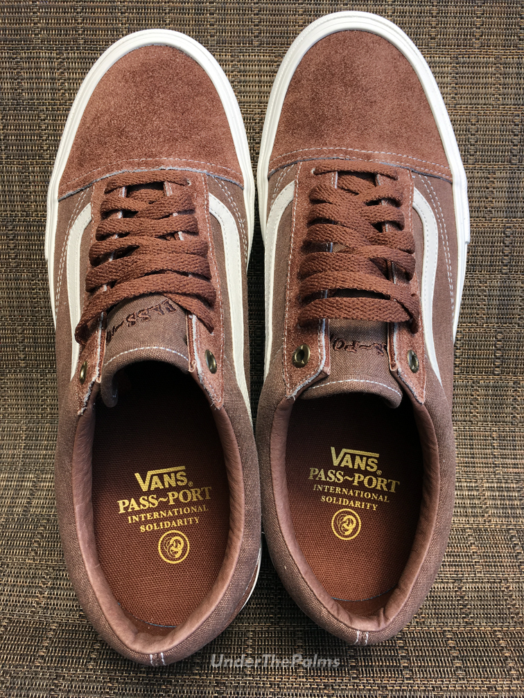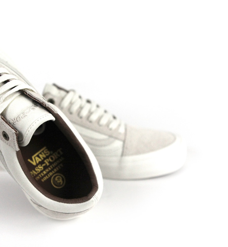 It appears that Vans and Pass~Port have been working on a little collaboration that has been kept tightly under wraps, which is just awesome. Too many times, we get early leaks on product, and that just takes away the fun sometimes. This one came out of left field for sure, and the end result is just amazing. For those of you unfamiliar with Pass~Port, they’re a brand from down under, and their style represents their travels, their friends, and their local Australian/New Zealand heritage. If you look at their apparel, you’ll notice a lot of browns, oranges, and off-whites in the mix, giving an earthy vibe if you will. For their inaugural collab, they chose to construct an Old Skool Pro in two colorways, brown, and white. Each one consists of a mixture of hairy suede, and washed canvas, featuring an embroidered slogan on each heel that reads “International + Solidarity”. Pass~Port branding can also be found on the tongue, as well as the UltraCush HD footbeds. Both shoes feature brown leather linings, which are a nod to their brown top and bottom veneers that are featured on all Pass~Port decks. I’m really digging the simple style of these, and the materials they chose will surely make for a comfortable Old Skool. Flexibility & breathability are key. Great job Pass~Port, and even GREATER job at keeping these under wraps for so long. Surprises are always fun!
