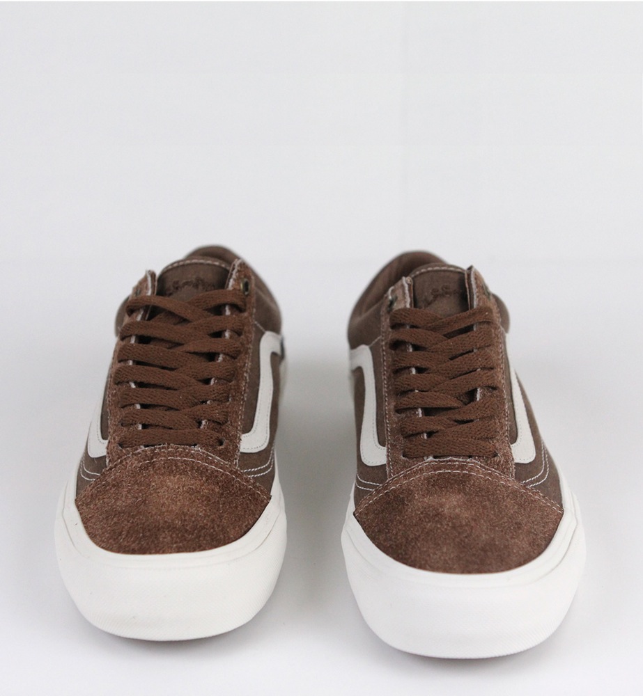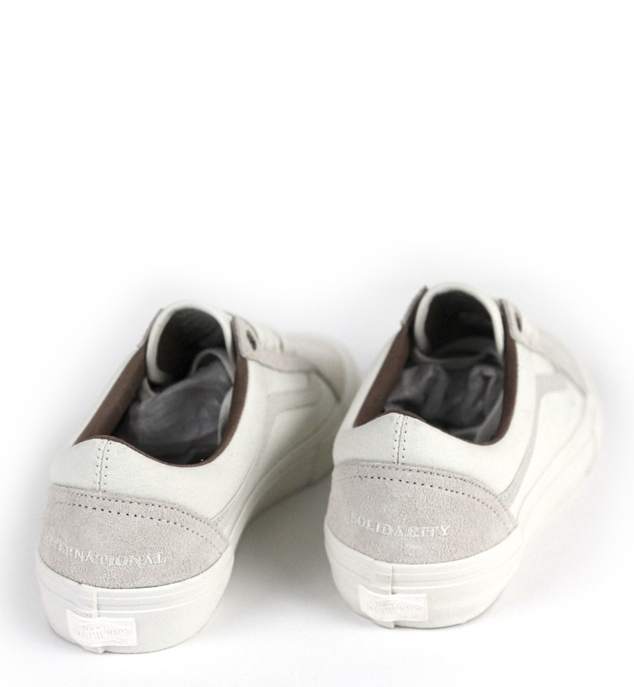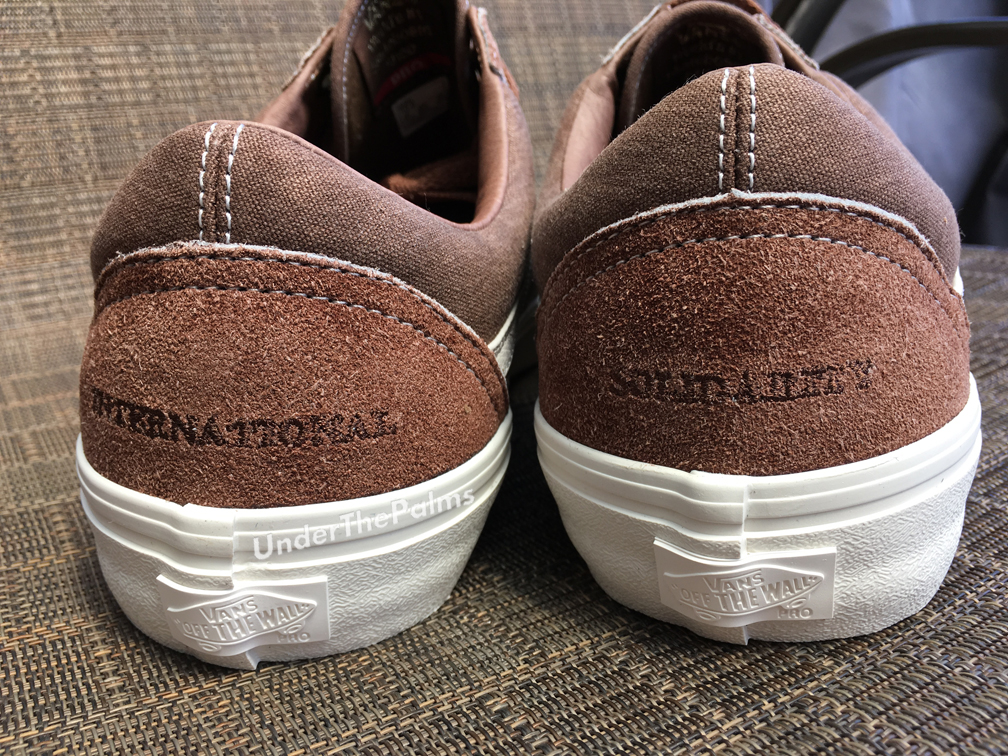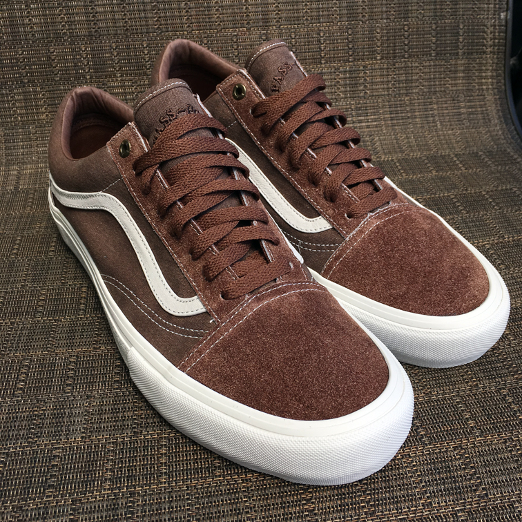 It appears that Vans and Pass~Port have been working on a little collaboration that has been kept tightly under wraps, which is just awesome. Too many times, we get early leaks on product, and that just takes away the fun sometimes. This one came out of left field for sure, and the end result is just amazing. For those of you unfamiliar with Pass~Port, they’re a brand from down under, and their style represents their travels, their friends, and their local Australian/New Zealand heritage. If you look at their apparel, you’ll notice a lot of browns, oranges, and off-whites in the mix, giving an earthy vibe if you will. For their inaugural collab, they chose to construct an Old Skool Pro in two colorways, brown, and white. Each one consists of a mixture of hairy suede, and washed canvas, featuring an embroidered slogan on each heel that reads “International + Solidarity”. Pass~Port branding can also be found on the tongue, as well as the UltraCush HD footbeds. Both shoes feature brown leather linings, which are a nod to their brown top and bottom veneers that are featured on all Pass~Port decks. I’m really digging the simple style of these, and the materials they chose will surely make for a comfortable Old Skool. Flexibility & breathability are key. Great job Pass~Port, and even GREATER job at keeping these under wraps for so long. Surprises are always fun!