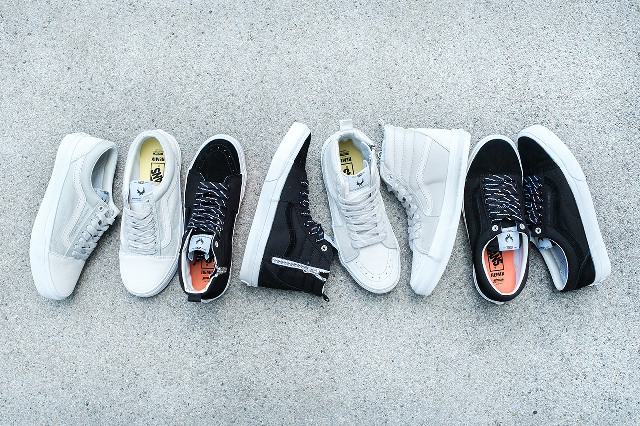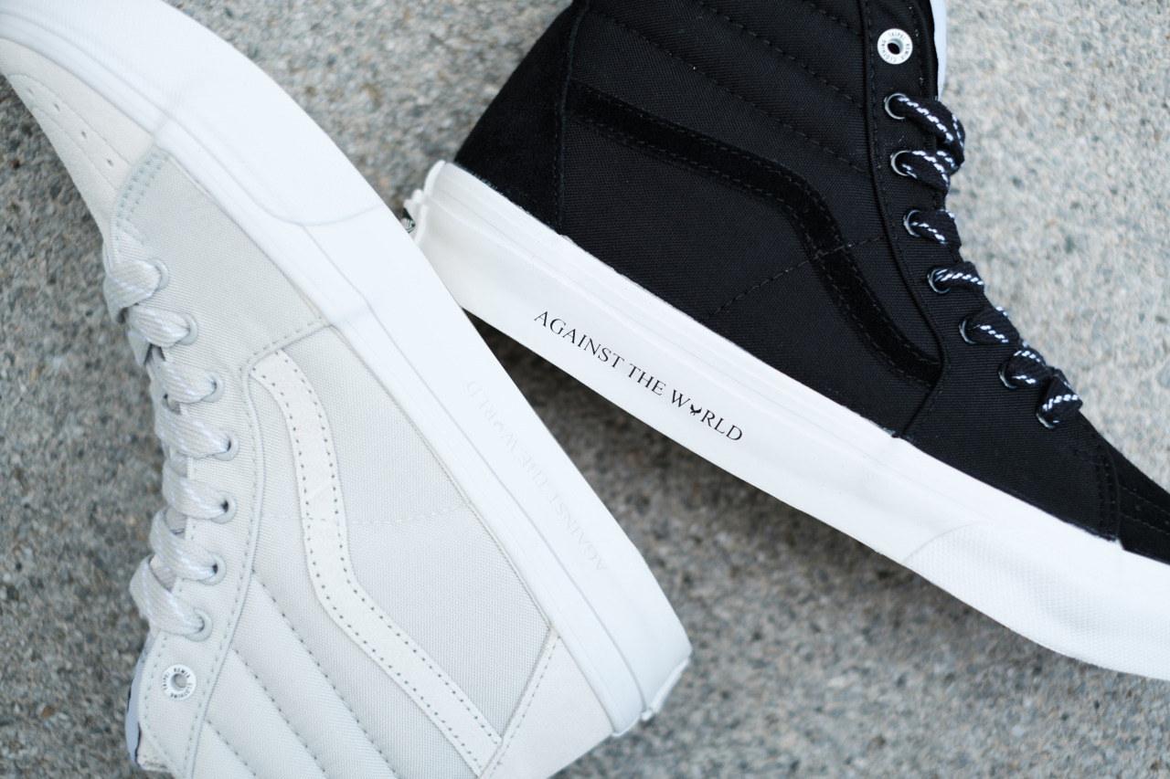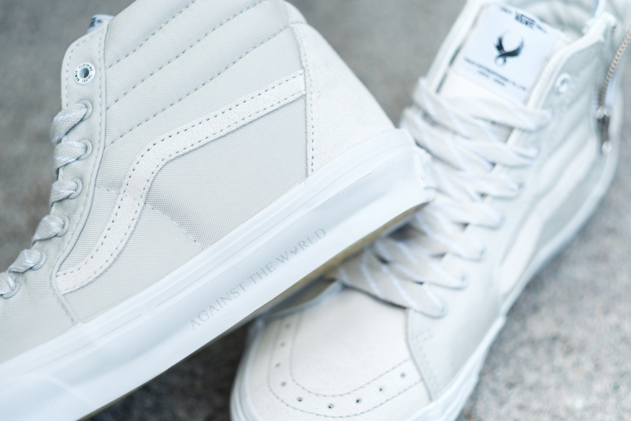 Vans and REMIX Taipei have come together to release this collection of four shoes, dubbed the “Against The World” pack. All 4 pairs are constructed using a mixture of suede and canvas, in two tonal colorways, black or white. Each pair features subtle custom details, like 3M laces, neon orange or yellow footbeds, woven tongue labels, and printed words “Against The World” on the vulcanized side walls, but the most notable feature are the medial side ankle zippers on the Sk8-Hi, similarly found on the Sophnet. Sk8-Hi’s. Pretty dope. Pretty dope. These are now available from REMIX in Taipei, so if you’re looking for a pair, then get with that Asia proxy ASAP!