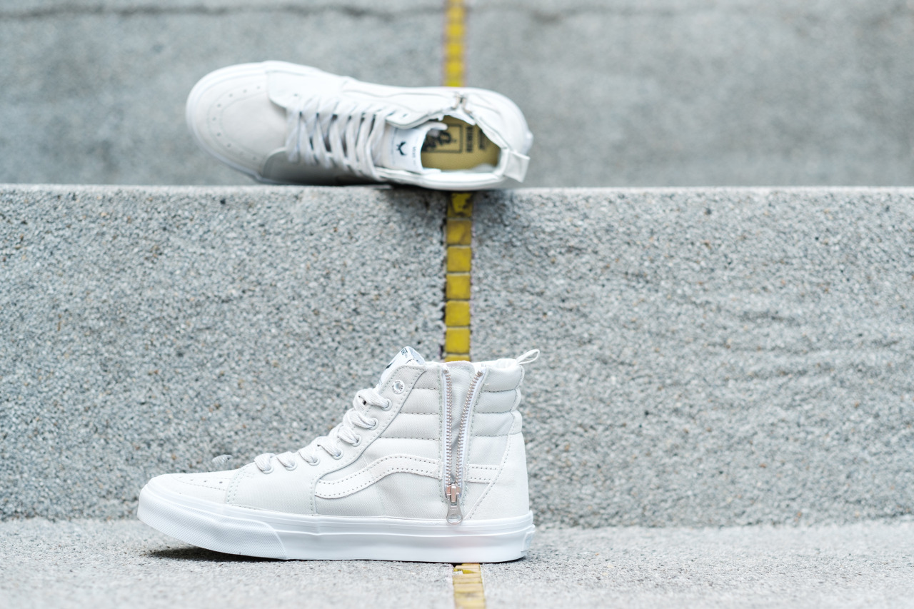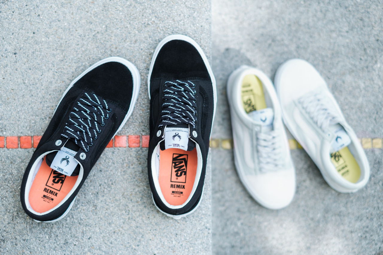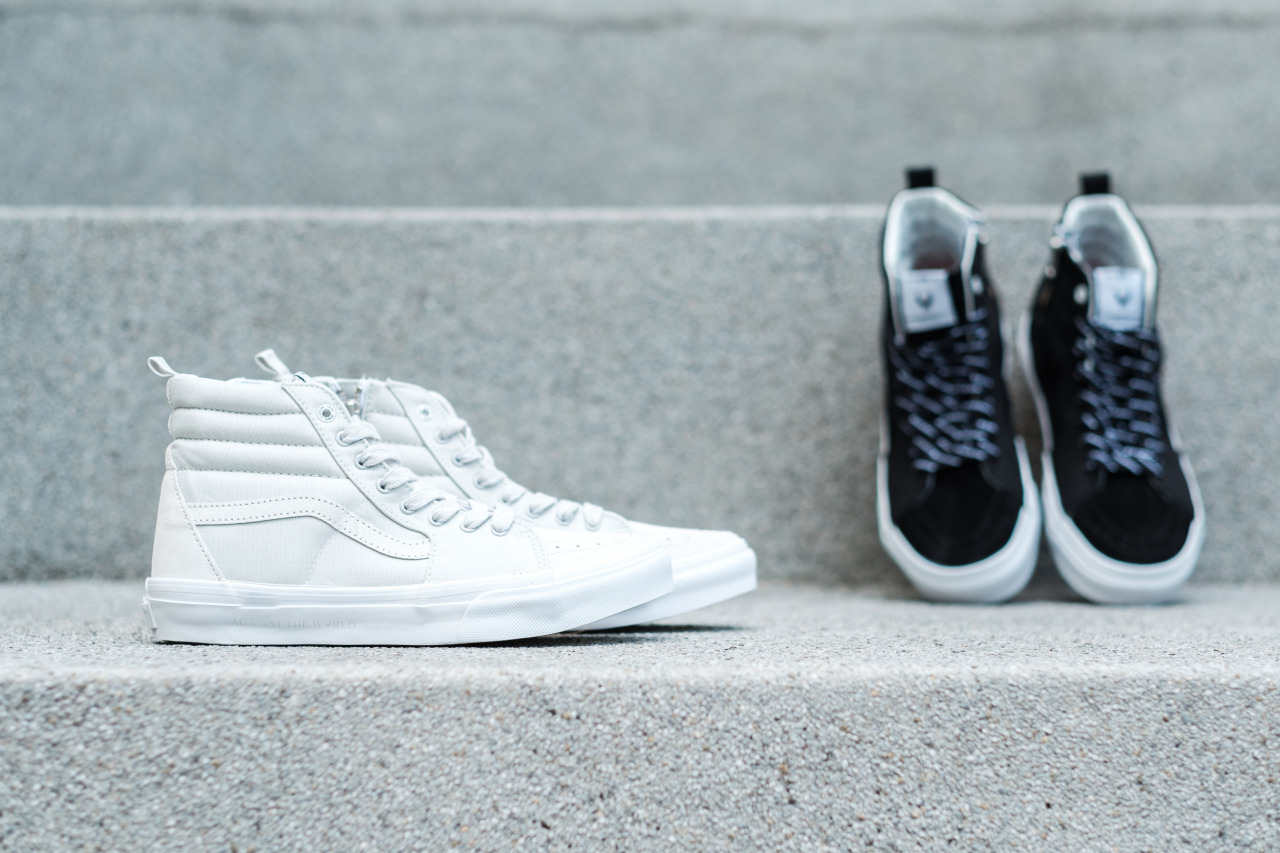 Vans and REMIX Taipei have come together to release this collection of four shoes, dubbed the “Against The World” pack. All 4 pairs are constructed using a mixture of suede and canvas, in two tonal colorways, black or white. Each pair features subtle custom details, like 3M laces, neon orange or yellow footbeds, woven tongue labels, and printed words “Against The World” on the vulcanized side walls, but the most notable feature are the medial side ankle zippers on the Sk8-Hi, similarly found on the Sophnet. Sk8-Hi’s. Pretty dope. Pretty dope. These are now available from REMIX in Taipei, so if you’re looking for a pair, then get with that Asia proxy ASAP!