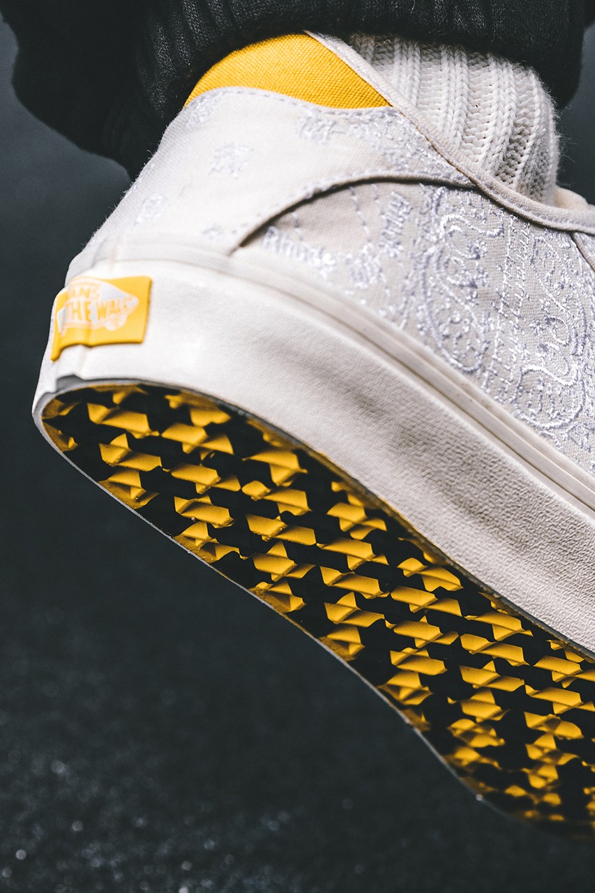 RHUDE’s idea for the undyed Diamo is for wearers to customize their pair by themselves, adding plenty of color from the whole spectrum in any manner they desire. The synthetic thread that creates the bandana pattern won’t be dyed, and therefore will stand out against any colors you may wish to add to your otherwise plain sneaker.