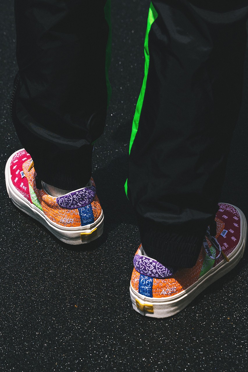 The collaboration offers two incredibly intricate and playful looks, with the Diamo and Acer Ni both sporting an all-over embroidered bandana finish. However, where the Acer Ni sports a patchwork colorway made up of red, orange, yellow, purple, blue, and green suede, the Diamo comes in a more laid-back off white-hue and is made from traditional canvas.