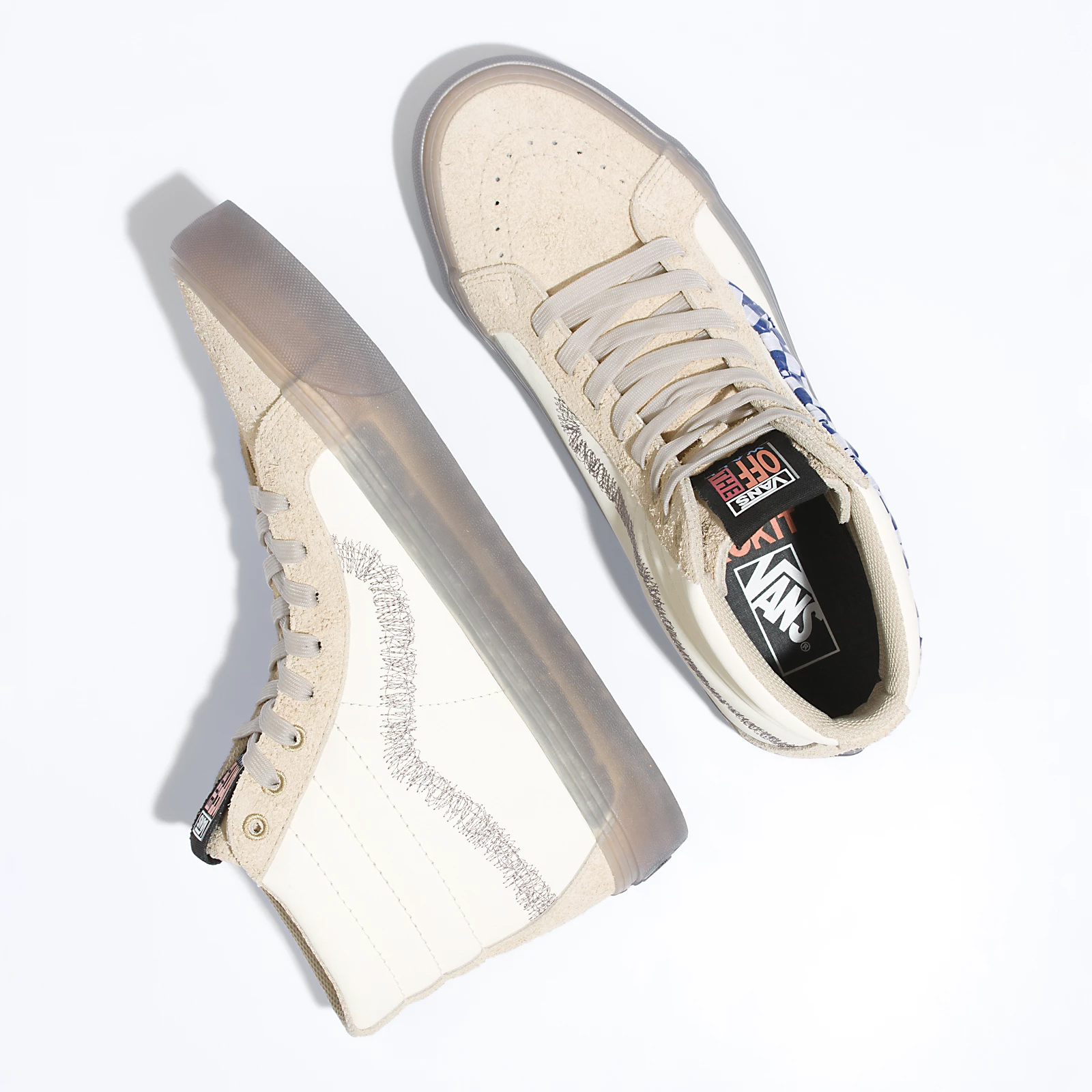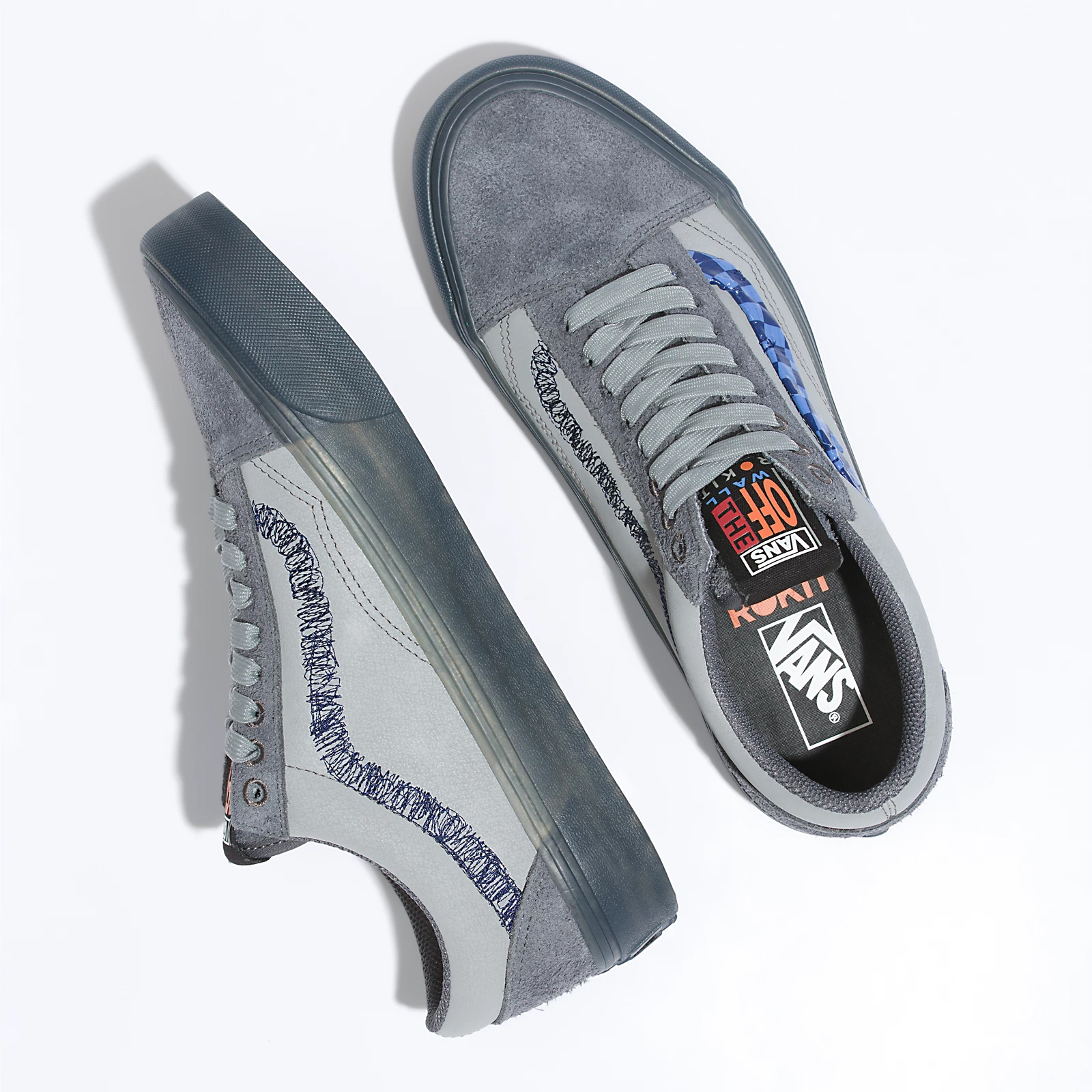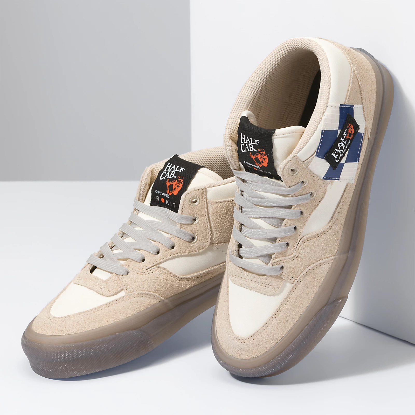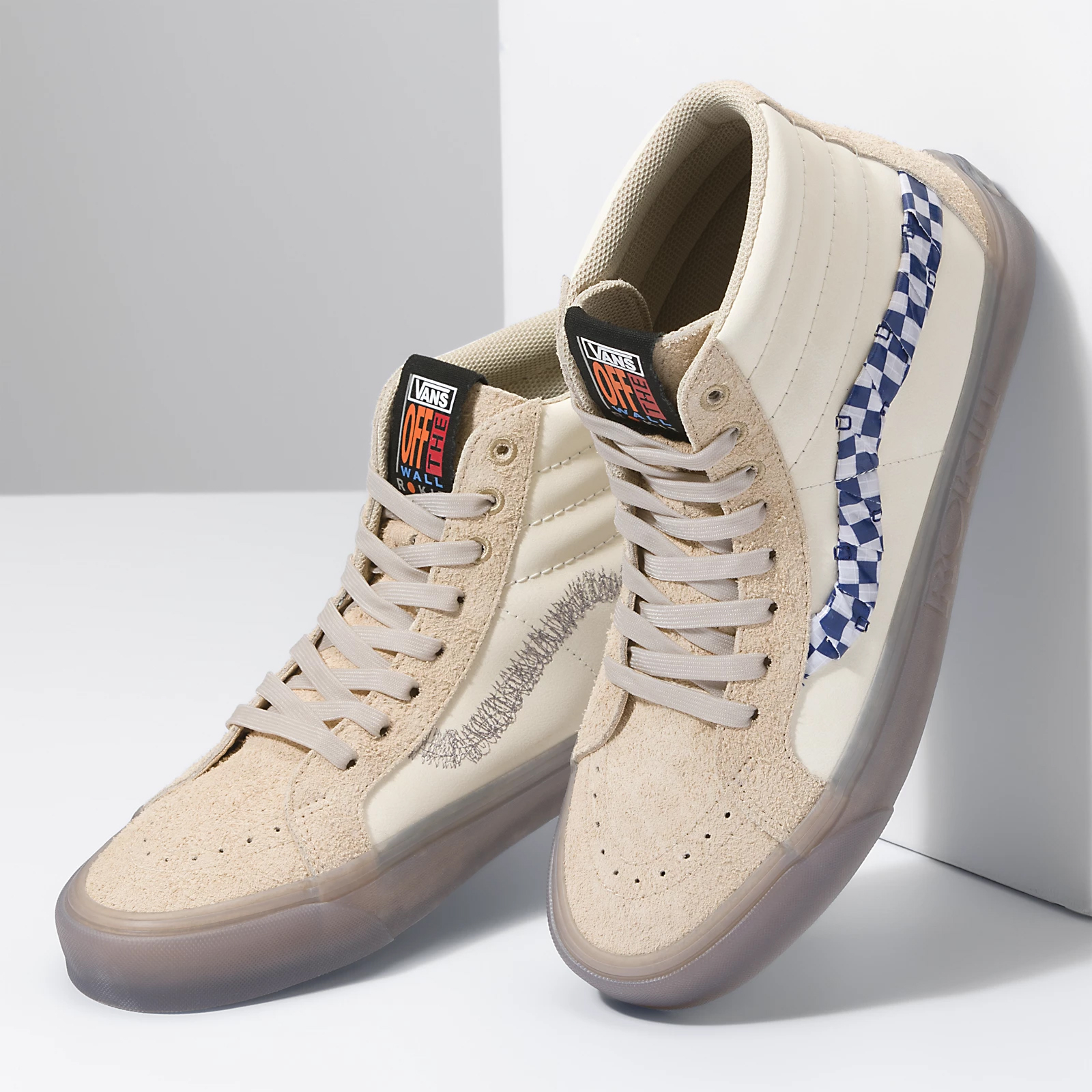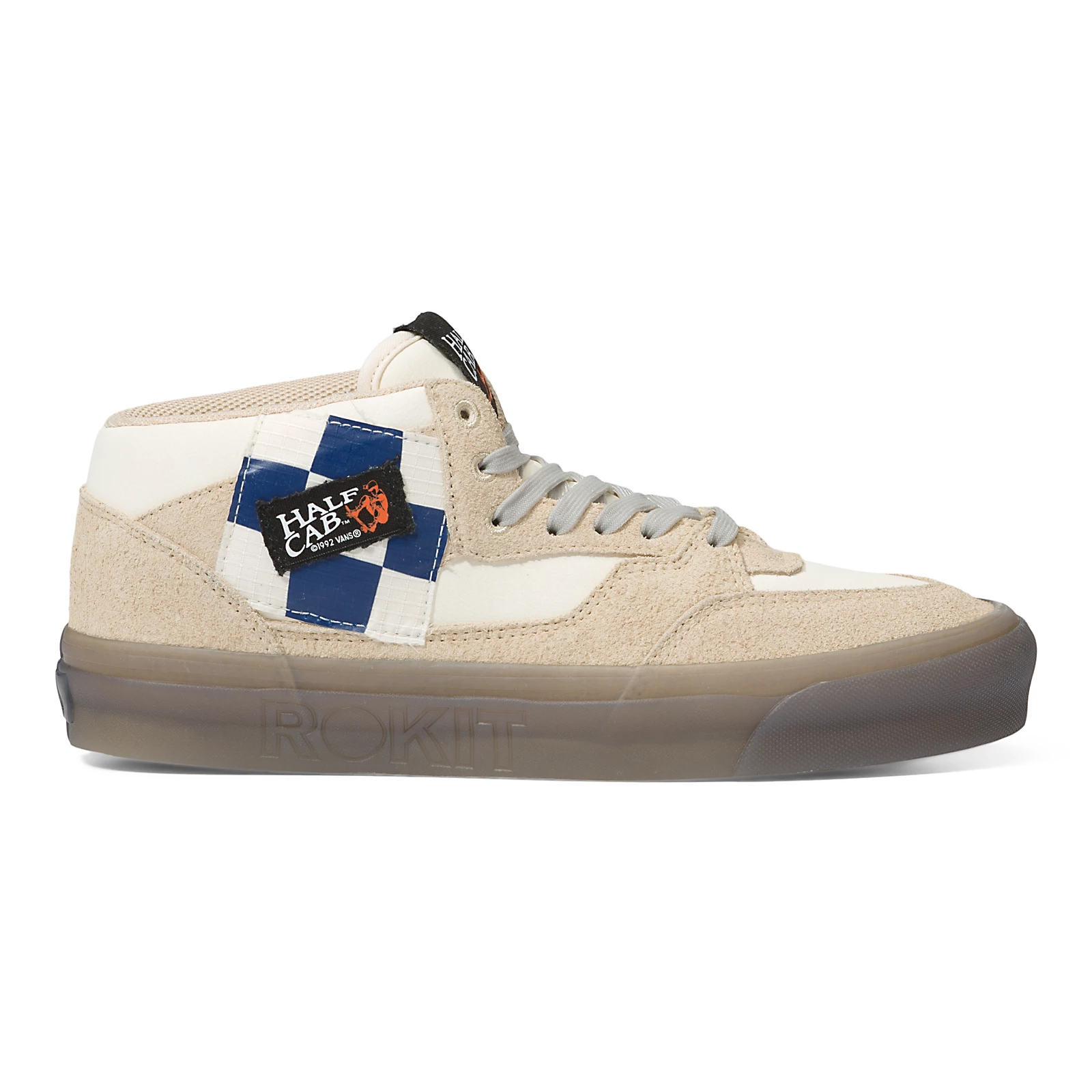 The Vans X Rokit Sk8-Hi 38 DX WS uses a muted color palette, heavy textures at the sidestripes, and a see-through sidewall print, while the Vans X Rokit Half Cab 33 DX uses a muted color palette, unique appliques, and a see-through sidewall print, and lastly the Vans X Rokit Old Skool 36 DX WS uses a muted color palette, heavy textures at the sidestripes, and a see-through sidewall print, all for a modern look that reflects the Rokit lifestyle.
