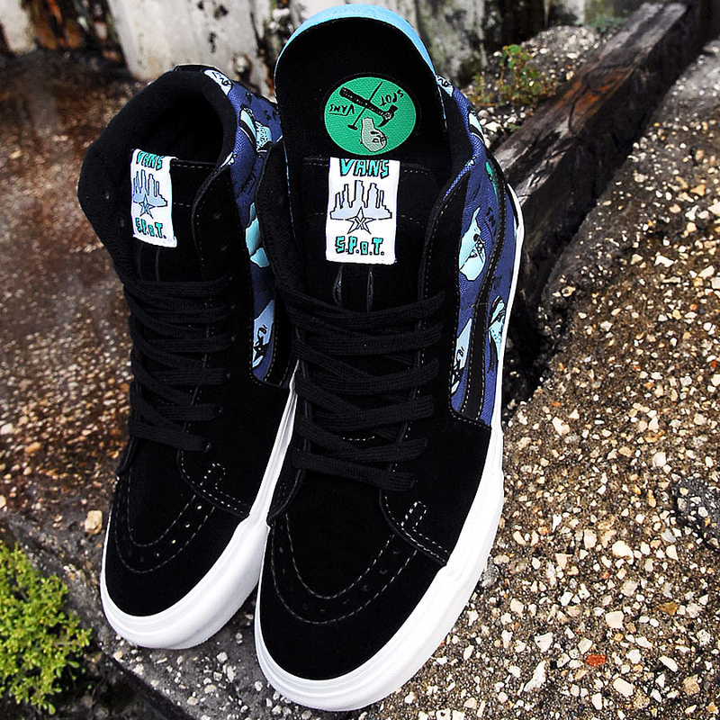 The official release date is finally here for the Vans x Skate Park of Tampa Sk8-Hi Pro. Going with a more subtle approach than usual, SPoT’s shoe is comprised primarily of black suede, except for the rich blue nylon side panels featuring Russ Pope’s artwork. There’s also a custom tongue tag featuring Pope’s rendition of the Skate Park of Tampa’s main logo on it, as well as custom removable PU footbeds. These should make for a nice addition to your current Vans lineup. Head on over to SPoT’s Facebook page for release info.