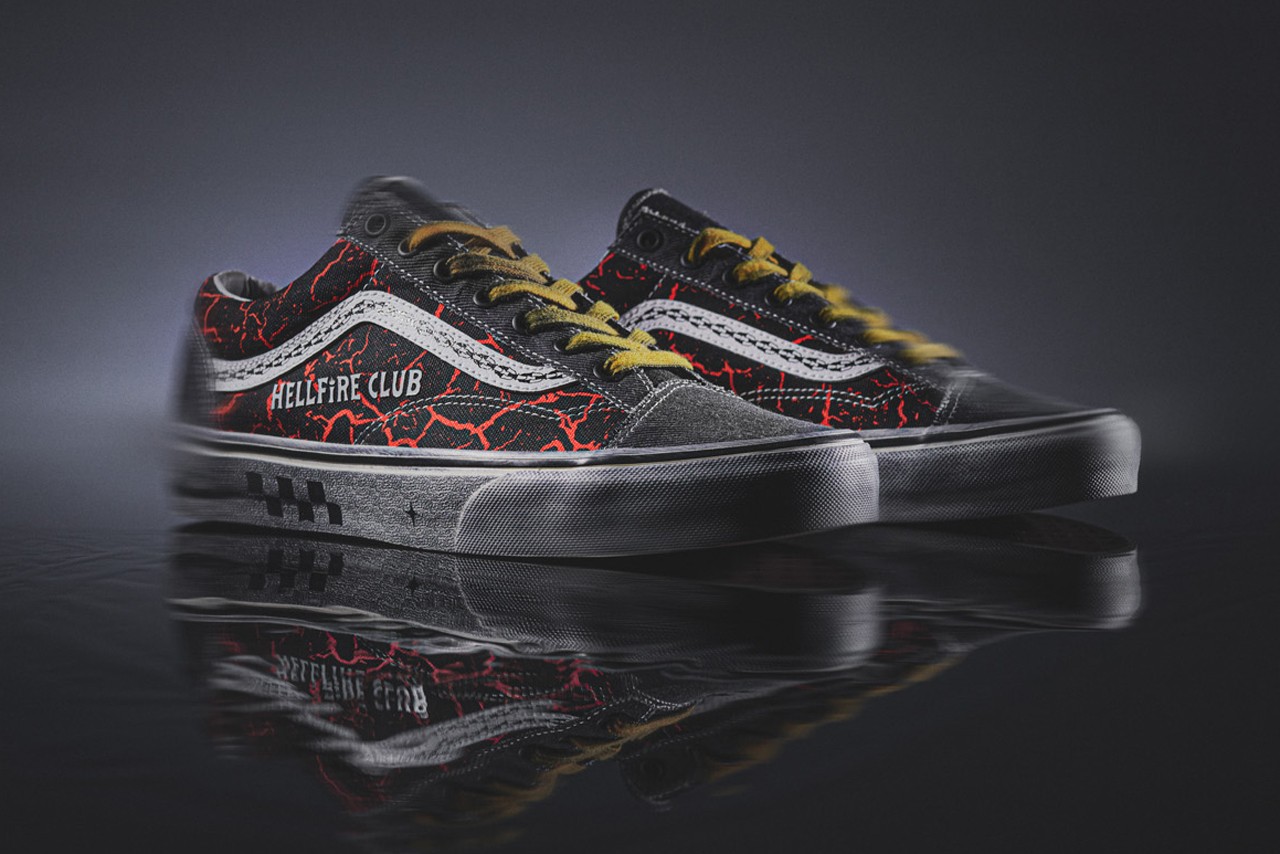 Beginning with footwear, the Sk8-Hi, Old Skool, Slip-On and Authentic silhouettes are all visited by the duo as various thematic graphics and detailing covers each pair. The Old Skool “Hellfire Club Style 36” carries a black and red crackle print while being embellished with skulls, axes and throwing stars from Dungeons & Dragons. Other key inclusions involve customizable pairs of the aforementioned four styles and a Sk8-Hi Reissue that utilizes a hairy suede upper, reflective Demogorgon screen print and “FRIENDS DON’T LIE” text on the midsole. Considering the apparel offerings, a Hellfire Club Jean Jacket leads the way alongside various graphic tees, accessories and a camp shirt and short set.