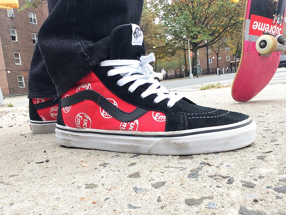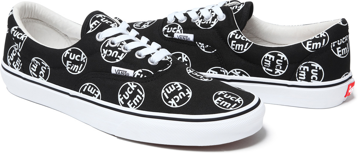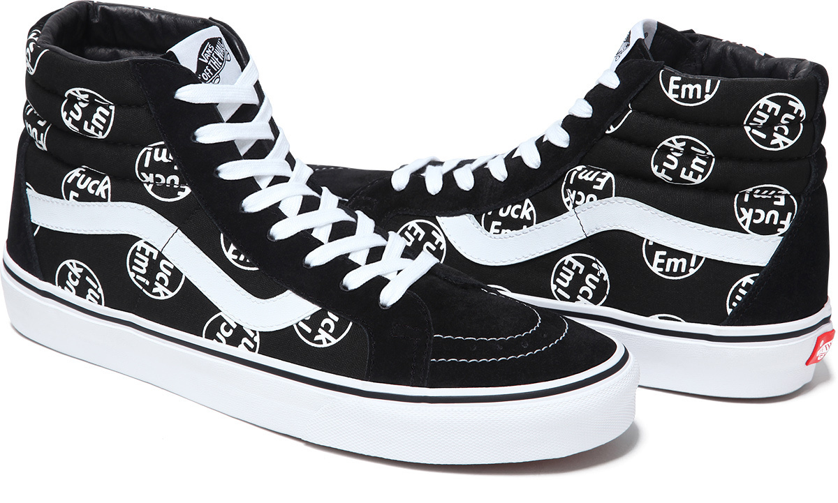 “Supreme will be releasing two new styles of Vans – The Sk8-Hi and The Era. The Sk8-Hi features a premium suede and canvas upper with leather lining and in-sole. The Era features a canvas upper with leather lining and in-sole. Made exclusively for Supreme both styles will be available in two colorways.”