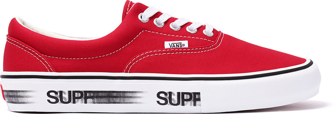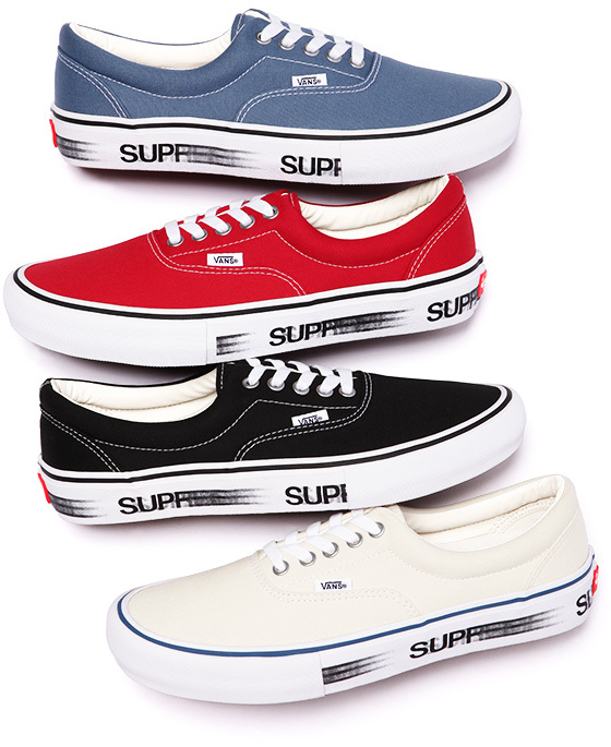 Well it’s official. Supreme has sent out the official press release for the next Vans collaboration, which is now confirmed to be the Motion Logo Era Pro that we saw the other day. All 4 classic Vans colorways will be available, done up in a canvas material, with leather linings. Look for these to drop this Thursday at Supreme.