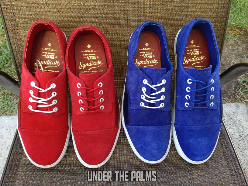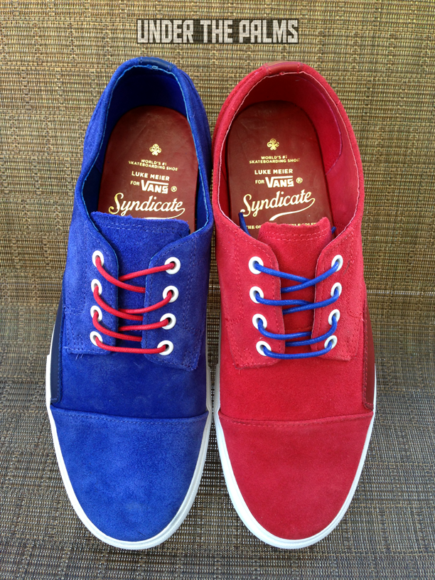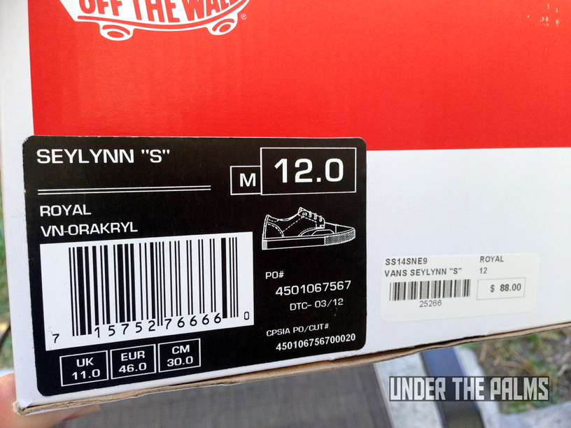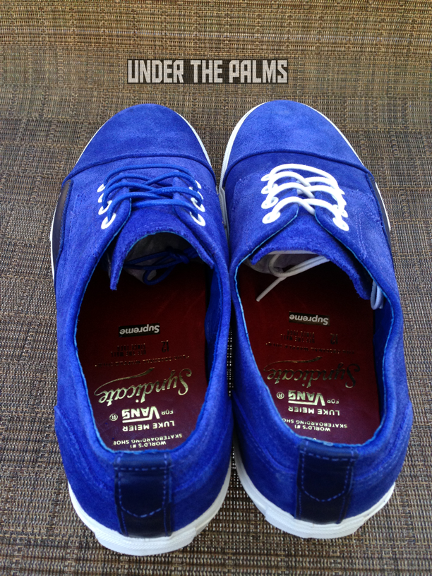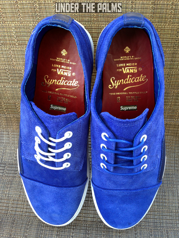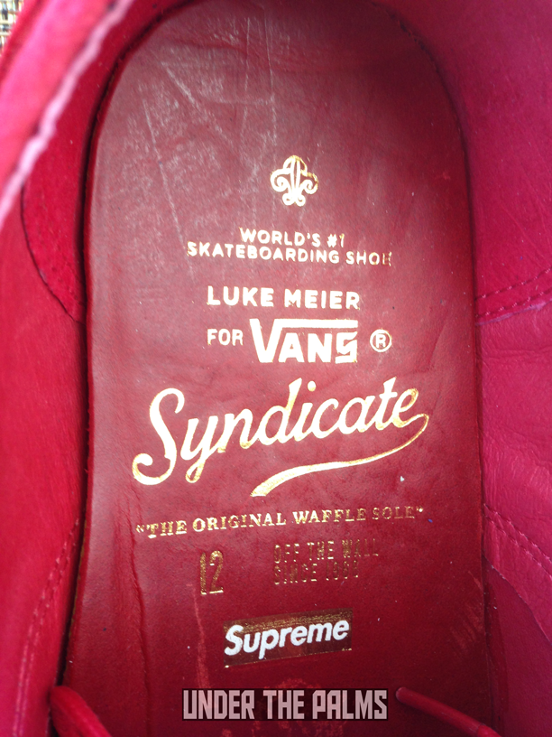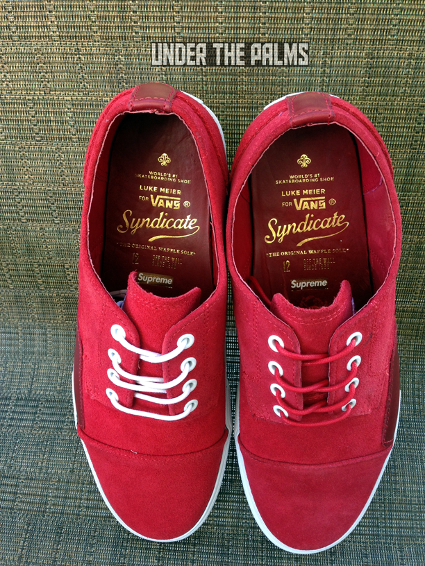 I really need to hand it to our UTP fam for knowledge of this release. Our member Wolfstrice09 stumbled across a Supreme LA employee’s IG account that had a picture of these Seylynn’s on it, stating that they were in at the shop. Wolfs’ tagged me in the photo, and asked if I knew anything about them, and I did! They were leaked about a year ago on a Vans employee’s IG feed (recognizing a pattern here?), stating that they were going to be an upcoming Supreme release. Well, fast-forward about a year and some months, and look what secretly showed up! Supreme has dropped the Seylynn “S” in store, without any prior news release or official launch. Sound familiar? Remember back when they dropped the Zero Lo “S” in Navy? It was an unofficial drop as well, however word spread to a few major blogs at the time. This time, nothing! Which made it nice for me, as I was able to stroll in about 3 days later and pick up my pairs. As most of you know, the Seylynn is the same shoe as the Zero Lo, and there’s no understanding why the name was changed around the time that 8FIVE2 released their Seylynn “S” collab with Vans Syndicate. There’s also another anomaly with this Supreme release. These were produced in 2012, as it shows on the box label, around the same time that the 8FIVE2 version came out. Perhaps there was a factory minimum? Who knows! All we know is that Supreme sat on them for a few years. There are 3 colors, black, red, and blue. I chose to pick up just the red and blue, as the black is identical to the OG Zero Lo “S” which I already have. The inside lining is red leather, like most Supreme Vans, and there is a Supreme logo stamped in gold foil, along with the Luke Meier graphics that are on all Zero Lo’s. These are awesome, and classy. Get on down to Supreme, to see what they have left. I imagine they are highly limited, and definitely worth adding to your Vans collection.