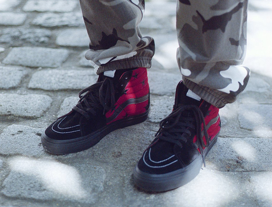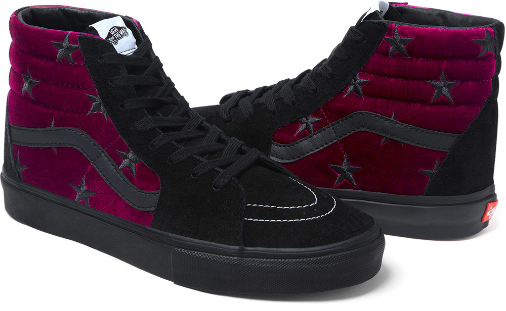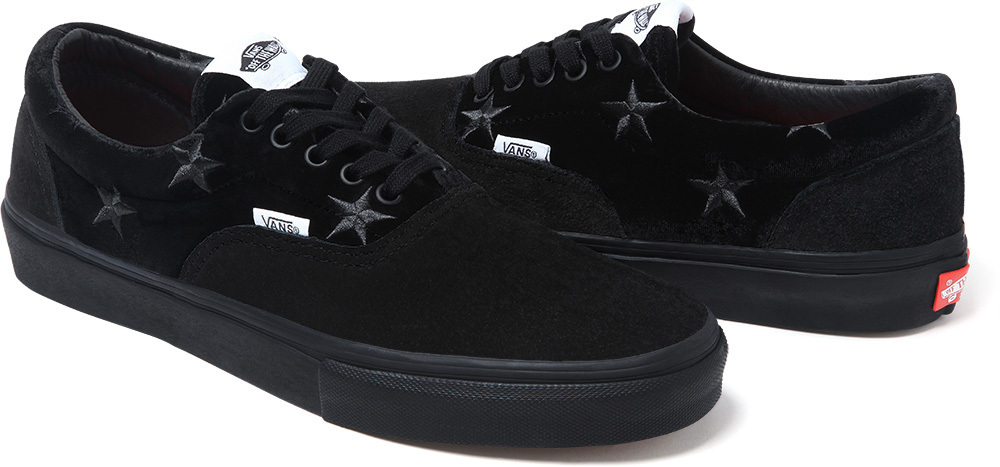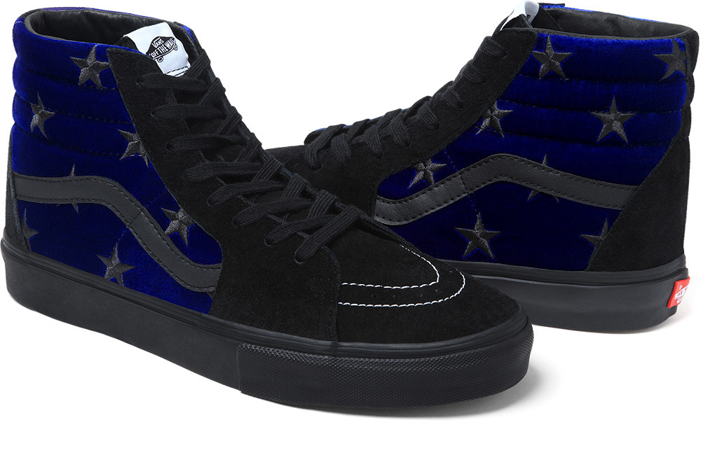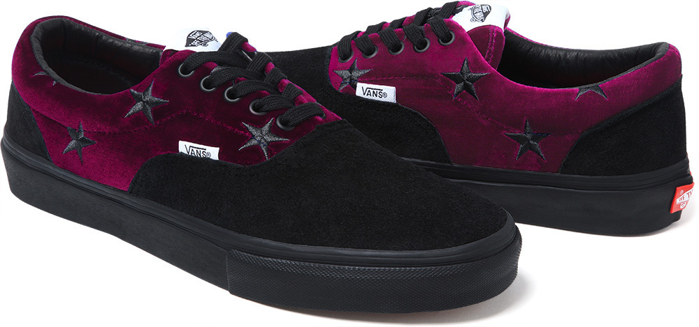 “This Fall, Supreme will be releasing two new styles of Vans – The Era and The SK-8 Hi. Both styles feature premium suede with embroidered velvet uppers and leather in-soles. The Era and The SK-8 Hi will come in three colorways made exclusively for Supreme.”
