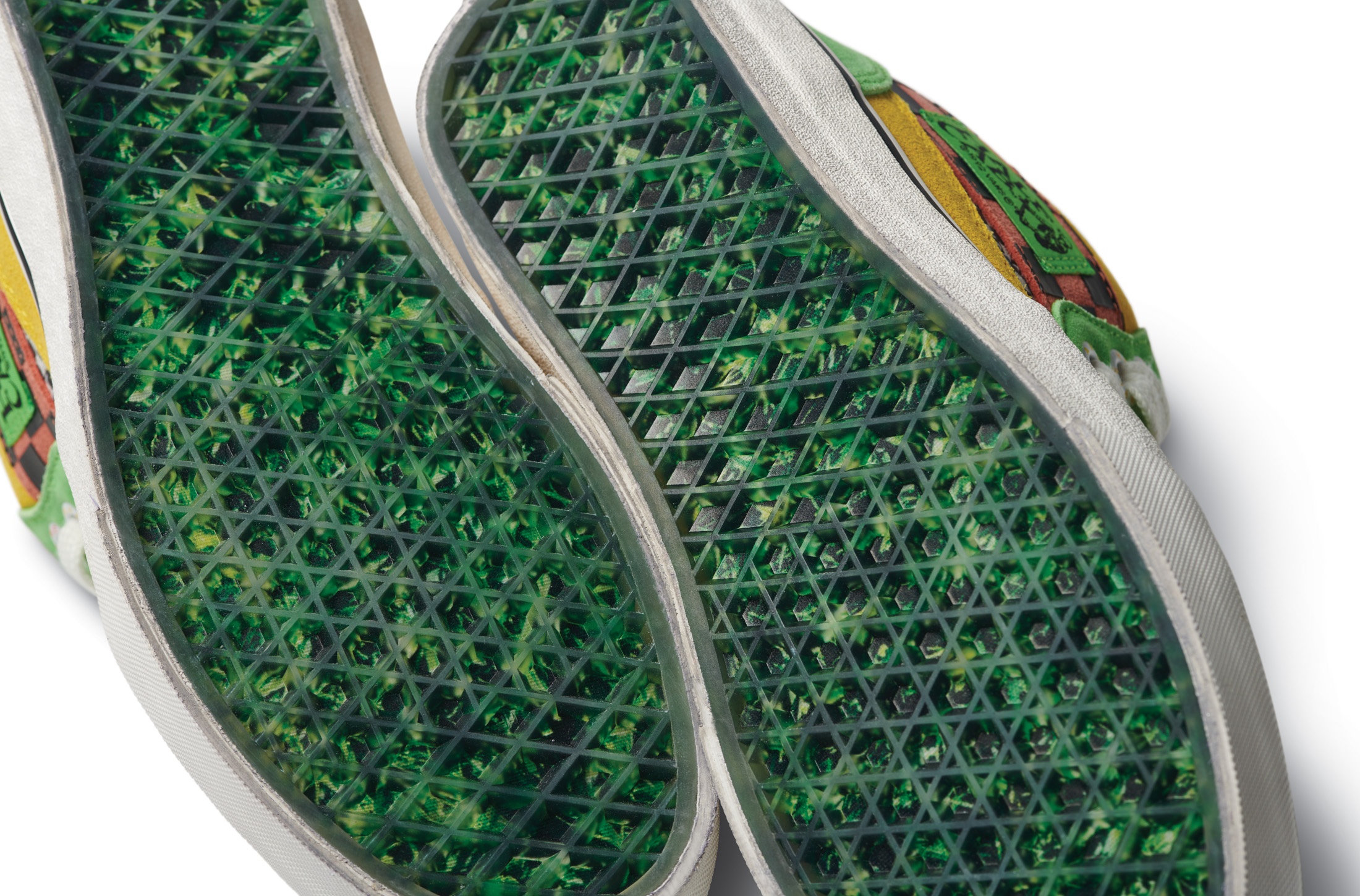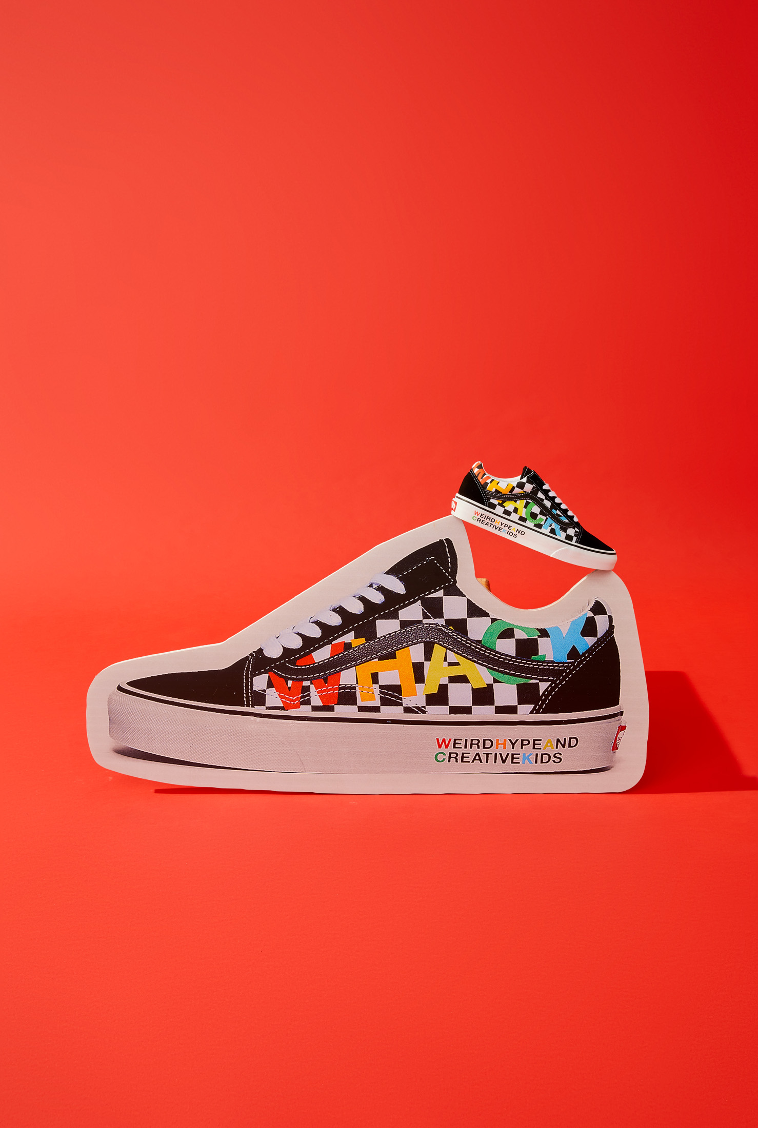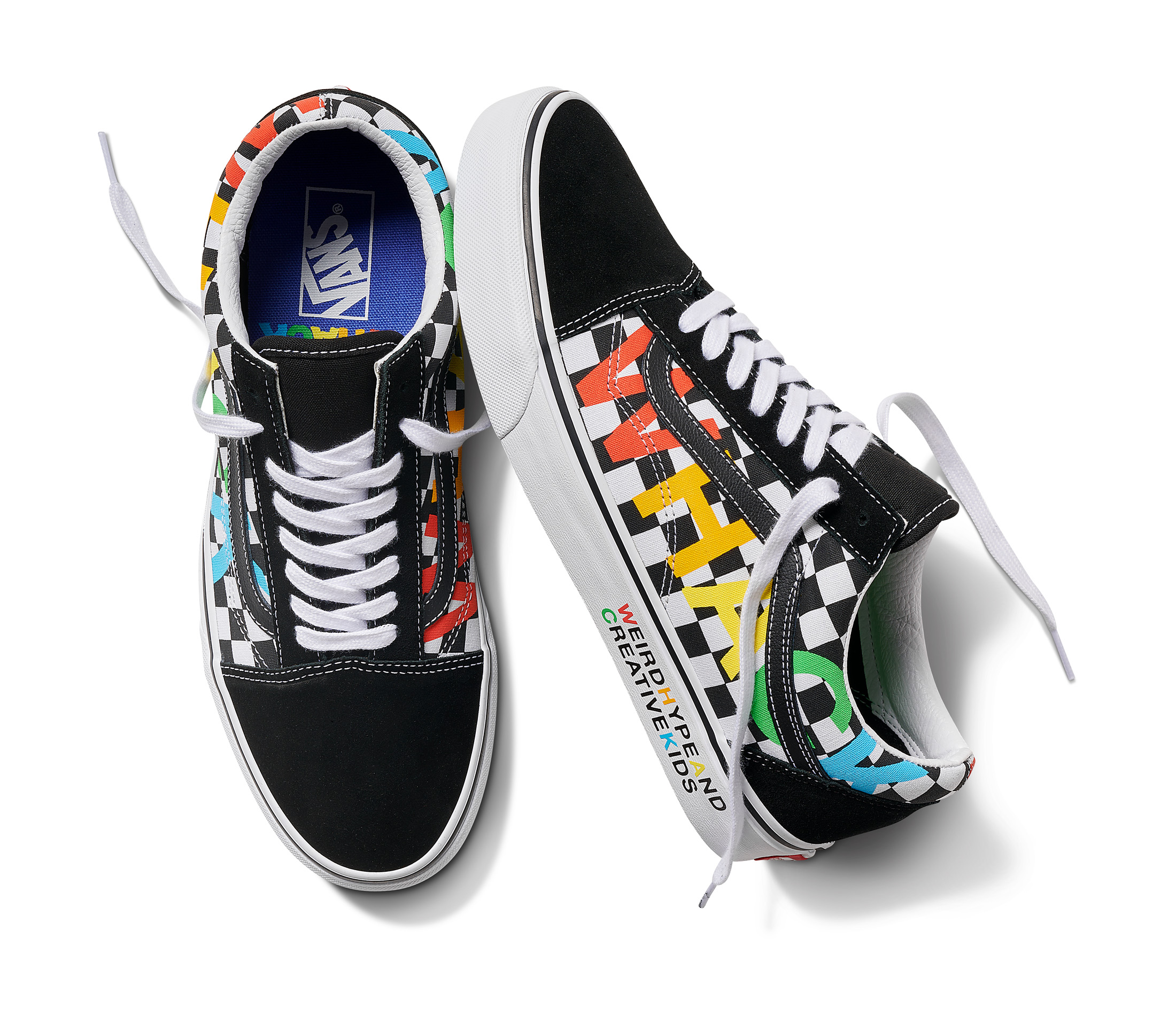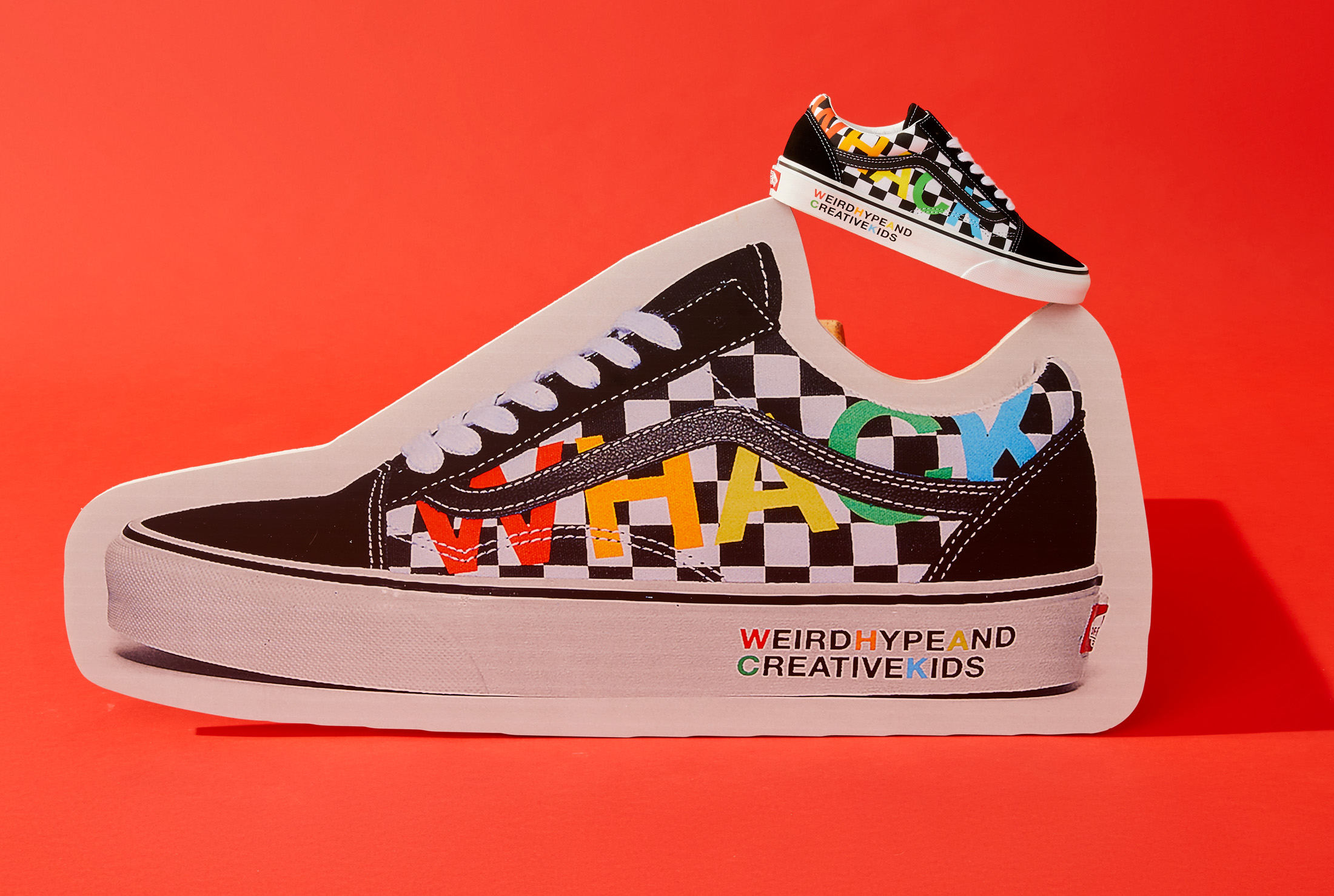 The Vans x Tierra Whack Half Cab provides Whack’s own spin on the Vans Classic, blending unexpected colorways and clashing Vans checkerboards in shades of yellow, green, red, black and white. Featuring a soft eco-suede upper and a rubberized checkerboard toe cap, the collection’s Half Cab comes complete with a secondary oversized green fuzzy lace and eyelets that read “Weird Hype And Creative Kids,” celebrating fans and followers of Tierra and her irreverent personal style. Contrasting left and right sockliners in blue and green decorate the insoles, while the tongue lining label features Whack’s signature in script, and a unique crystal bottom grass completes the style.