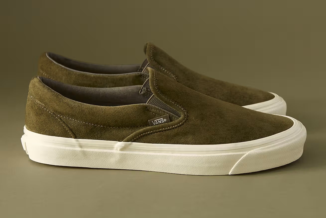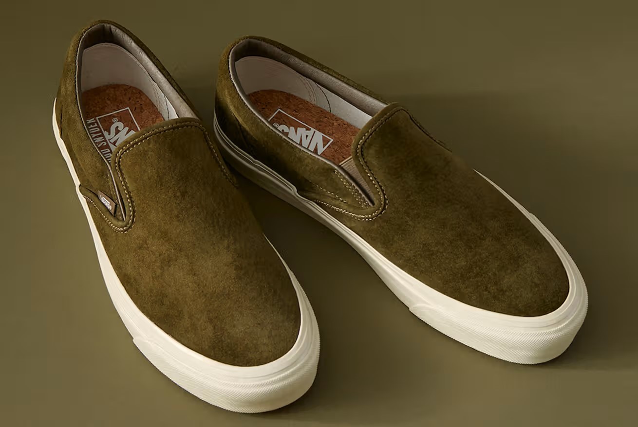 The “Dirty Martini” pack includes the Vans Slip-On 98 DX and the Lace-Up 73 DX models, mutually fashioned in the brand’s signature “Snyder Olive” hue reminiscent of its common olive additions. Furthermore, both pairs feature premium suede uppers, while the Lace-Up 73 boasts embroidered Vans branding at the medials and tan leather tags. Finally, the designs are complete with co-branded cork insoles and creamy rubber bottoms.