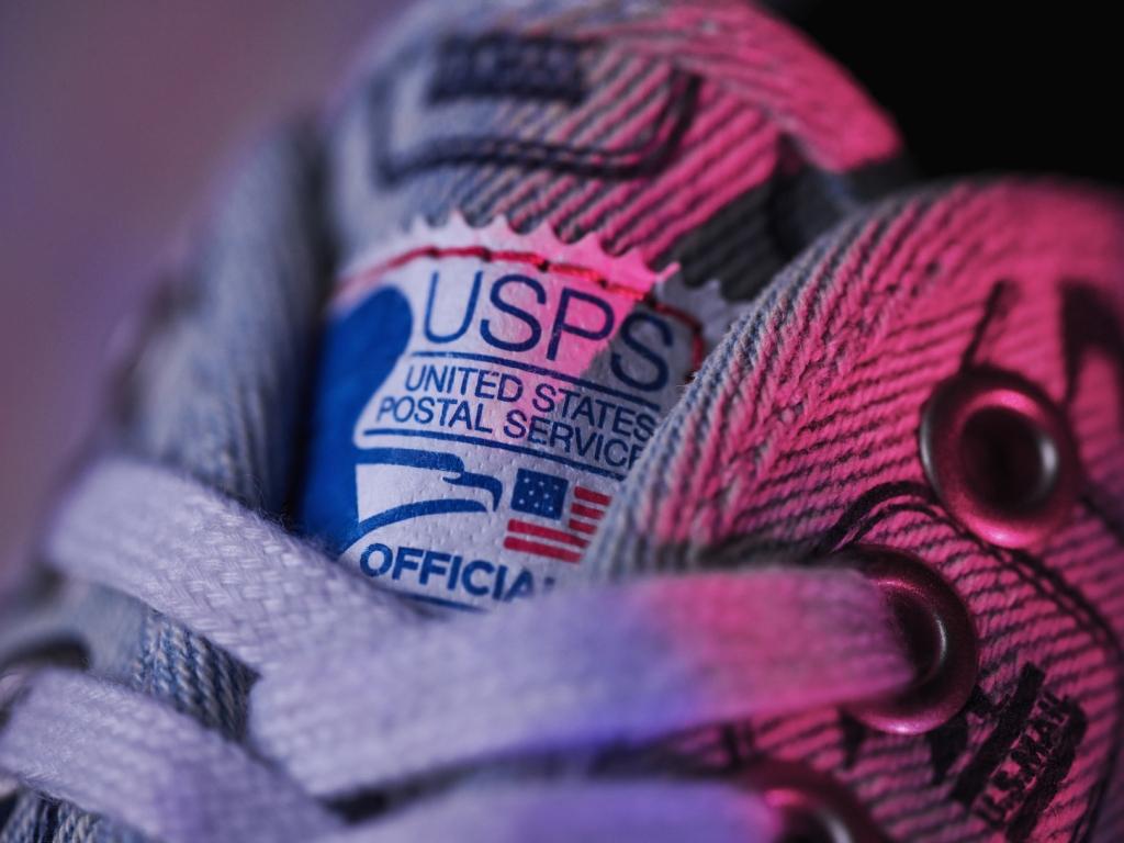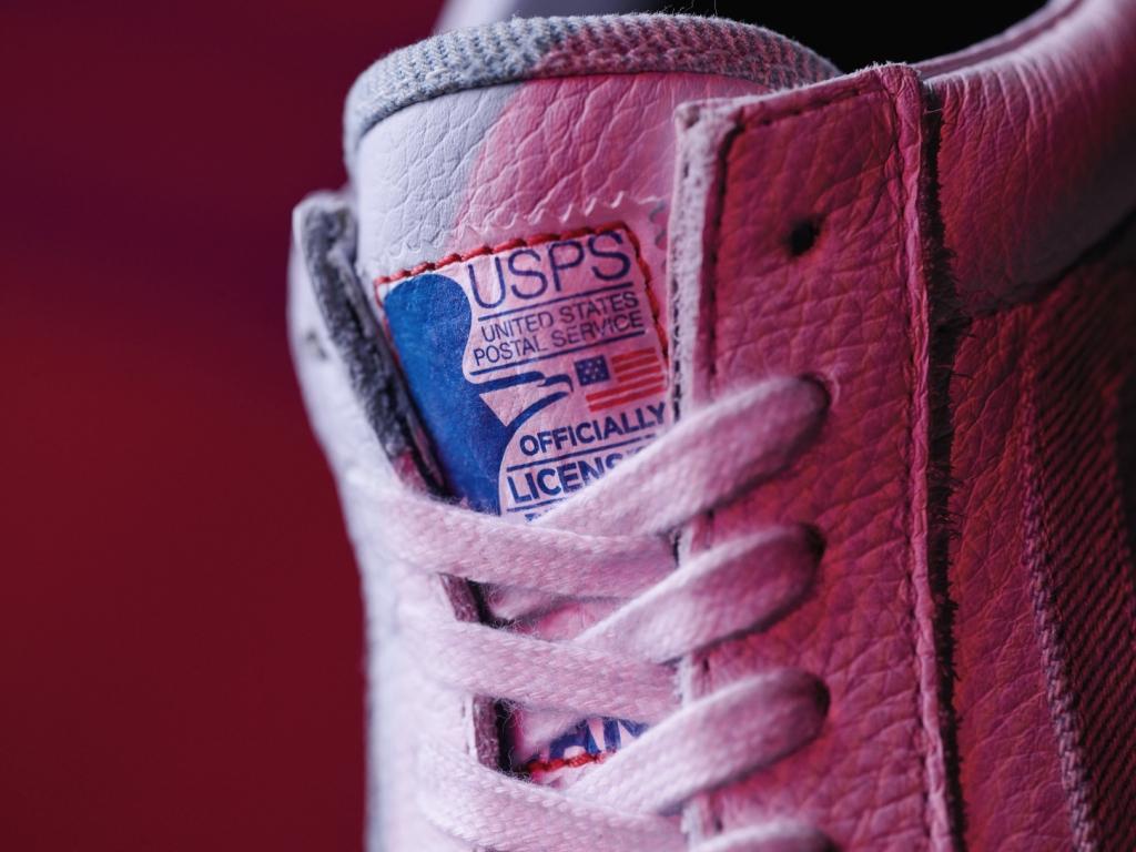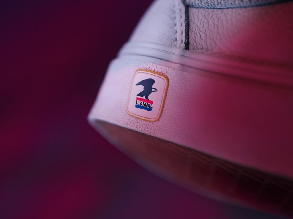 The collections Authentic is constructed of light blue denim, which pulls inspiration from the USPS uniform. It’s also decorated with custom branding from heel to toe and certified with a unique stamp graphic on its tongue.