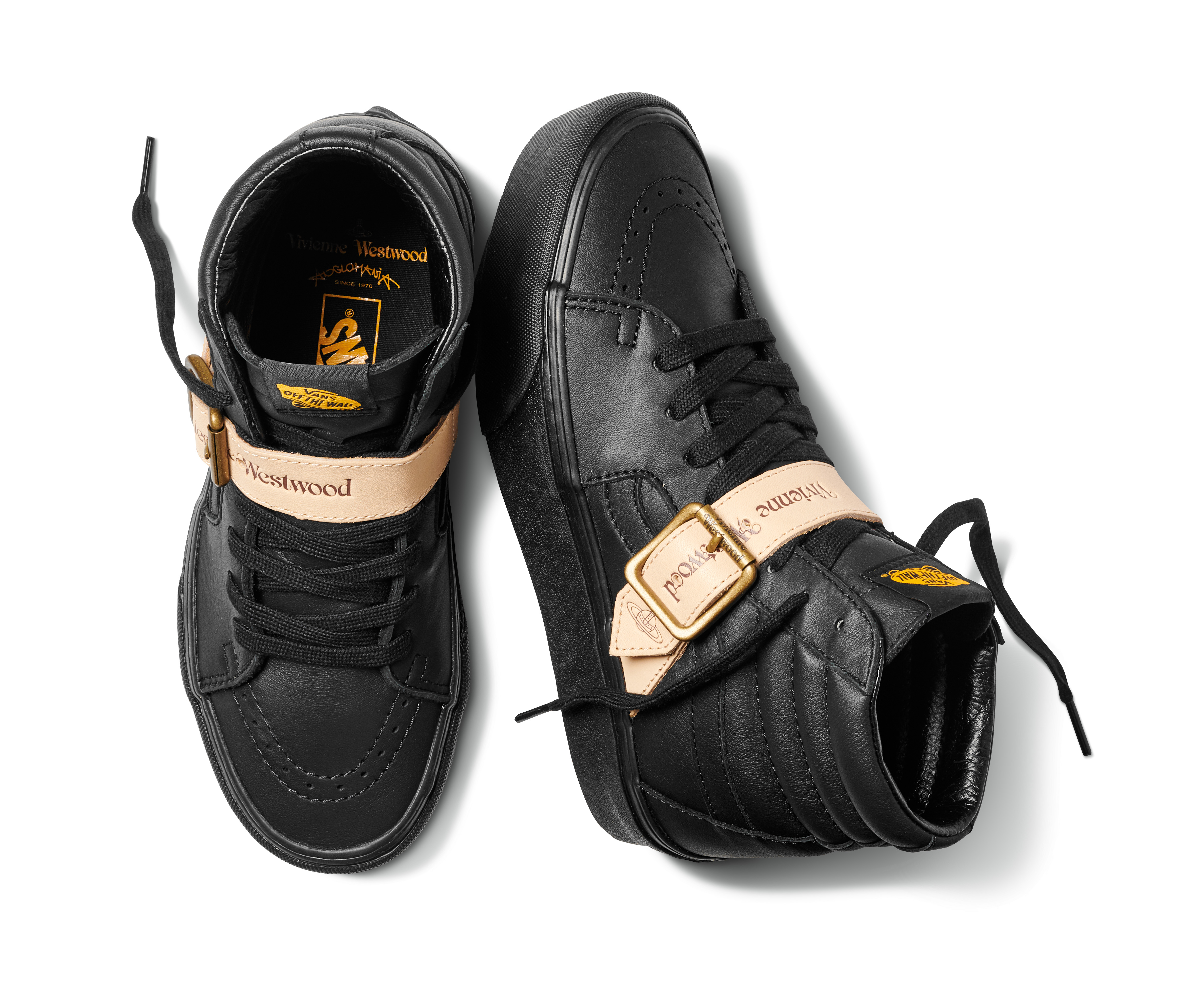 The Sk8-Hi Platform compliments the collection and is inspired by Vivienne Westwood’s Pirate boot – first presented in 1981 as part of the legendary Piratecollection. The Sk8-Hi Platform adopts key design notes from the iconic Vivienne Westwood Pirate boot – including the tan vegetable dye buckled strap across the high-top form.
