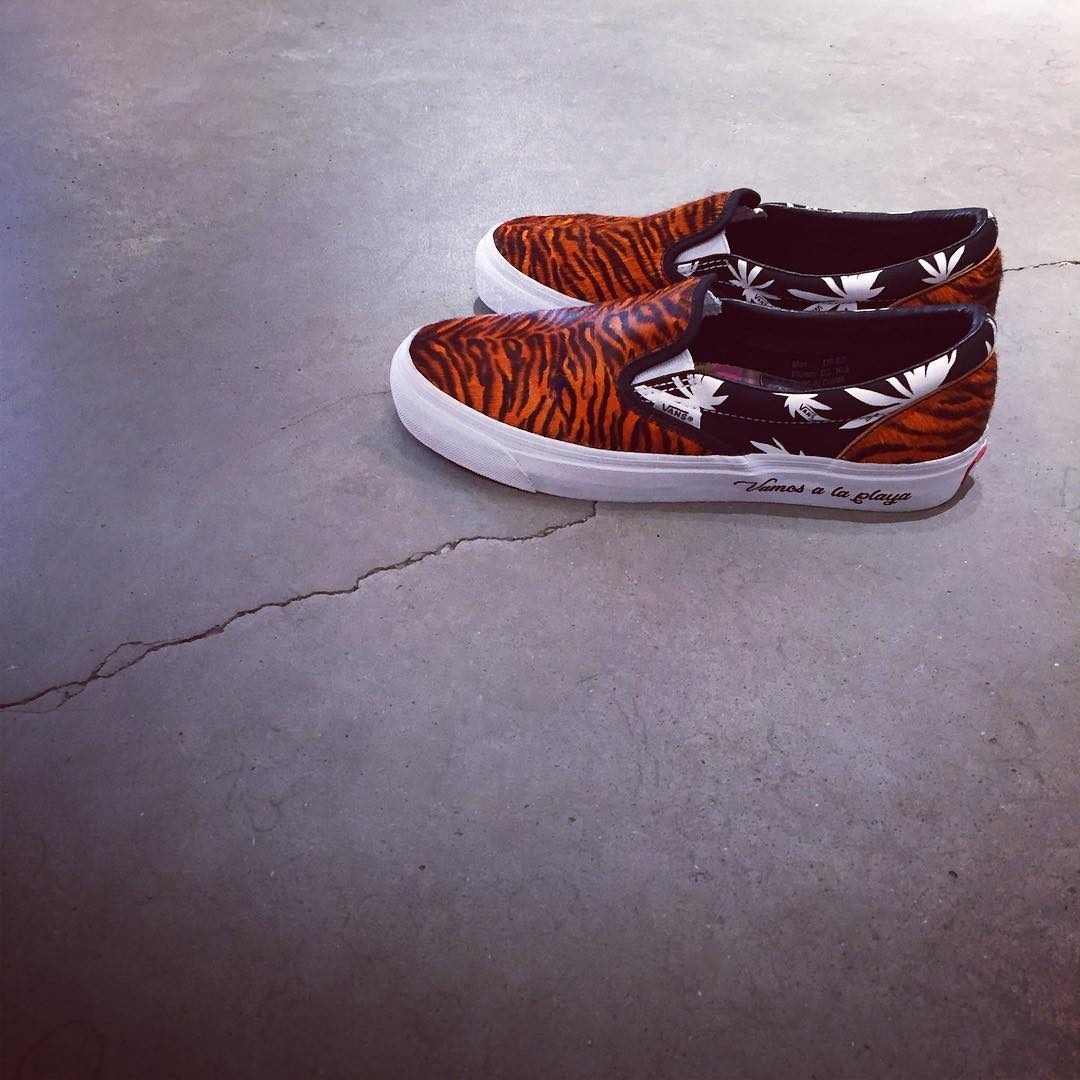 Vier, comes at us with the OG Slip-On LX, done up in a few different patterns. Tiger stripes, and Palm Leafs. The vulcanized sidewalls have a script message that reads “Vamos a la playa”, or “Come with us to the beach” if my 10th grade spanish serves me correct.