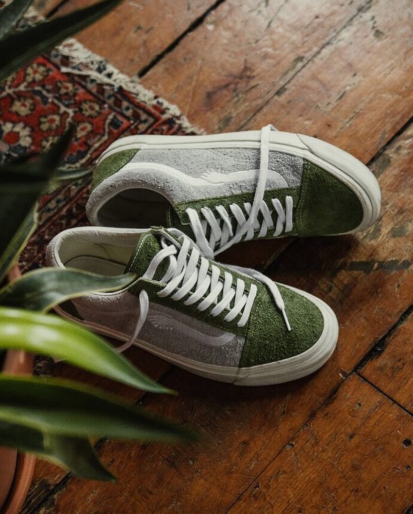 Notre, known for curating some of the higher end brands you may or may not have heard of, have gone with an OG Old Skool, covered in green and light gray hairy suede, with a unique hand-shaking jazz stripe. The color blocking is what stands out the most to me, on these, and they’re looking pretty clean!