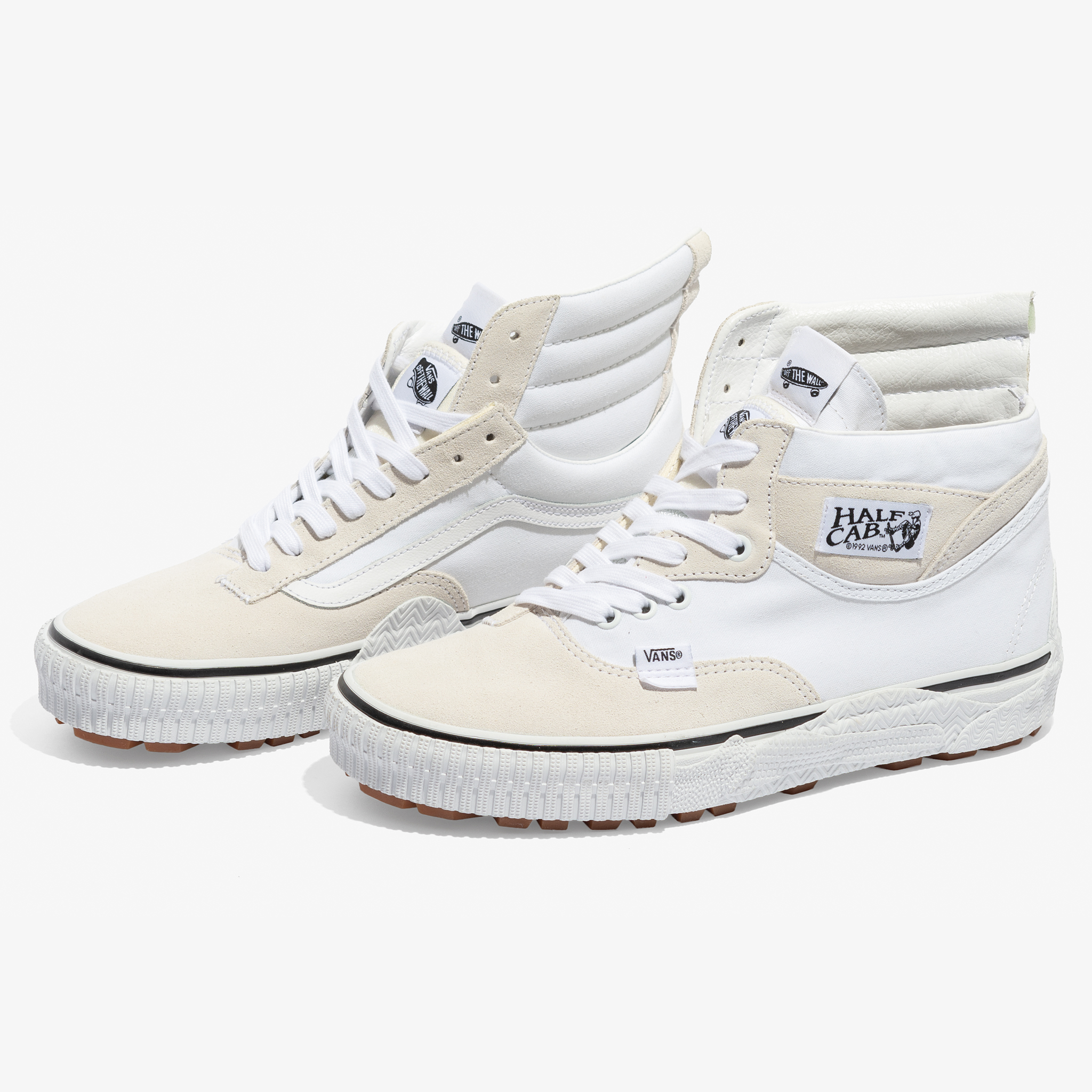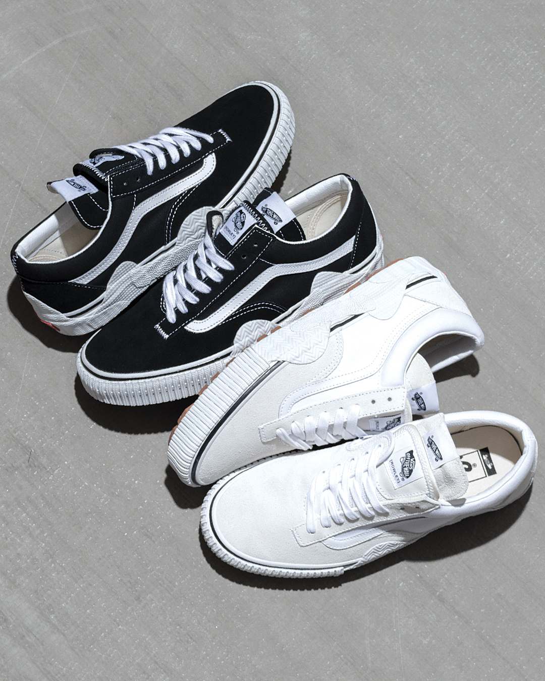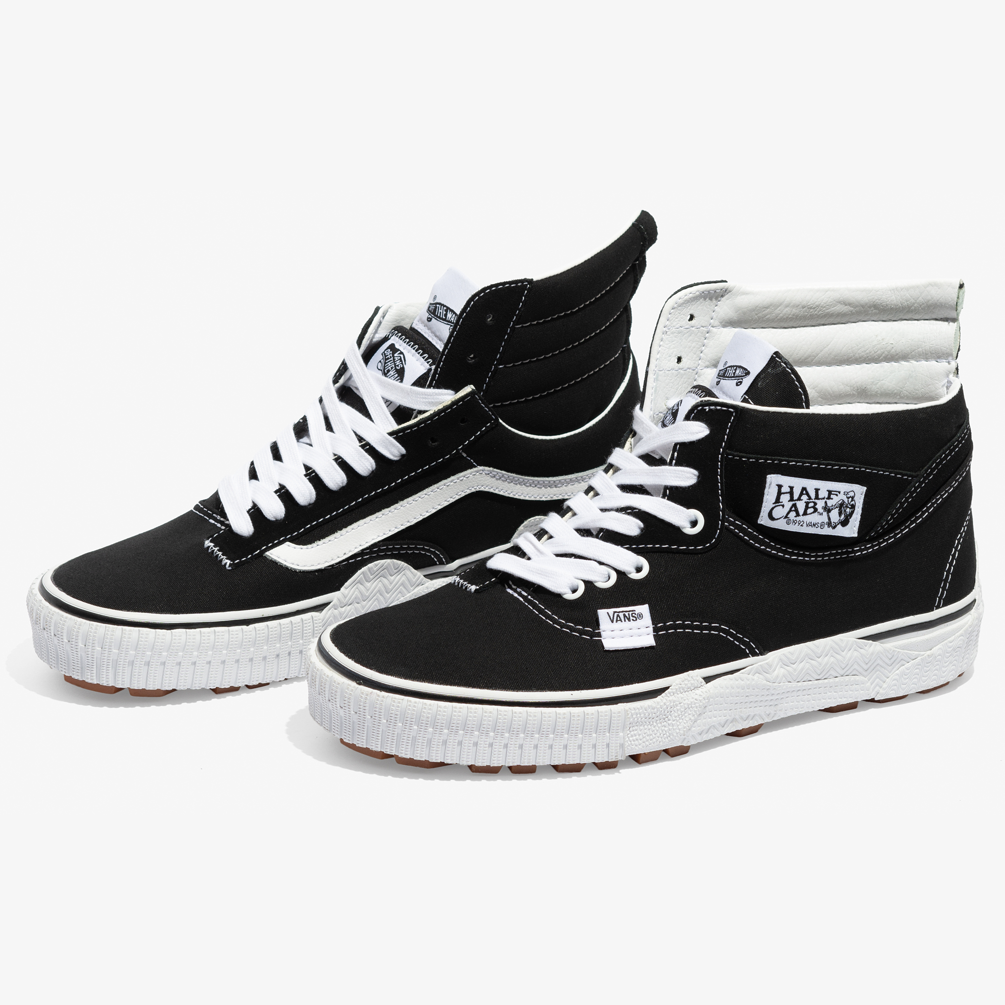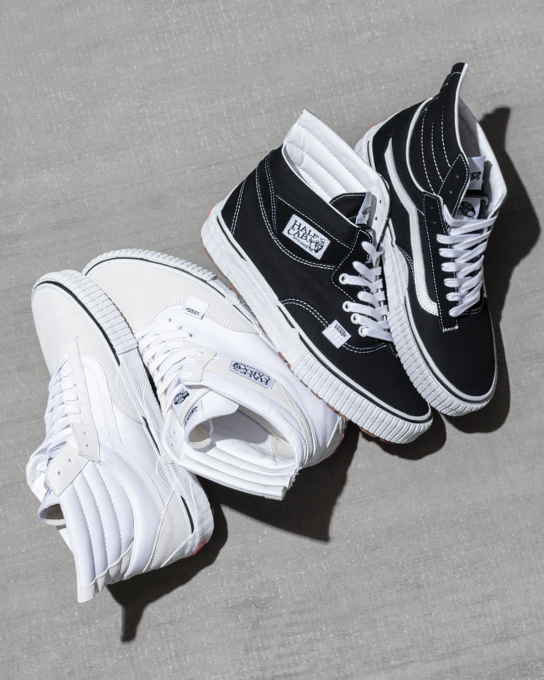 Thanks to our friends over at Bows & Arrows Berkeley, we get a good look at the latest whacky Vault release, by way of the Cap Mash pack. Available in a Hi and Lo model, each style features a mash up of everyone’s favorite Vans classics, in either Black or White. There’s some Authentic, Half Cab, Old Skool, SK8-Hi and Rowley in there and two overlapping tongues per shoe! The vulcanized taping is cut up with overlapping layers and wraps a lug gum rubber outsole. I imagine they didn’t make too many of these, however like the last Cap pack, if it does well, you can definitely expect to see more variations in the future.