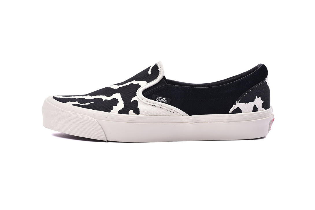 Here’s the latest from the Vault OG line. Two new canvas prints are coming our way, one is sort of a typical leopard print that we’ve seen on other Vans models throughout the year, but the cow print is sort of fresh and new! Cows get a white sole, and Leopards get a black sole. Available in an OG Authentic LX and an OG Classic Slip-On LX. Coming soon to a Vault dealer near you.