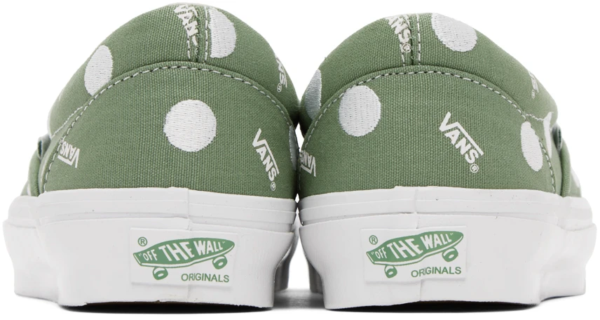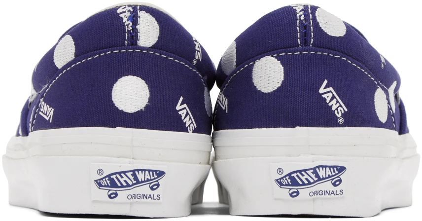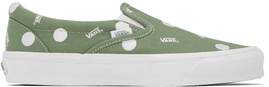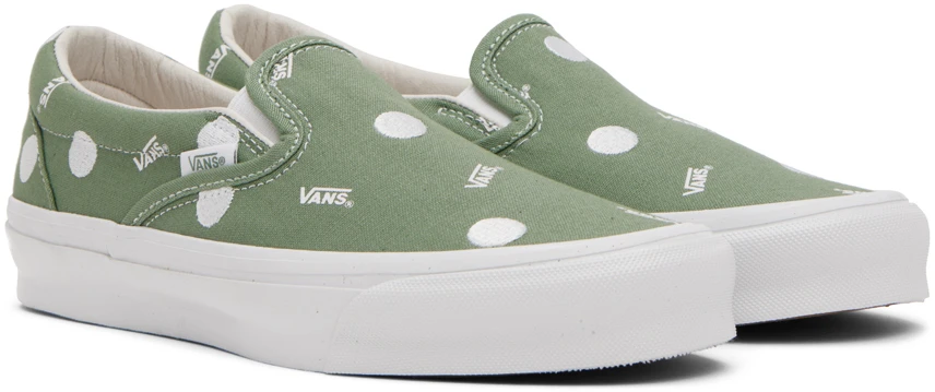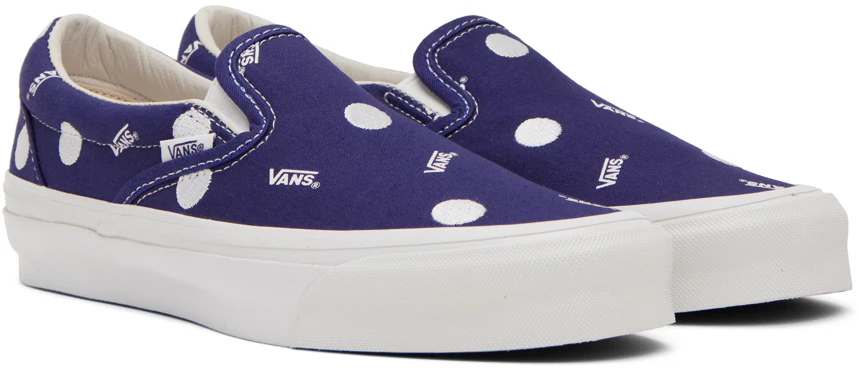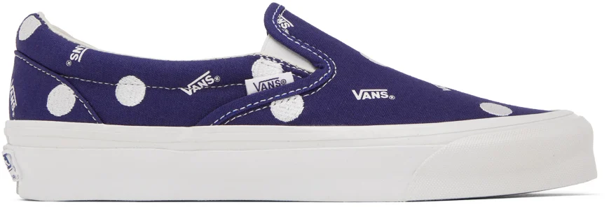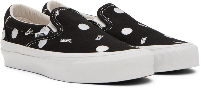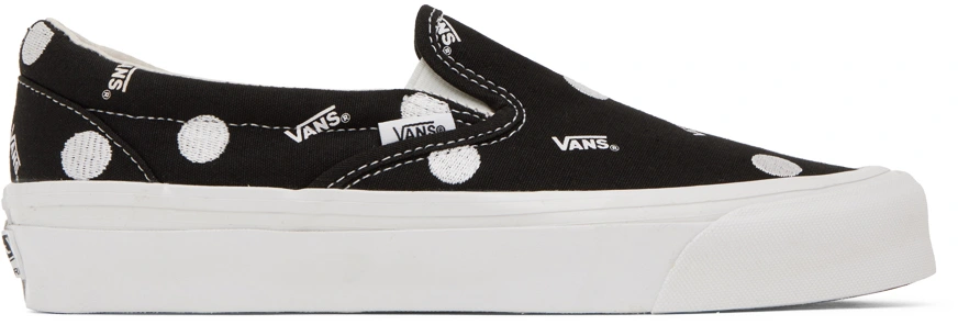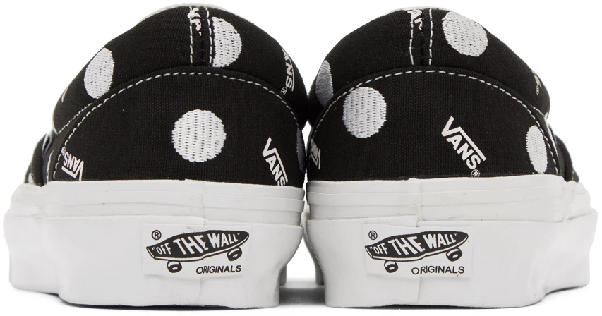 Here’s a nice and simple Slip-On from the Vault Originals line, featuring a classic and classy pattern. The 10oz. canvas features an all-over print of tiny Vans logos, with embroidered polka dots. That’s it! Nothing more. Nothing less. Just perfect, if you ask me.