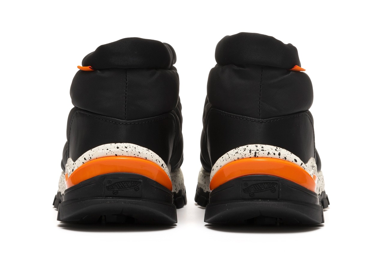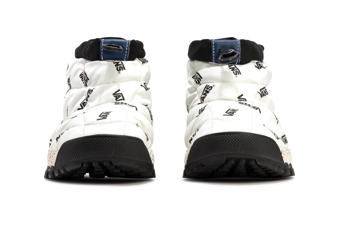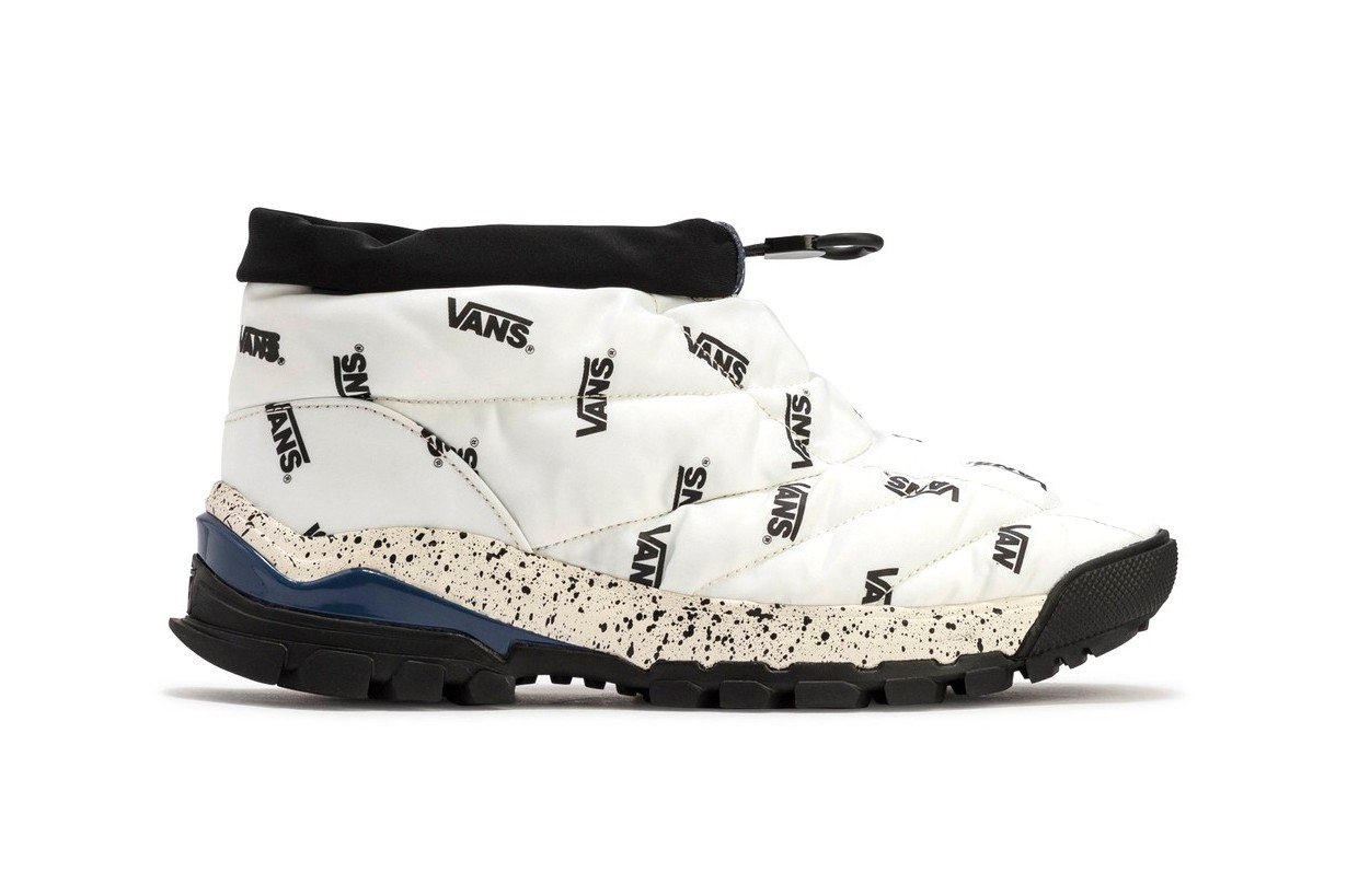 The Marshmallow iteration is kitted out with a logo-manic Vans print all over the nylon bootie upper, while technical details feature frequently around the shoe. For example, a black nylon cuff is adjustable via the toggle on the front of the Slip Hiker LX, allowing you to bring the cuff in to stop the elements from getting inside your shoes.