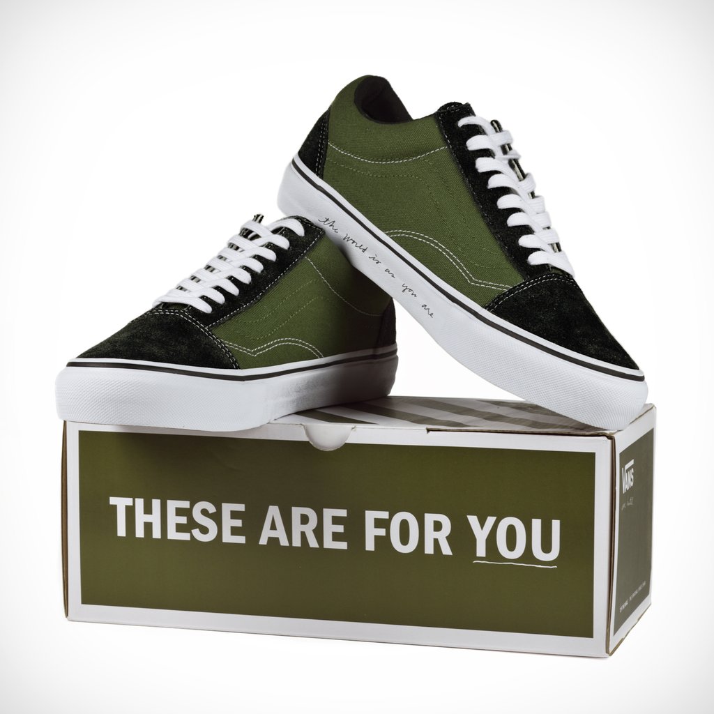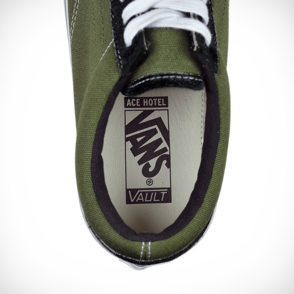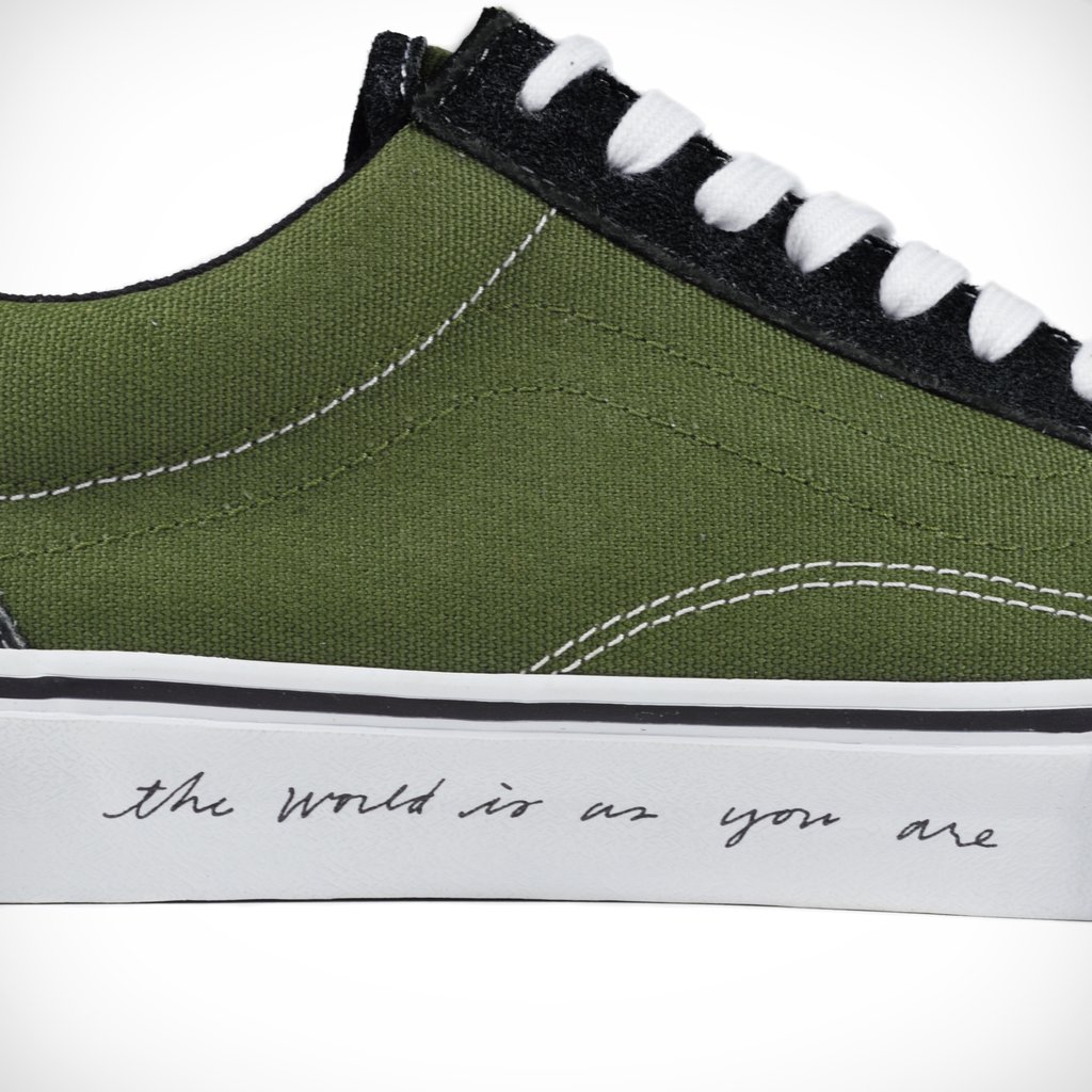 Vault by Vans has teamed up with Ace Hotel, to bring to you these exclusive Old Skools, featuring black hairy suede, olive drab canvas, with a deleted jazz stripe. The shoe also features a message on the sidewall that says “The world is as you are”. Clean, simple, and limited. There’s also a custom box designed specifically for this release, which always adds a nice finishing touch to a special project or collab. You can pre-order these now on Ace’s webshop for $95, and they ship Dec. 8th.