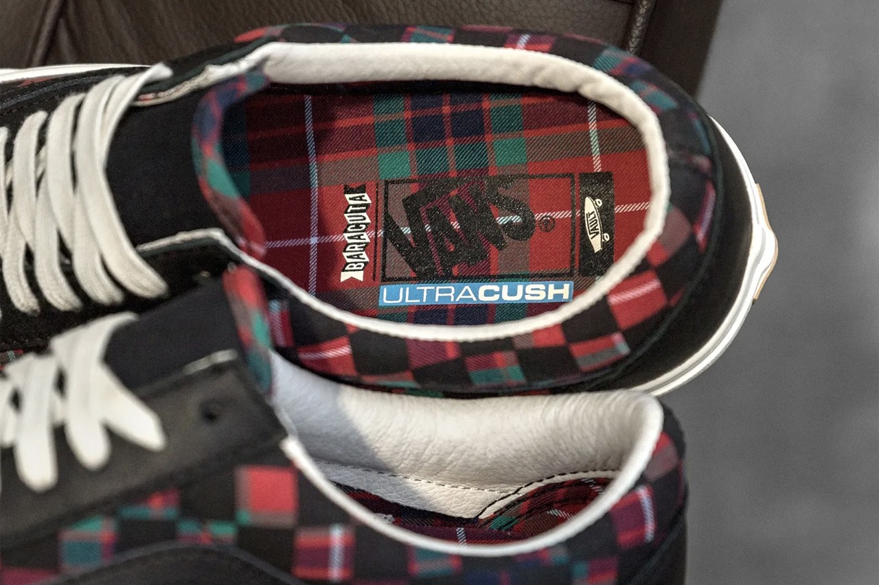 Taking on the Sk8-Hi Pocket LX-1 and Old Skool LX, Baracuta adds its traditional British sensibilities to the SoCal sneakers. The results are two skateboarding sneakers that find themselves entering a more sartorial world, equipped with “Dress Blues/Tartan Plaid/Marshmallow” and “Black/Tartan Plaid/Marshmallow” colorways respectively.