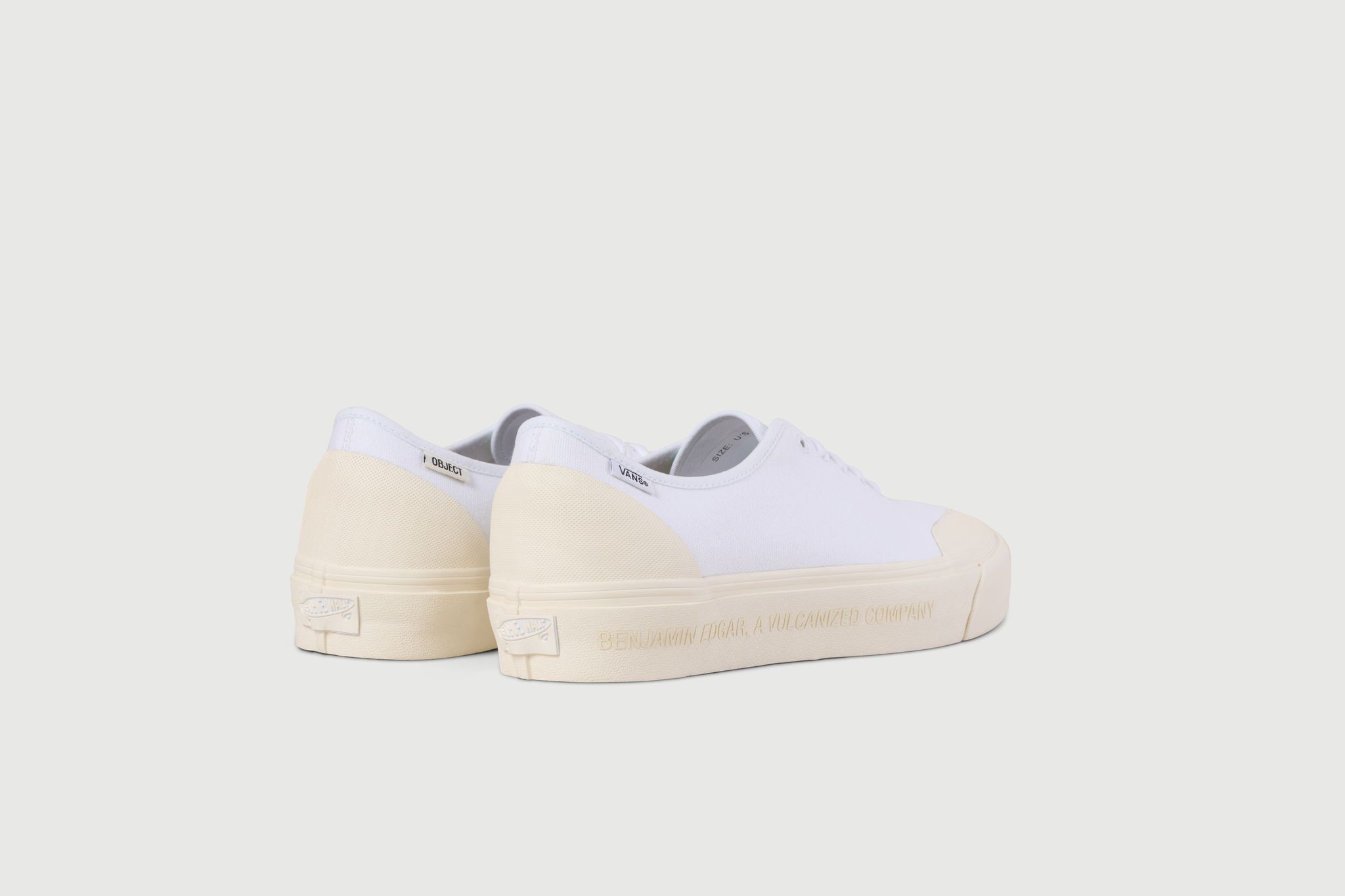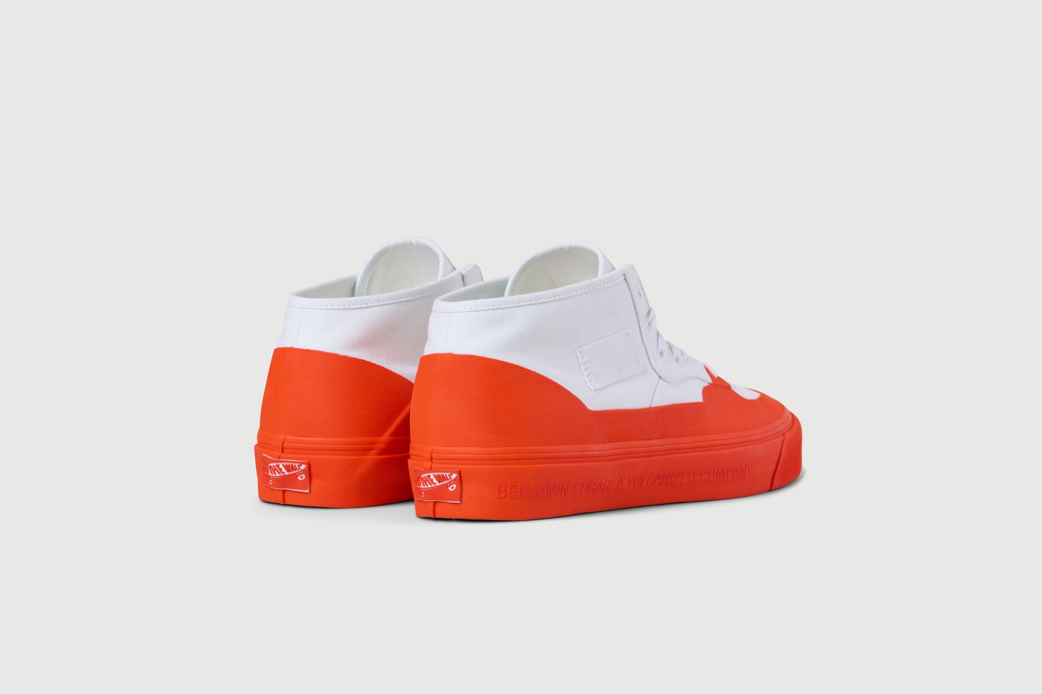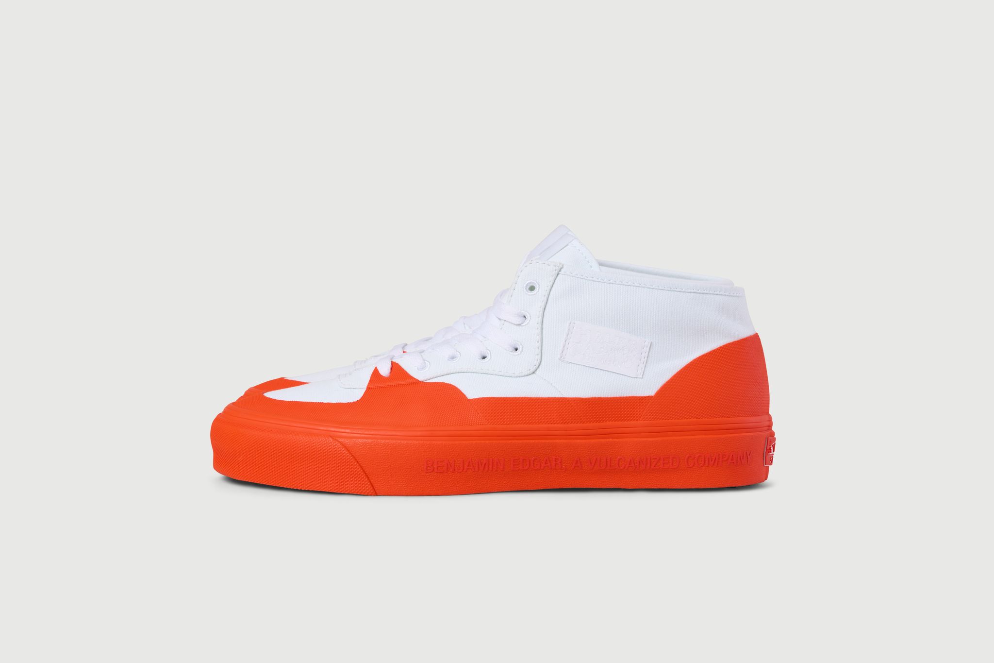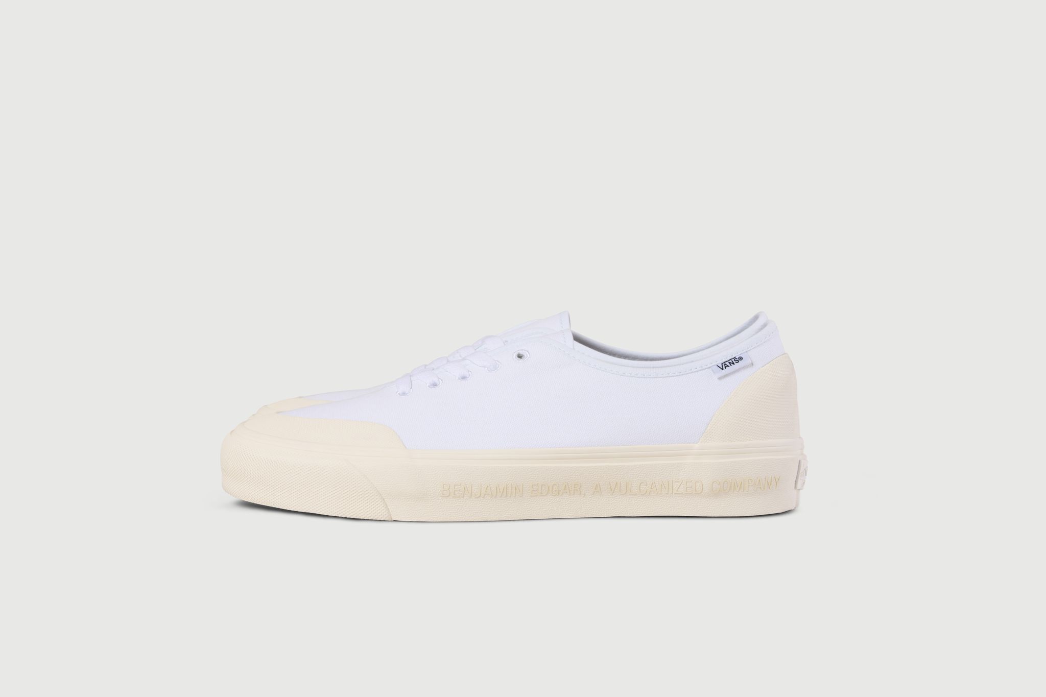 Beginning with the Half Cab, colorways of “White/Safety Orange” and “White/White” are offered, allowing for either a striking or subtle look. Its deconstructed composition removes the upper’s padding and replaces its lower panels with the aforementioned vulcanization. As for the Authentic, a “White/Bone” colorway sees the sneaker in a minimalistic yet conceptual look that utilizes a single piece upper. Similar to the Half Cab pairs, its heel panel and toe box feature the exaggerated “knurled rubber.” Co-branding elements throughout the range include “BENJAMIN EDGAR, A VULCANIZED COMPANY” text at the lateral’s midsole and an “OBJECT” tag at the medial.