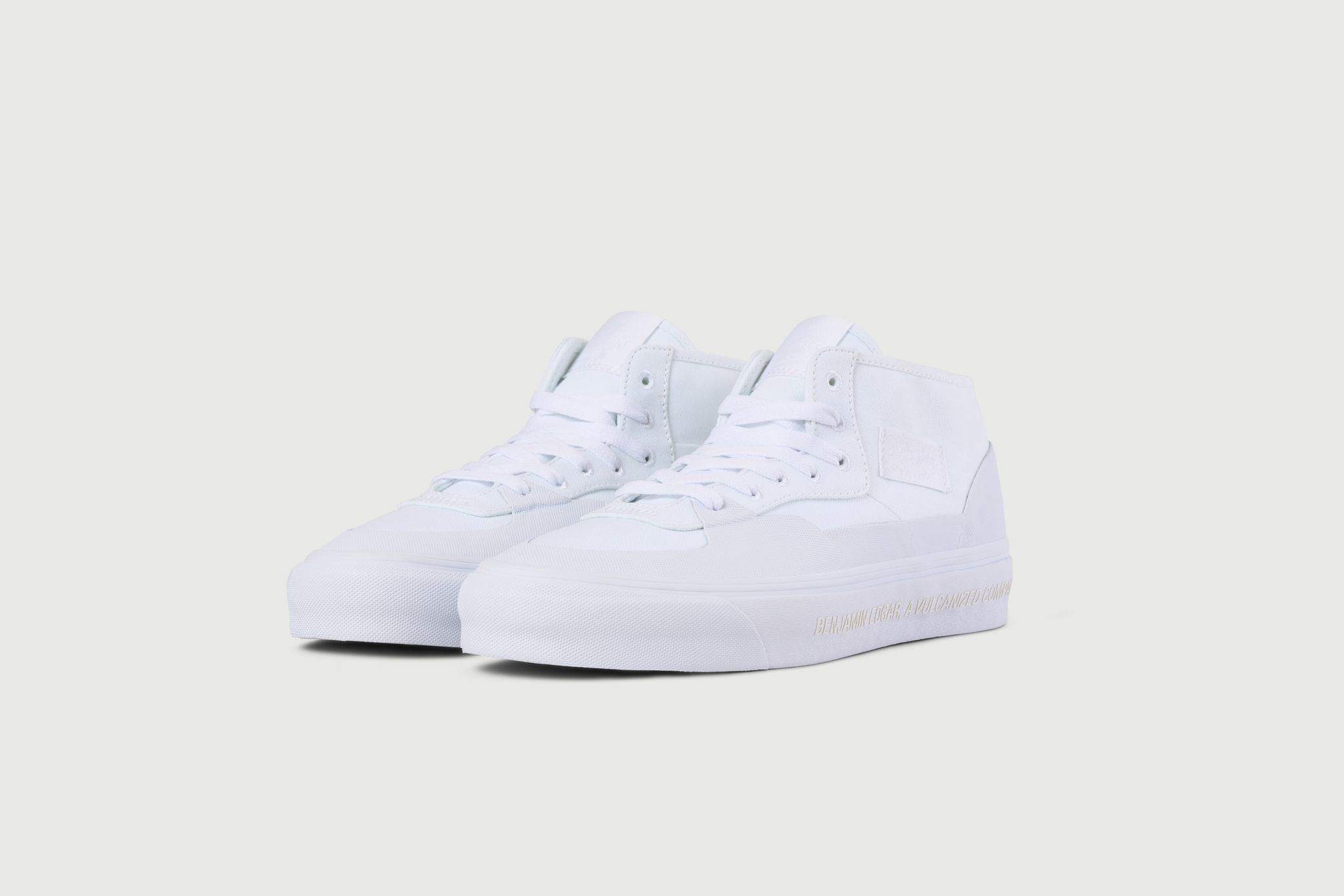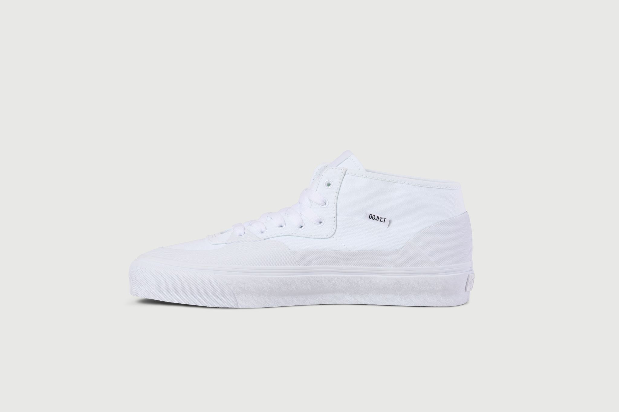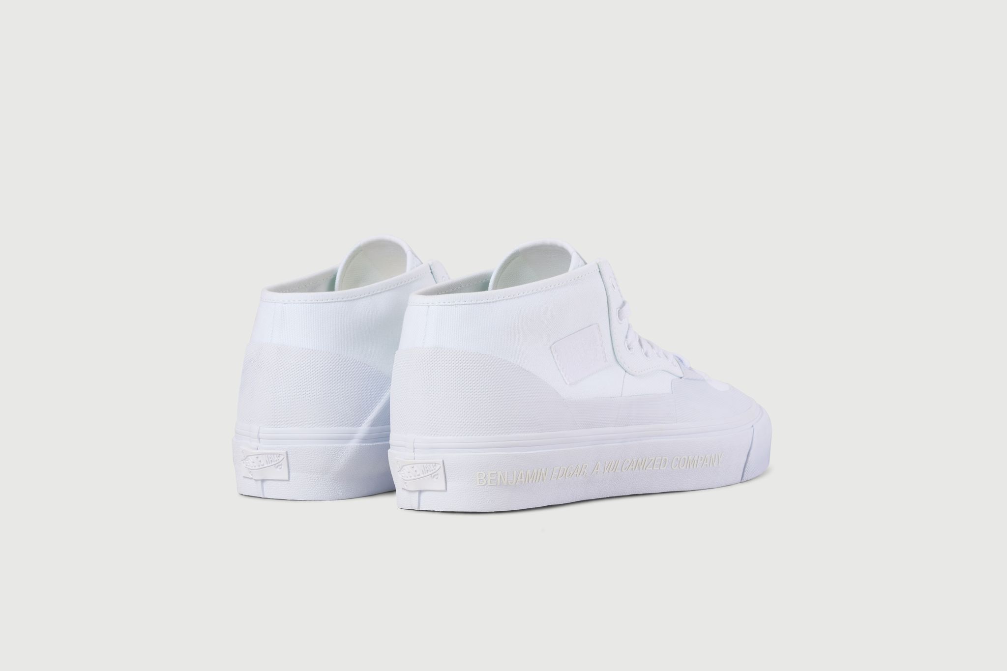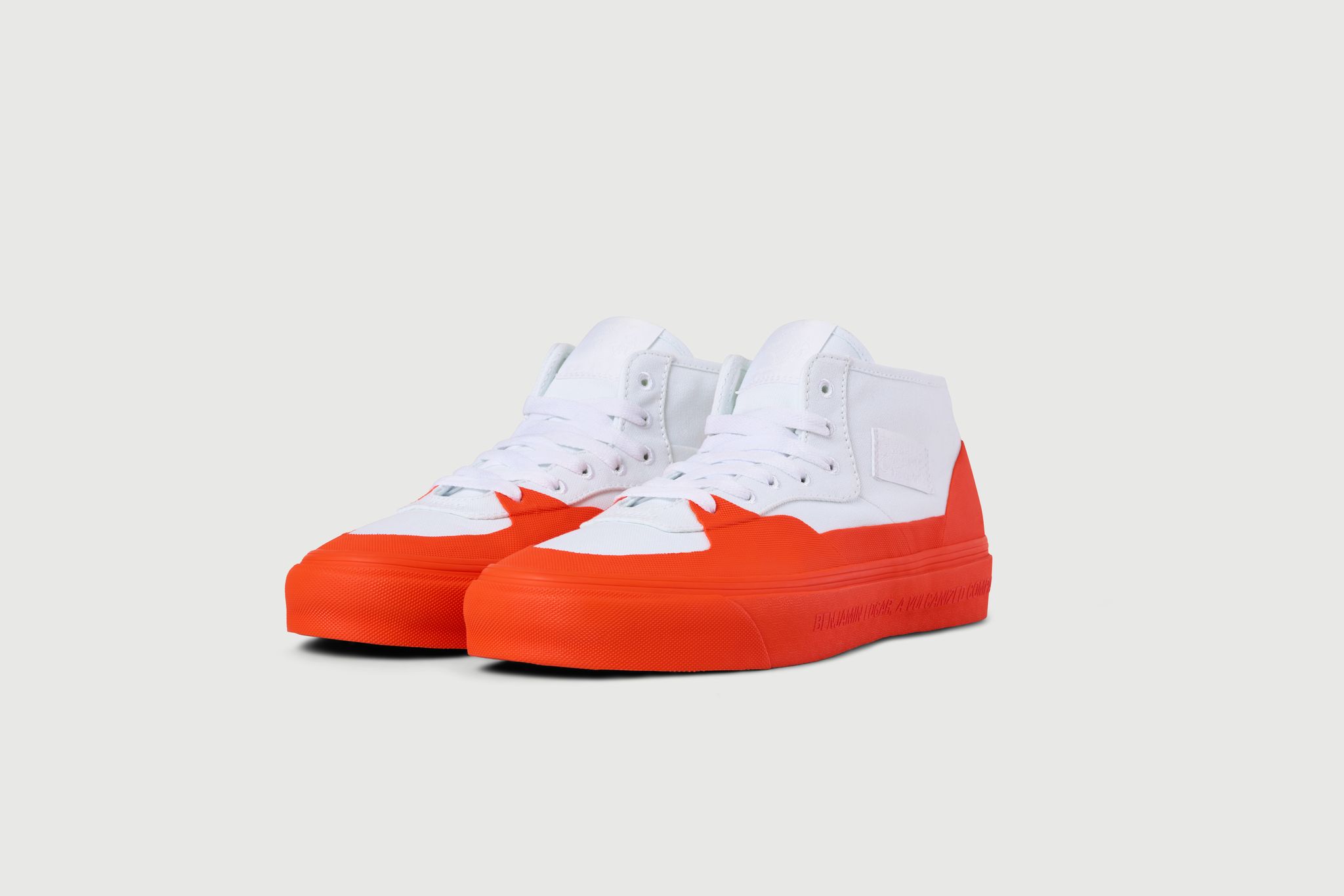 Beginning with the Half Cab, colorways of “White/Safety Orange” and “White/White” are offered, allowing for either a striking or subtle look. Its deconstructed composition removes the upper’s padding and replaces its lower panels with the aforementioned vulcanization. As for the Authentic, a “White/Bone” colorway sees the sneaker in a minimalistic yet conceptual look that utilizes a single piece upper. Similar to the Half Cab pairs, its heel panel and toe box feature the exaggerated “knurled rubber.” Co-branding elements throughout the range include “BENJAMIN EDGAR, A VULCANIZED COMPANY” text at the lateral’s midsole and an “OBJECT” tag at the medial.