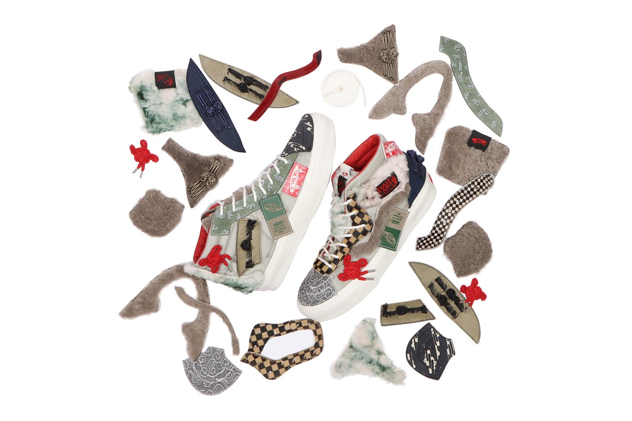 As for the DIY HI VLT LX, a “DESIGN IT YOURSELF” approach is utilized with various Velcro-backed attachments included to decorate it. Combining elements of the Vans Sk8-Hi and Half Cab, the resulting silhouette serves as a fitting canvas for the pair’s many thematic overlays and trinkets.”