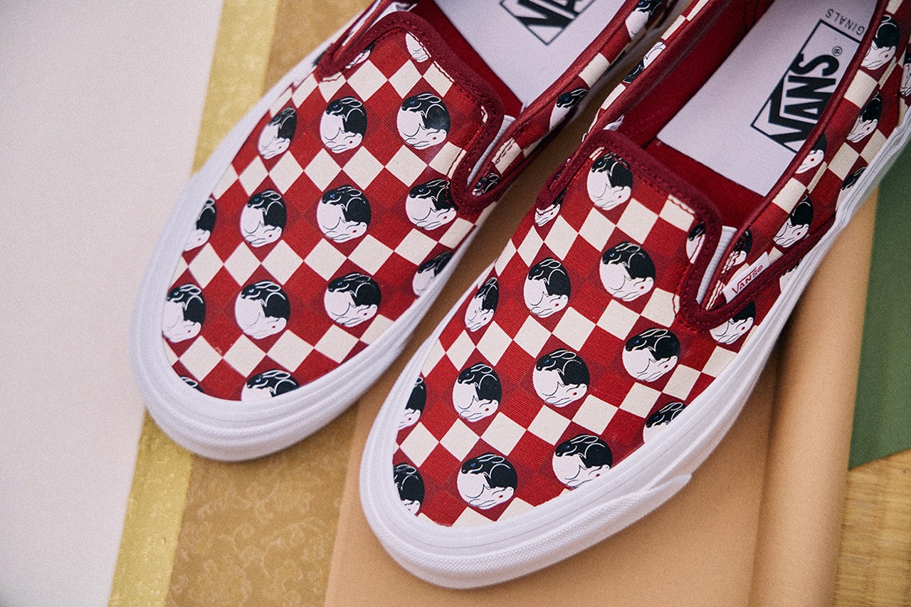 First, three Vans Slip-Ons arrive in red, green and black colorways that feature their primary color alongside an off-white in Vans’ classic checkered pattern. Amongst the geometry, a yin and yang symbol created by white and black rabbits lands across the upper. Each pair’s sockliner and lining features a red that is fitting for Chinese New Year while the rubber sole unit favors an all-white look with a red Vans logo at the heel.