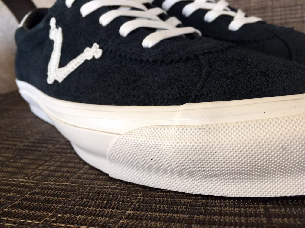 The shoe features hairy suede throughout, except for the marshmallow premium leather accents by way of the bones and the heel mustache. These feature marshmallow colored vulc soles, in the new Vault Originals shape, complete with glossy foxing tape, shrunken waffle grip, and that sexy, curvy sidewall! There’s minimal Blends branding on the heelpad, and the shoe comes with two pairs of laces, one being waxed marshmallow, and the other black standard. The Blends all-black drawer box and dustbag are also back for this release. We’ve taken a grip of photos, including a few in the alternate lace option. I could seriously go with either and be completely satisfied.