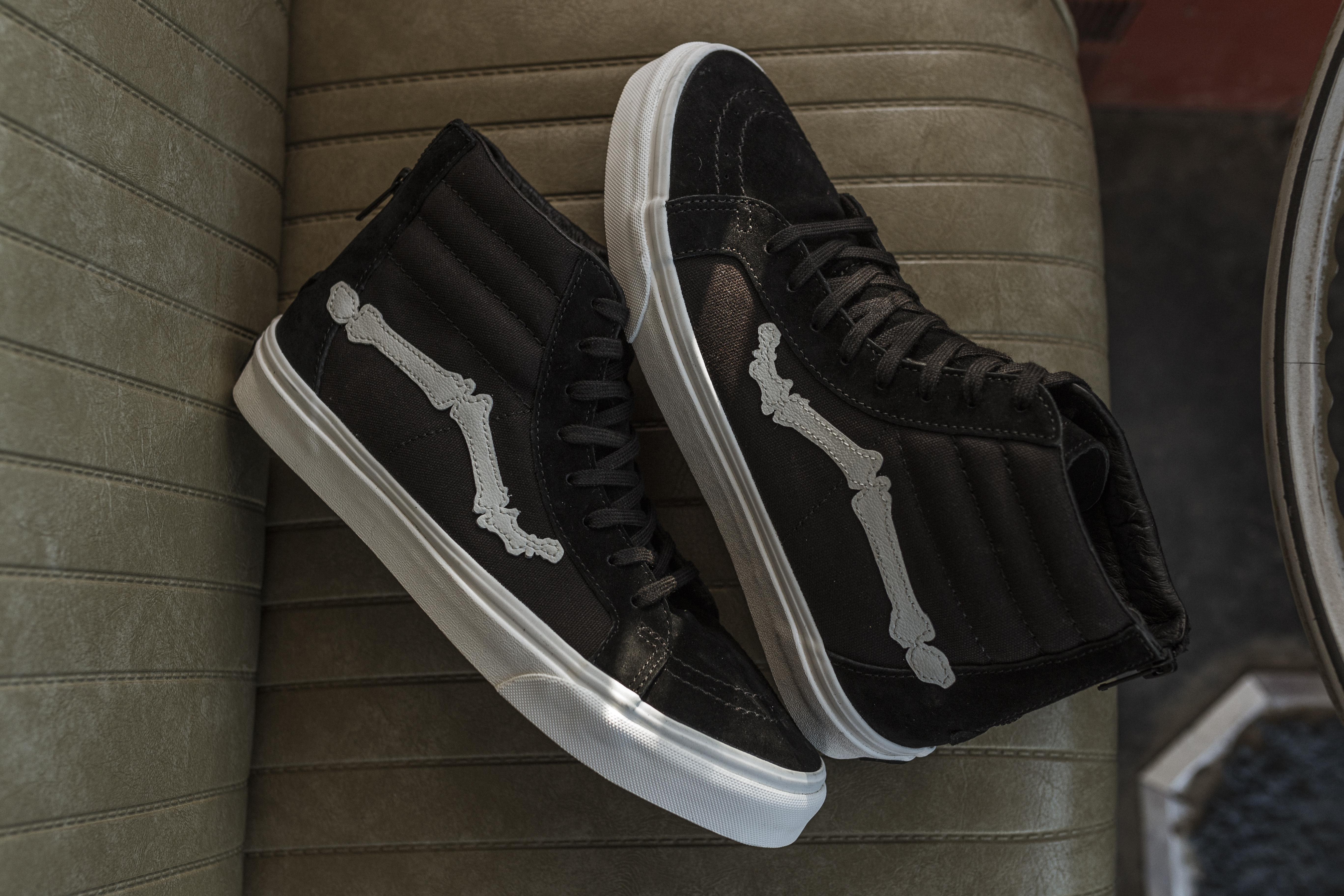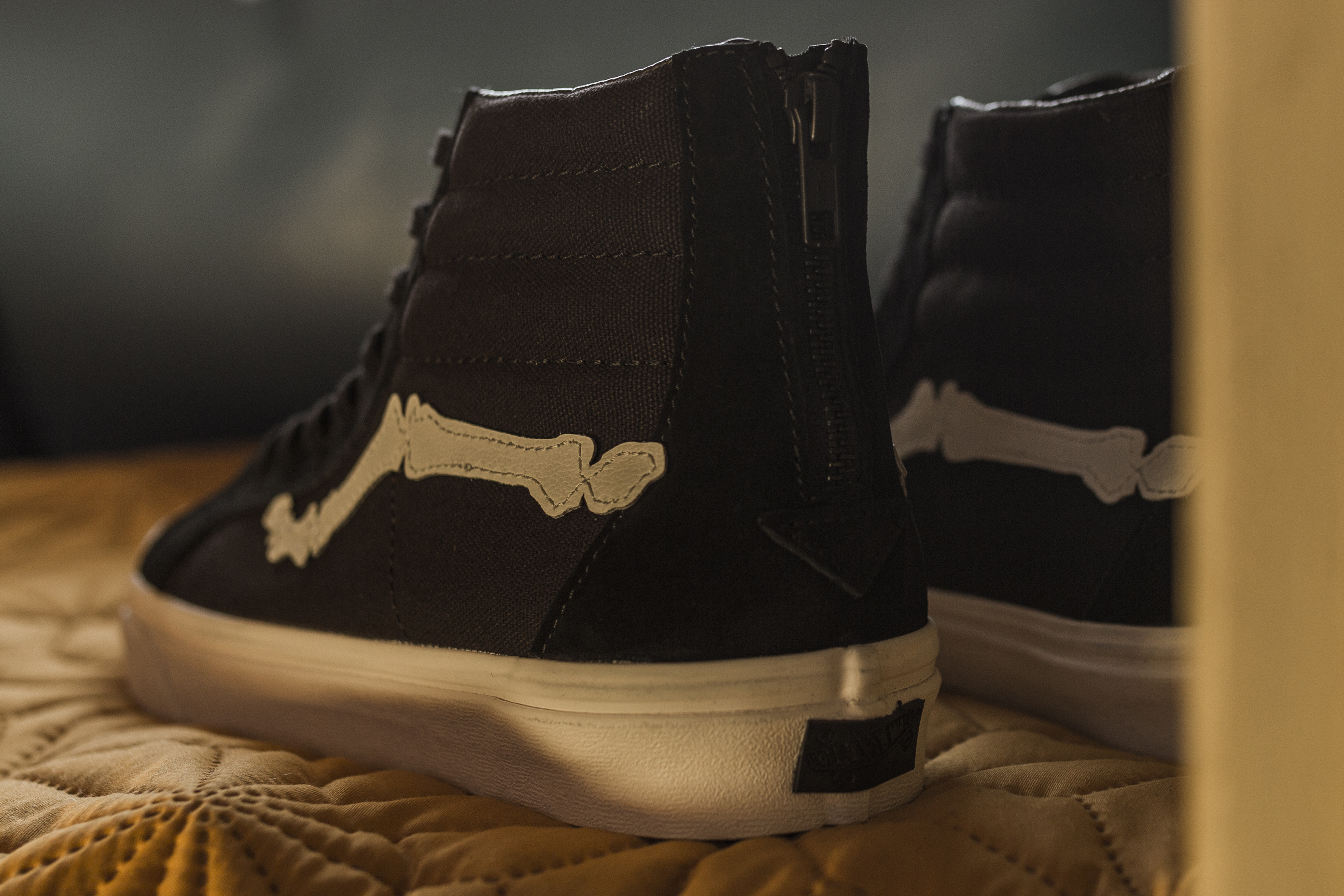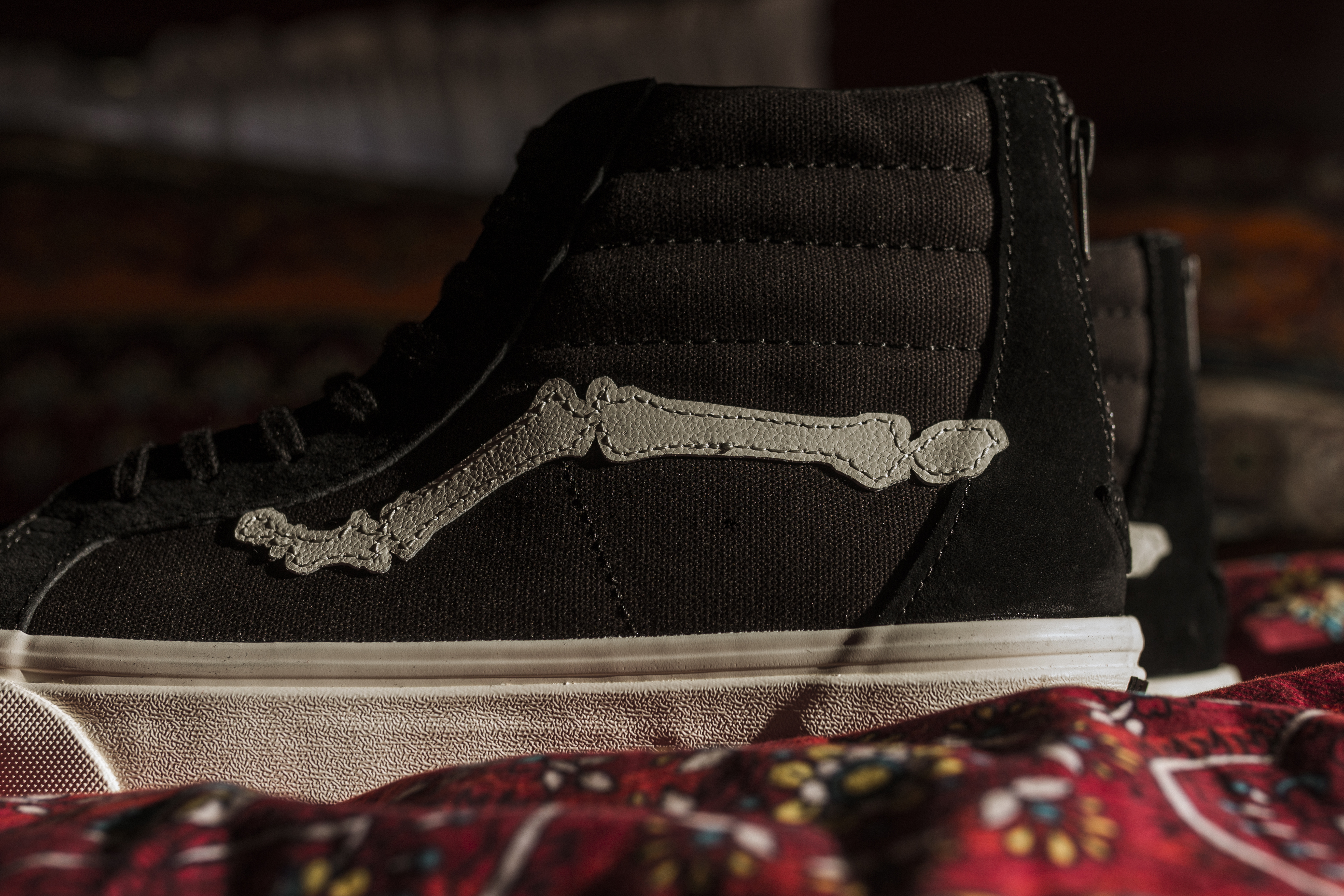 After having a wildly successful run with one of the most instantly recognizable Vans collaborations, sources tell me that this may be the last Blends “Bones” shoe for awhile. No other Vans shoe series, as far as we’ve seen over the past decade, has consistently been as successful as the #blendsvans collabs, and more specifically their “Bones” Jazz Stripe releases. I still remember the day that I received the first Blends “Bones” Sk8-Hi Reissue Zip LX aka “OG Bones” box, not having seen one photo yet, wondering what could be inside this all black box, with a dope motorcycle and wolf logo on the outside of it. I remember sliding open the Vault premium drawer box, and seeing the dustbag, still in anticipation of what’s in the box. When I pulled out the Sk8-Hi Zip, I was already in awe of the premium motorcycle leather that wrapped the entire shoe, and when I saw, what is now the iconic bone jazz stripe, I was speechless. Who dared to modify our beloved brand’s most recognizable feature?! But more importantly, who talked Vans into doing it?! Needless to say, I knew it was an instant classic, and this was back when the Vans hype wasn’t anywhere near today’s level. I’m glad I was able to create some of my best memories with this Vans collecting obsession, through the Blends releases over the years. The many overnight campouts for their releases, and the annual trips to Born-Free with the #blendsboiz, infiltrating their cool guy hardcore biker show, completely out of place, but on a mission to be the first to cop the event-exclusive shoes. I can go on and on, but I’ll save it for a possible future podcast, if we ever get around to getting one going. What do you think? Should we do one? Anyways, listen up to what Blends has to say about their latest release: