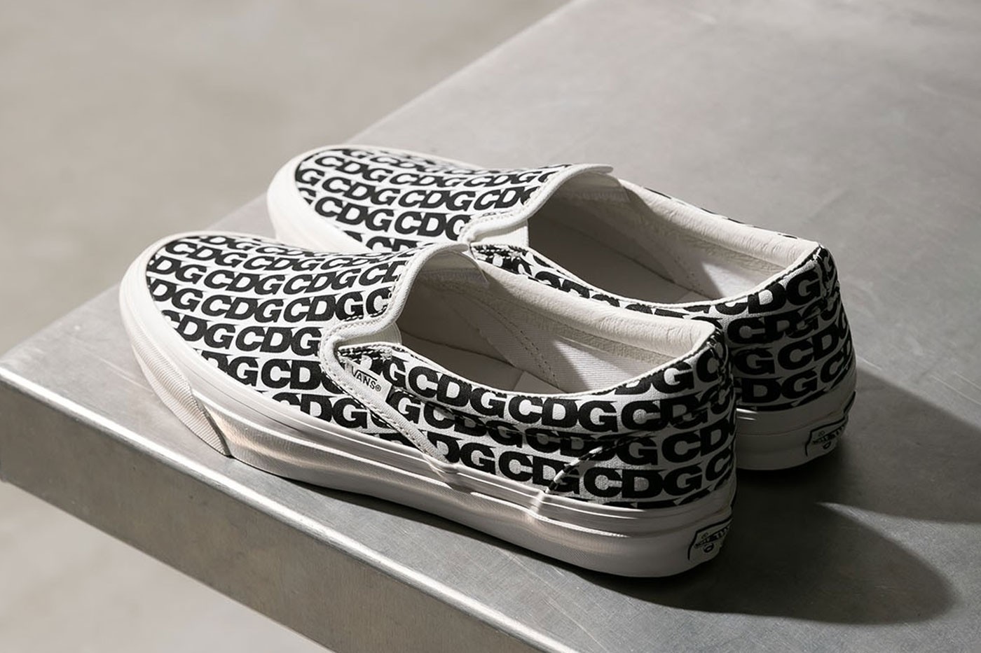 “Following a second Old Skool release earlier this year, COMME des GARÇONS‘ sublabel CDG reconnects with Vans once again for a special take on its Classic Slip-On silhouette. Continuing the partnership that has produced popular takes on the Authentic, Lampin, and Old Skool LX footwear silhouettes, the upcoming Slip-Ons feature all-over CDG monogram prints across canvas uppers.