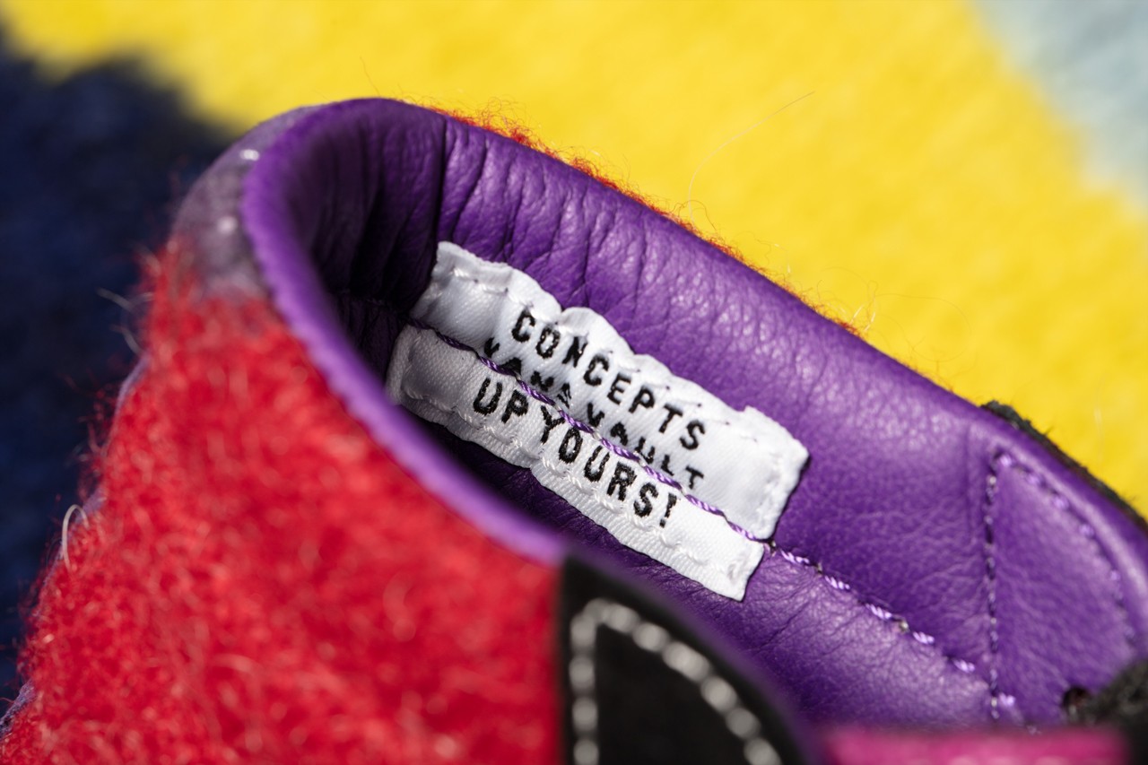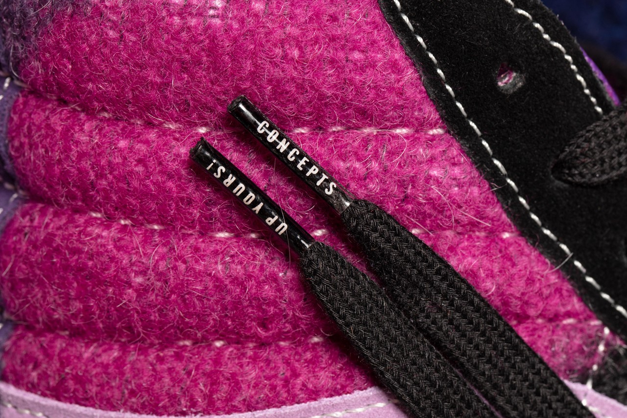 “Concepts and Vault by Vans have joined forces for a punk-inspired “World’s End” collection. Made up of a Sk8-Hi and a Slip-On with wild prints and fuzzy textures that draw from Vivienne Westwood‘s legendary mohair sweaters — and a name inspired by a boutique Westwood ran with her long-time partner, Sex Pistols manager Malcolm McClaren — the shoes are a colorful homage to London’s irreverent fashion and music scenes.