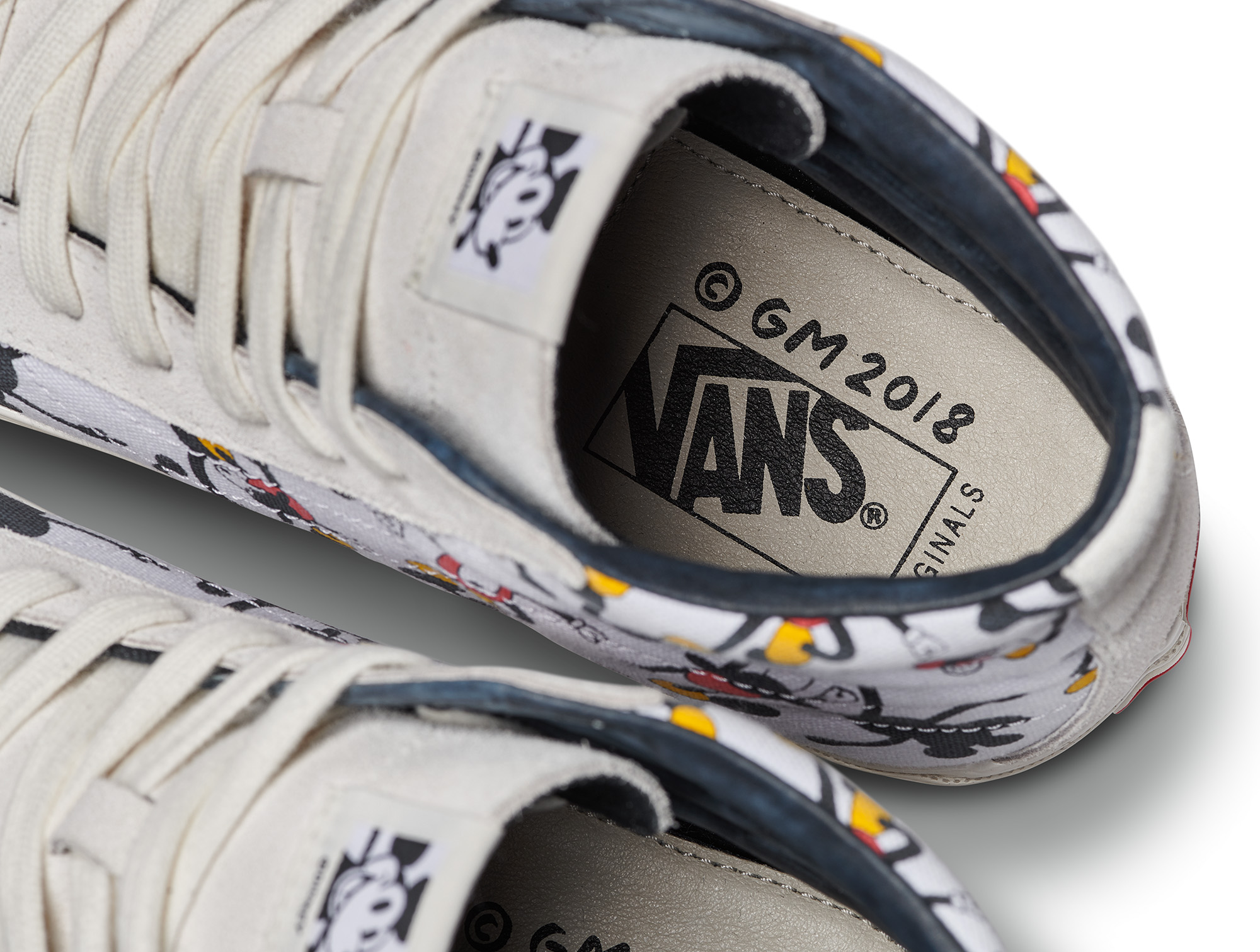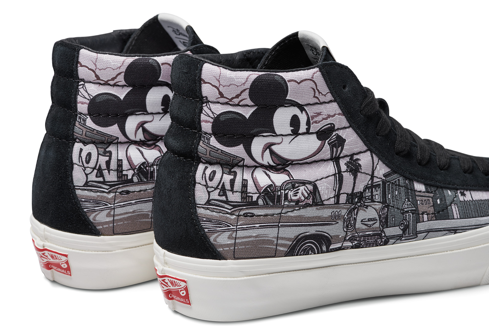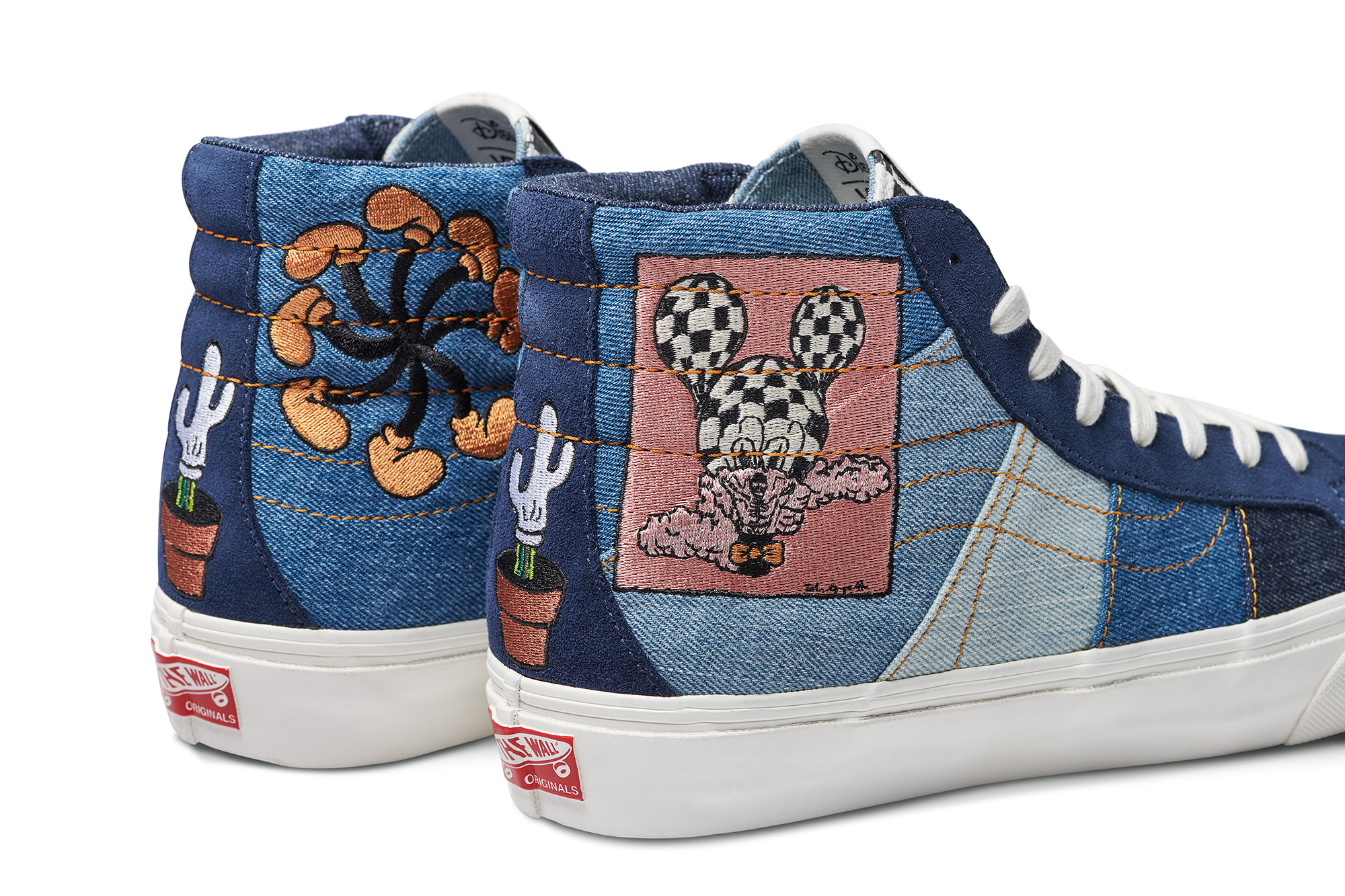 In a unique, well-rounded collection, each of the artist’s custom Mickey Mouse rendition is featured on Vans’ iconic silhouette, the OG Sk8-Hi LX, as well as a short-sleeved tee to present a well-rounded offering.